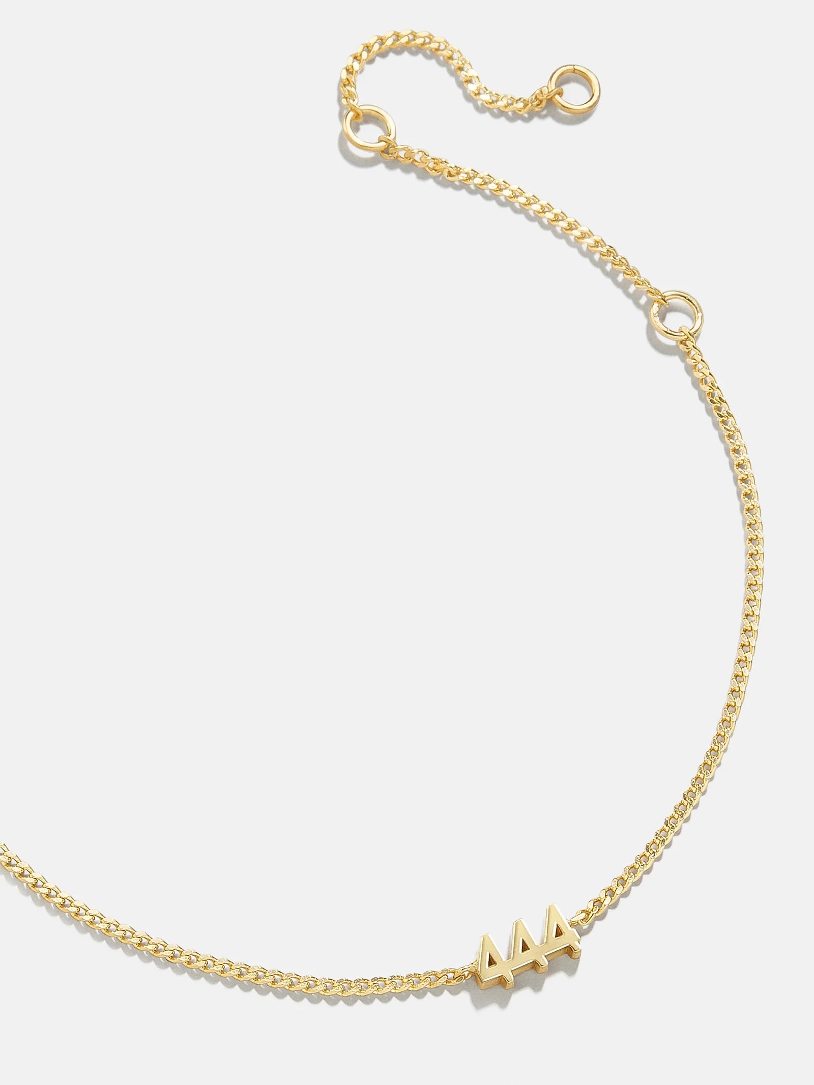 Keep finding the same sequence of numbers popping up in your life? It could be an angel number, sending you a subliminal yet meaningful message from the universe. Pay an ode to these special symbols with our delicate 18K Gold Custom Angel Number Bracelet. Choose the repeating number 0-9 that you keep seeing, and it'll be crafted in a row of three. See our key for the meaning and message behind each angel number. This bracelet is crafted with 18K gold plated sterling silver so you can hold onto this meaningful message for years to come.