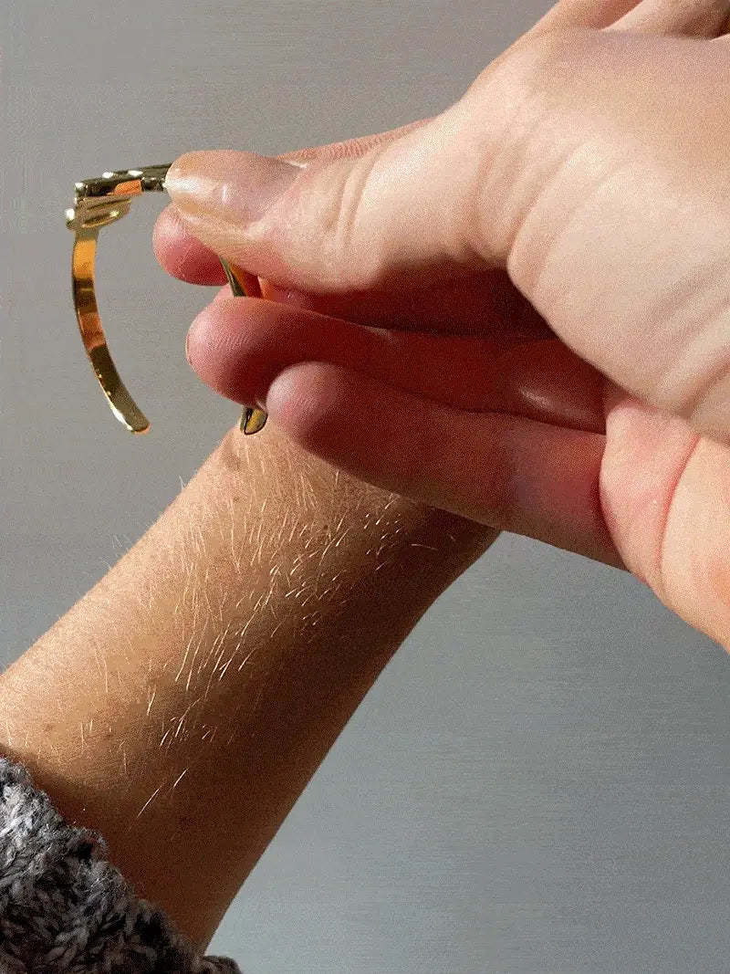 This classic cuff gets a modern update in our script font. Type out any personalization you please and your customization will appear in a pretty script font. The nameplate sits on an adjustable gold cuff. Please note: your customization will appear in all lowercase letters.