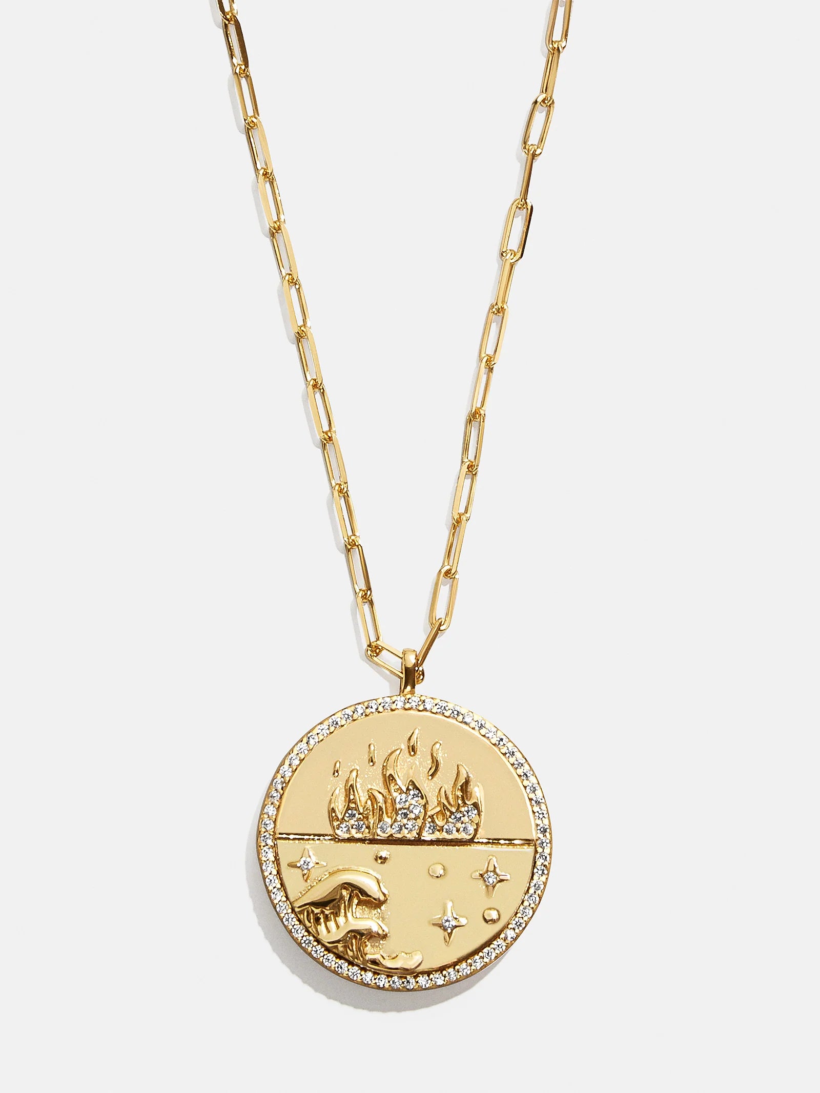 Switch up your necklace in seconds with the 18K Gold Fire Reversible Pendant Necklace. As multi-dimensional as you, this necklace features a double-sided pendant to complement different days and different outfits. One side features a colorful, fiery scene. The other features flames in gold and cubic zirconia detailing. Even better? This piece is crafted with 18K Gold, meaning it'll last you a lifetime.