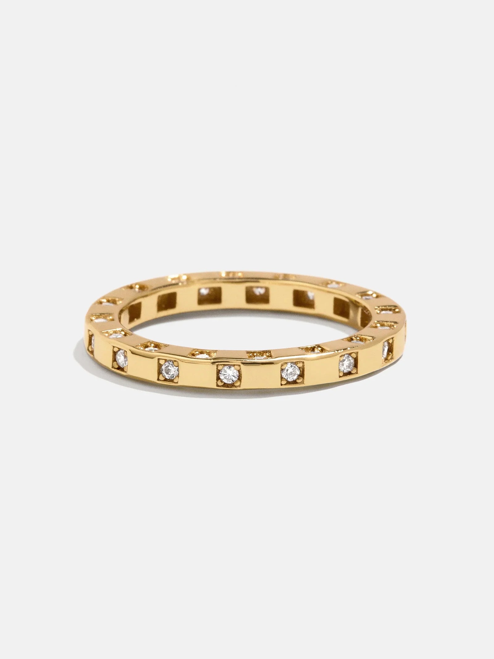 Bring playful shapes to your ring stack with the Mabel 18K Gold Ring. This gold band features square cubic zirconia stones, creating a stripe-like appearance throughout. Wear this ring solo or stack it for a look that stands out. It’s crafted out of 18K Gold, so it’s made to last.