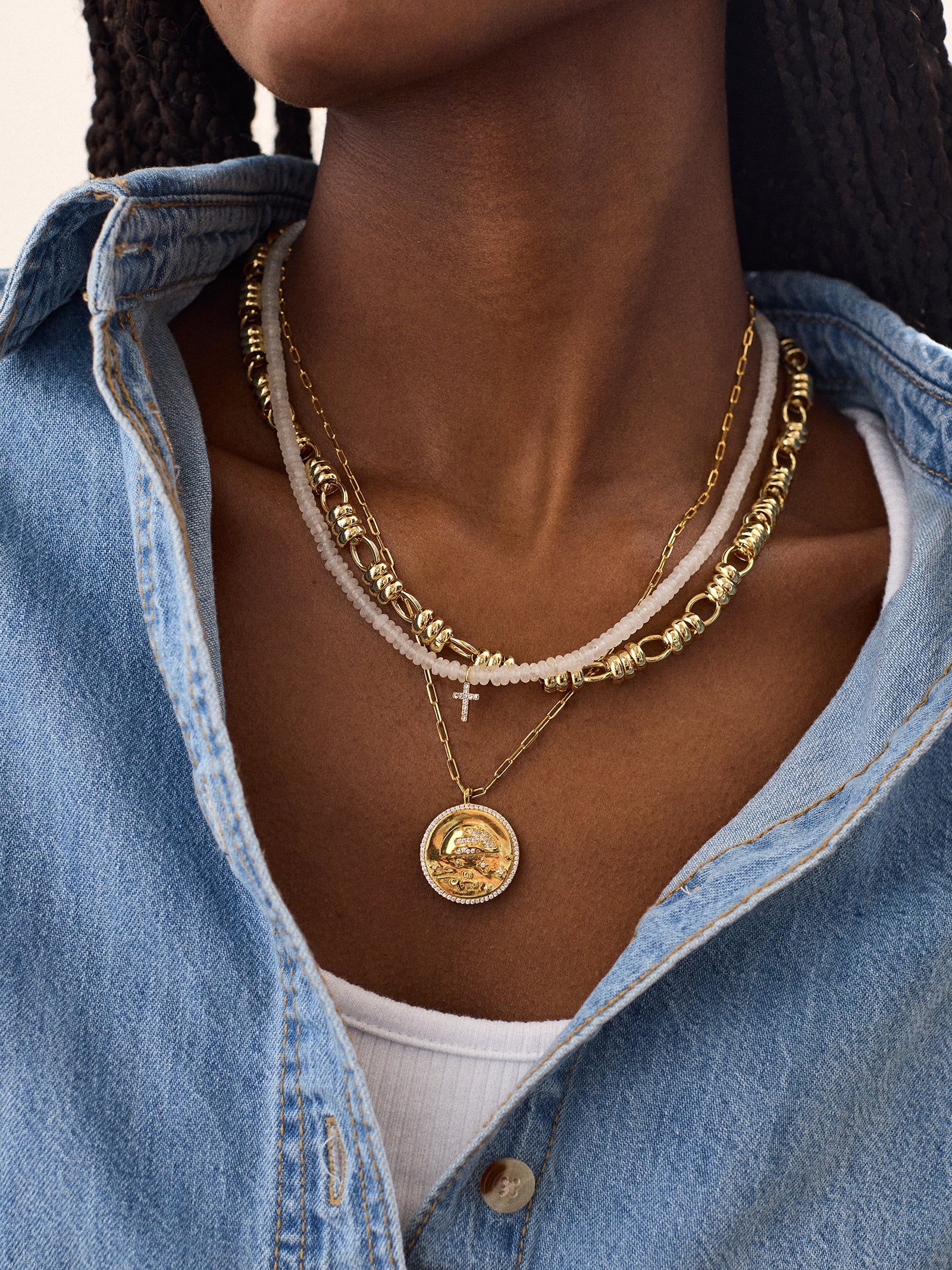 Switch up your necklace in seconds with the 18K Gold Ocean Reversible Pendant Necklace. As multi-dimensional as you, this necklace features a double-sided pendant to complement different days and different outfits. One side features a colorful, oceanic scene. The other features waves in gold and cubic zirconia detailing. Even better? This piece is crafted with 18K Gold, meaning it'll last you a lifetime.