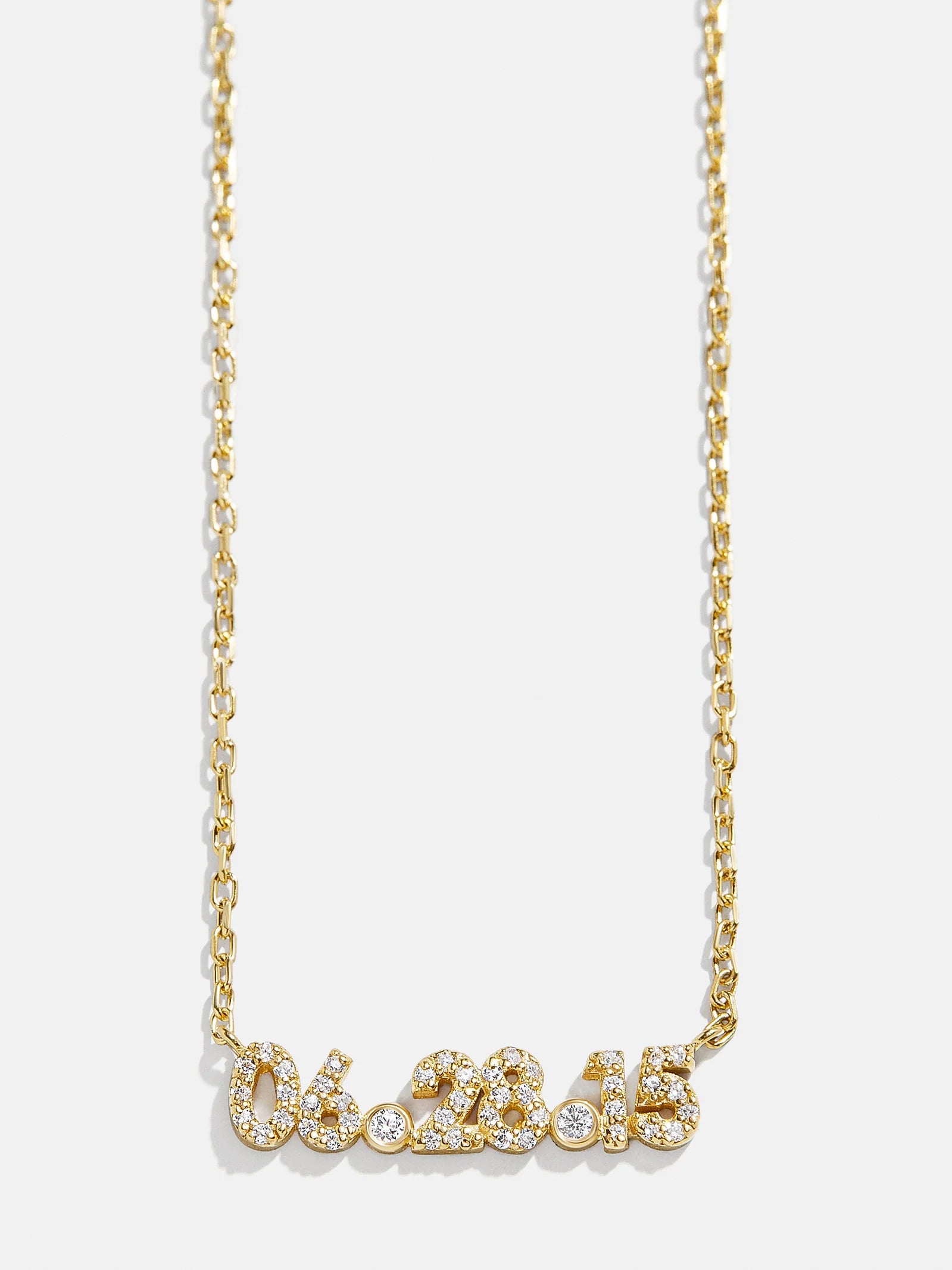 Commemorate meaningful numbers with our 18K Gold Pavé Custom Number Necklace. Crafted with 18K Gold and Cubic Zirconia stones, this necklace features one horizontal row of of pavé double-digit numbers, with each number being separated by a single Cubic Zirconia stone. Personalize with a special date or even the last two digits of three years that are significant.