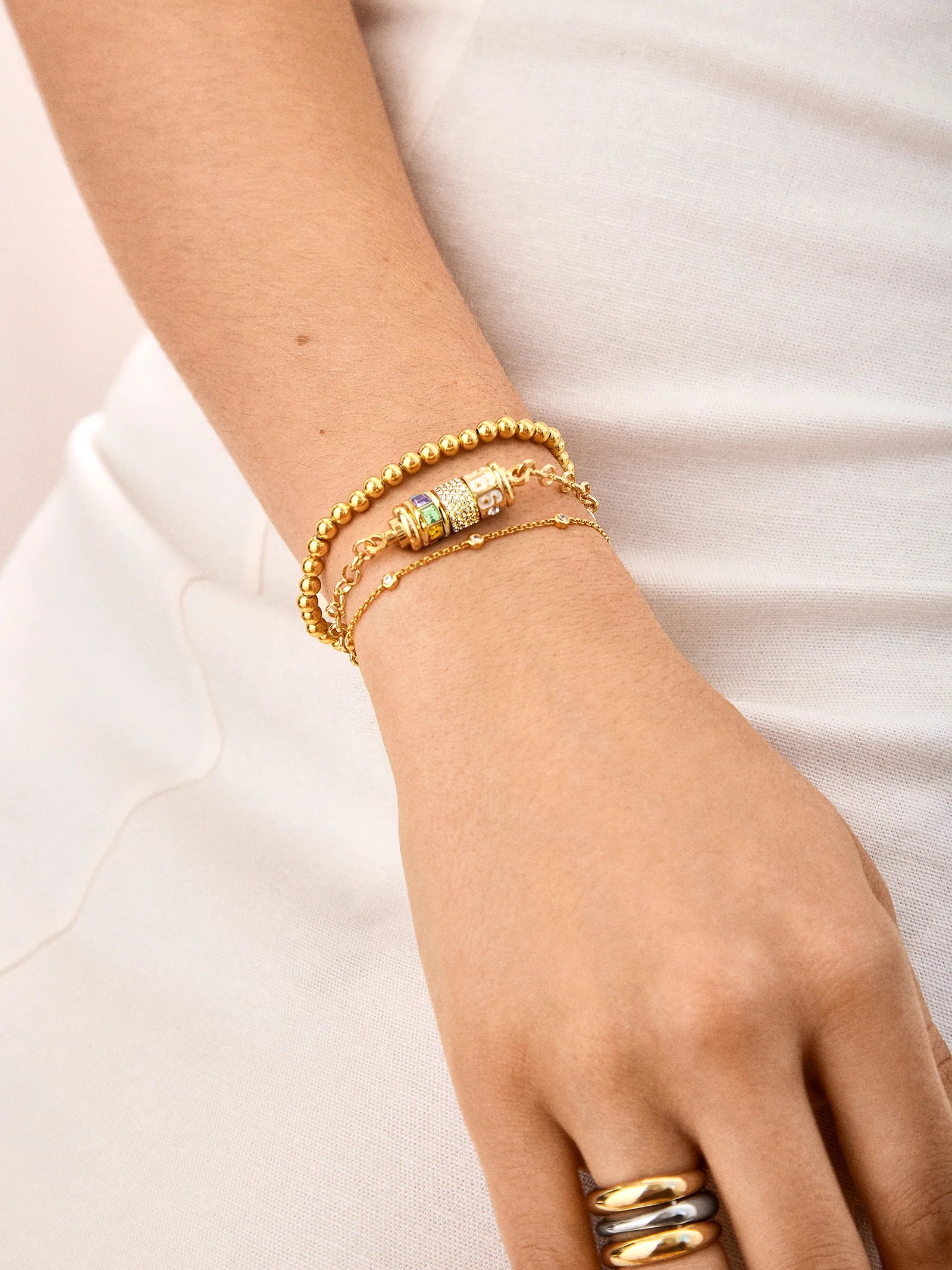 It's a whole new spin on the charm bracelet. Three charm beads of your choice can be threaded onto a gold bar pendant for a personalized pendant that was made just for you. Add something revolutionary to your everyday layers.