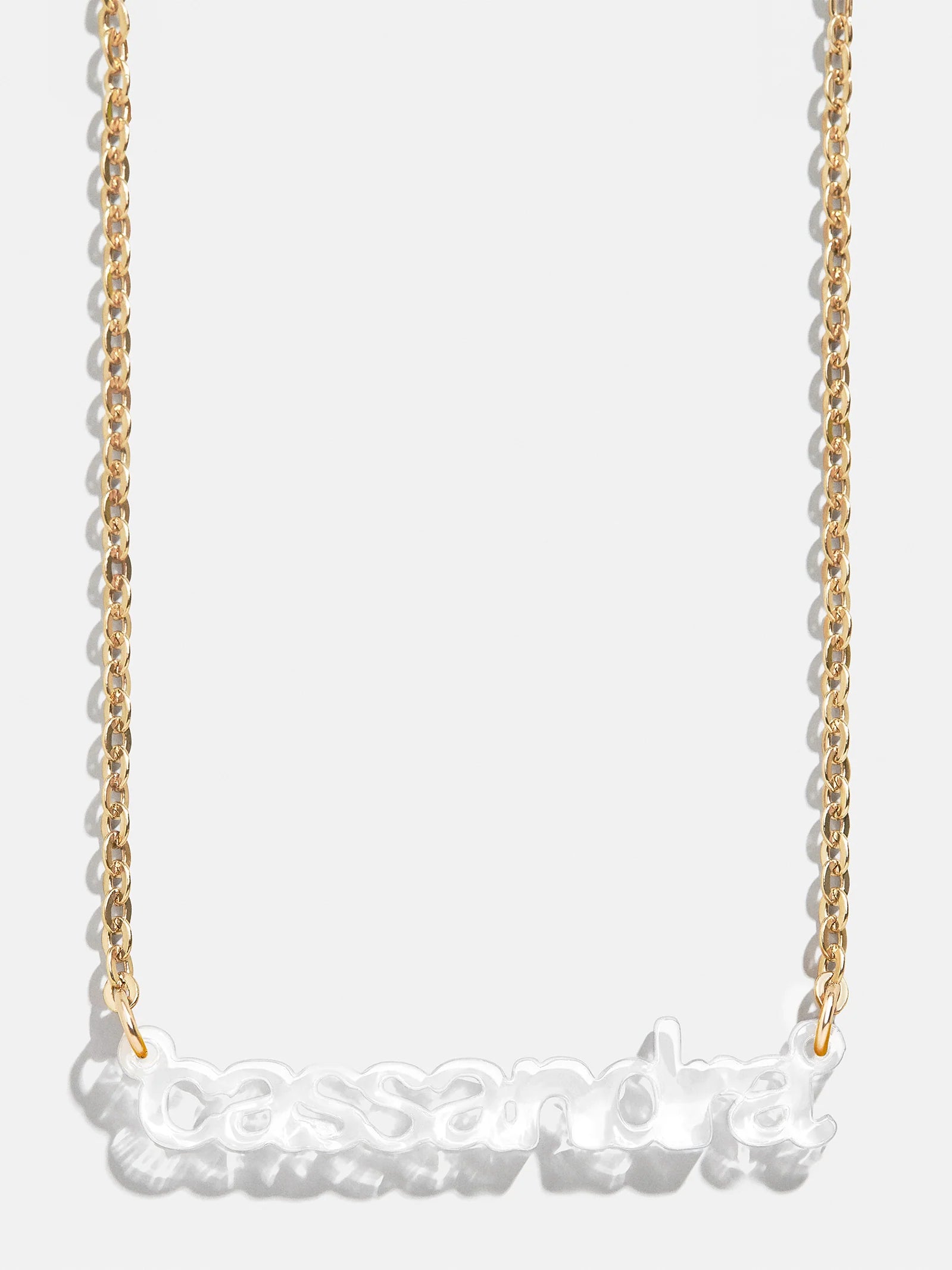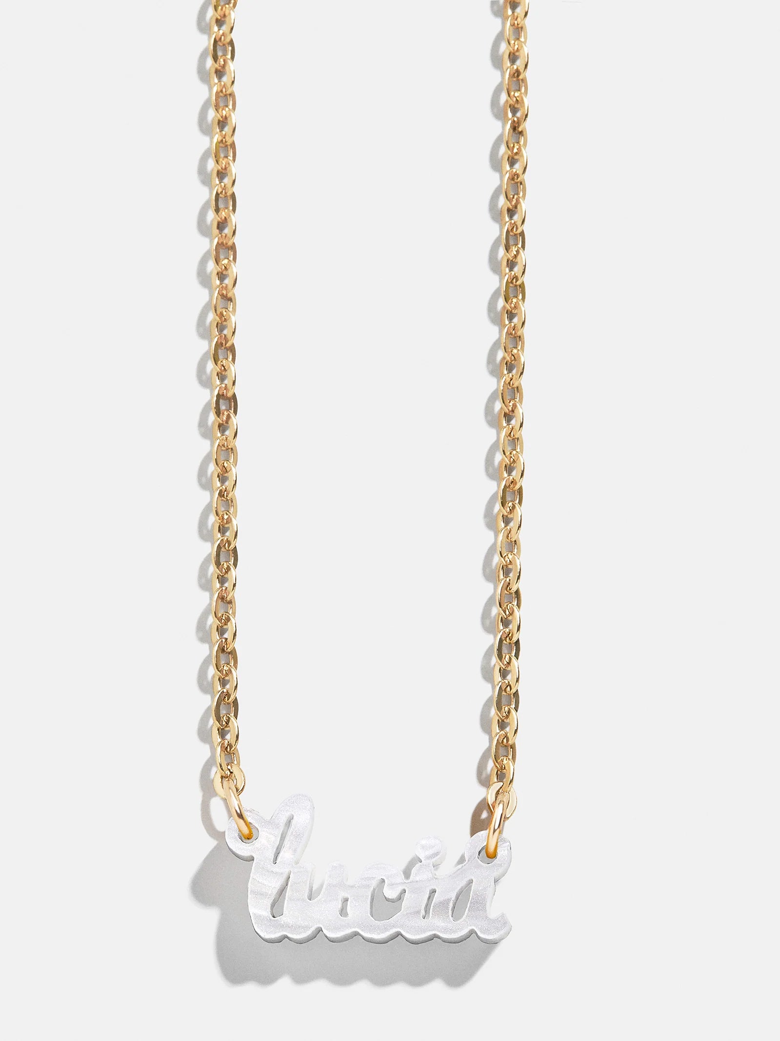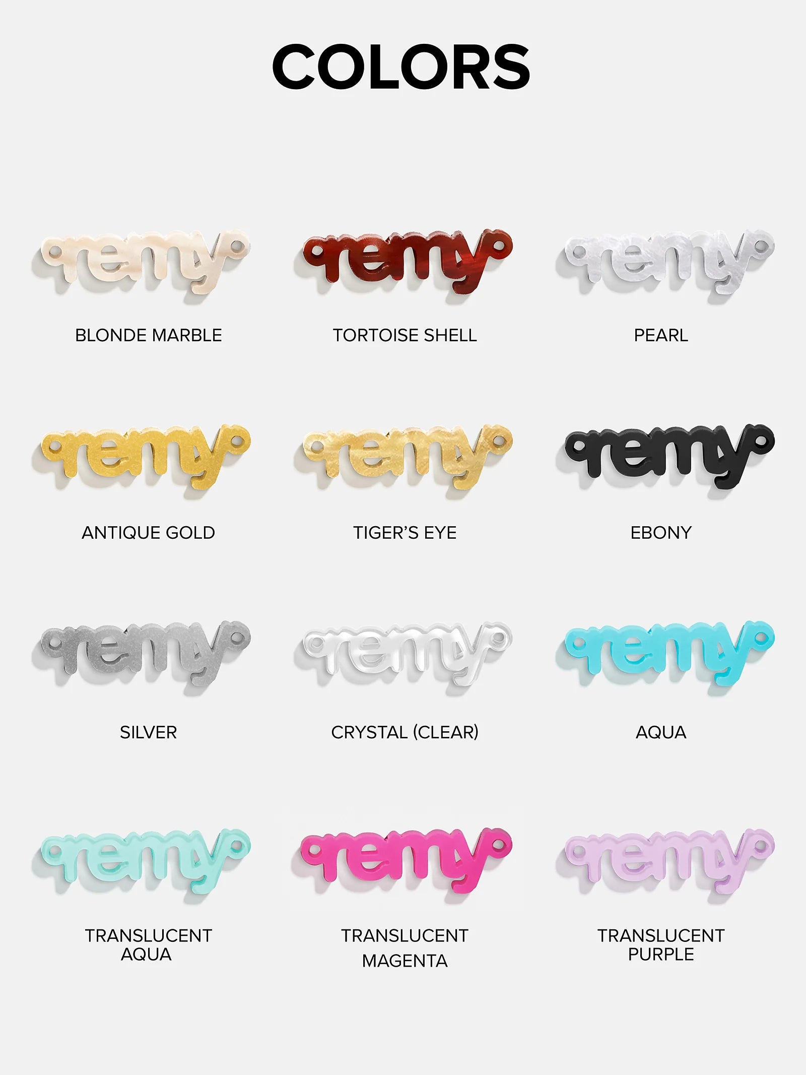The classic nameplate gets a modern reboot thanks to a chic array of acrylic colorways. Whether you opt for a classic name or initials, the range of customizable options will help you put together a personal piece that’s uniquely yours.