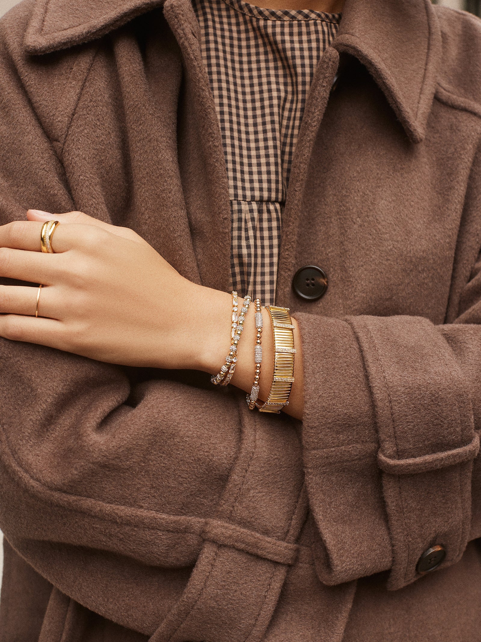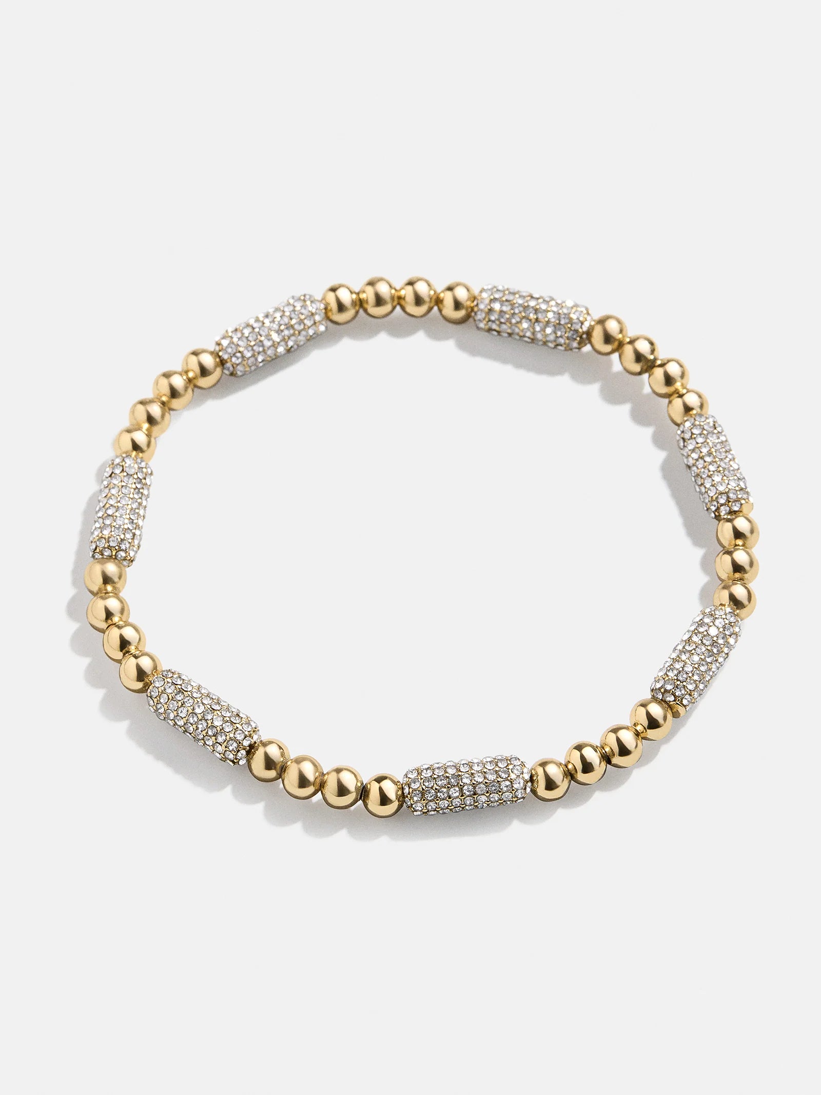 The perfect wrist stack requires all the details. The Adeline Bracelet is elevates everyday looks with its sparkling pavé beads and classic pisa beads. Easily slide this stretch bracelet on and off (but it's so cute, you'll probably want to keep on wearing). This bracelet features 4MM gold beads.