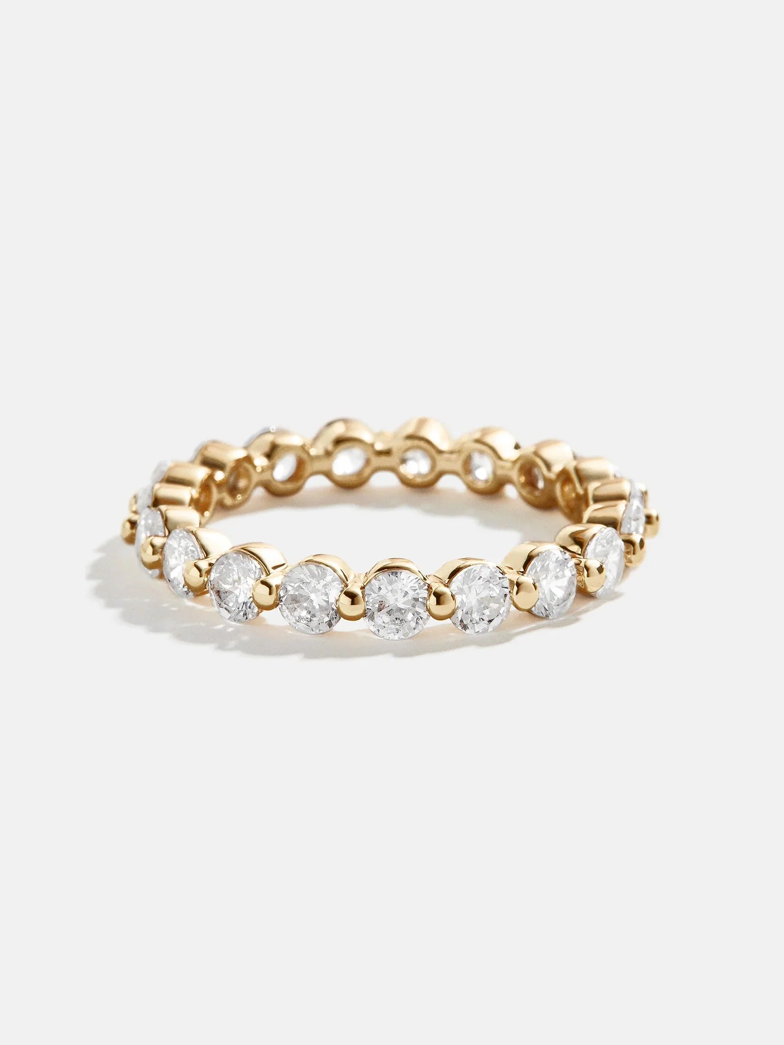 The Alice Ring is a welcome addition to our renowned Alidia Ring collection. Extra sparkly Cubic Zirconia stones allow for even more shine and are crafted in a delicate round shape. Flanked with classic gold hardware, this super stackable ring is paired well with a few other gem styles.