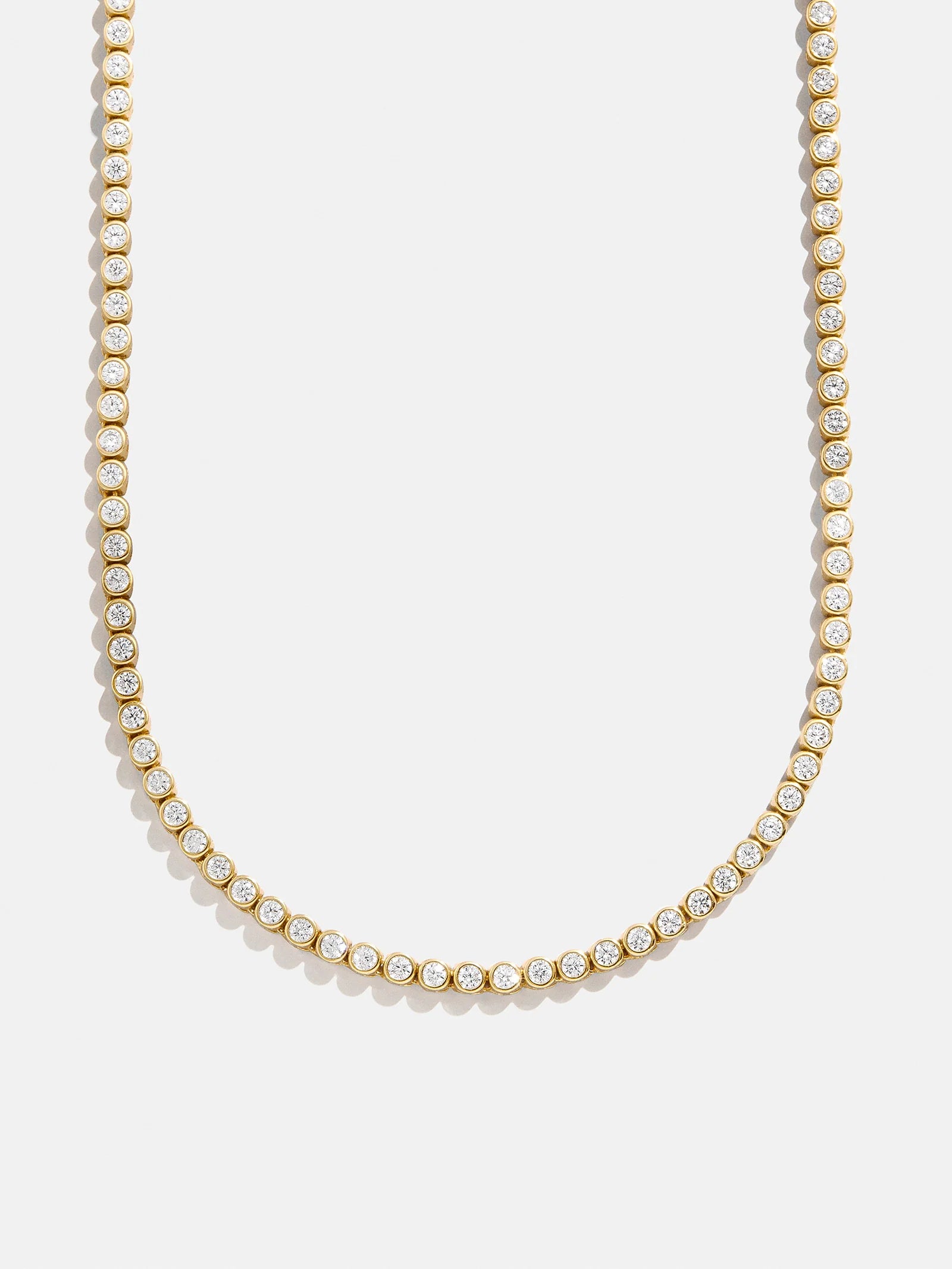 Turn around average looks with effortlessly elevated styles. The Amalie Tennis Necklace is a twist on our best-selling Bennett Necklace, only with round stones. Just like the Bennett Necklace, this tennis necklace is a versatile statement that suits everything from everyday routines to special events.
