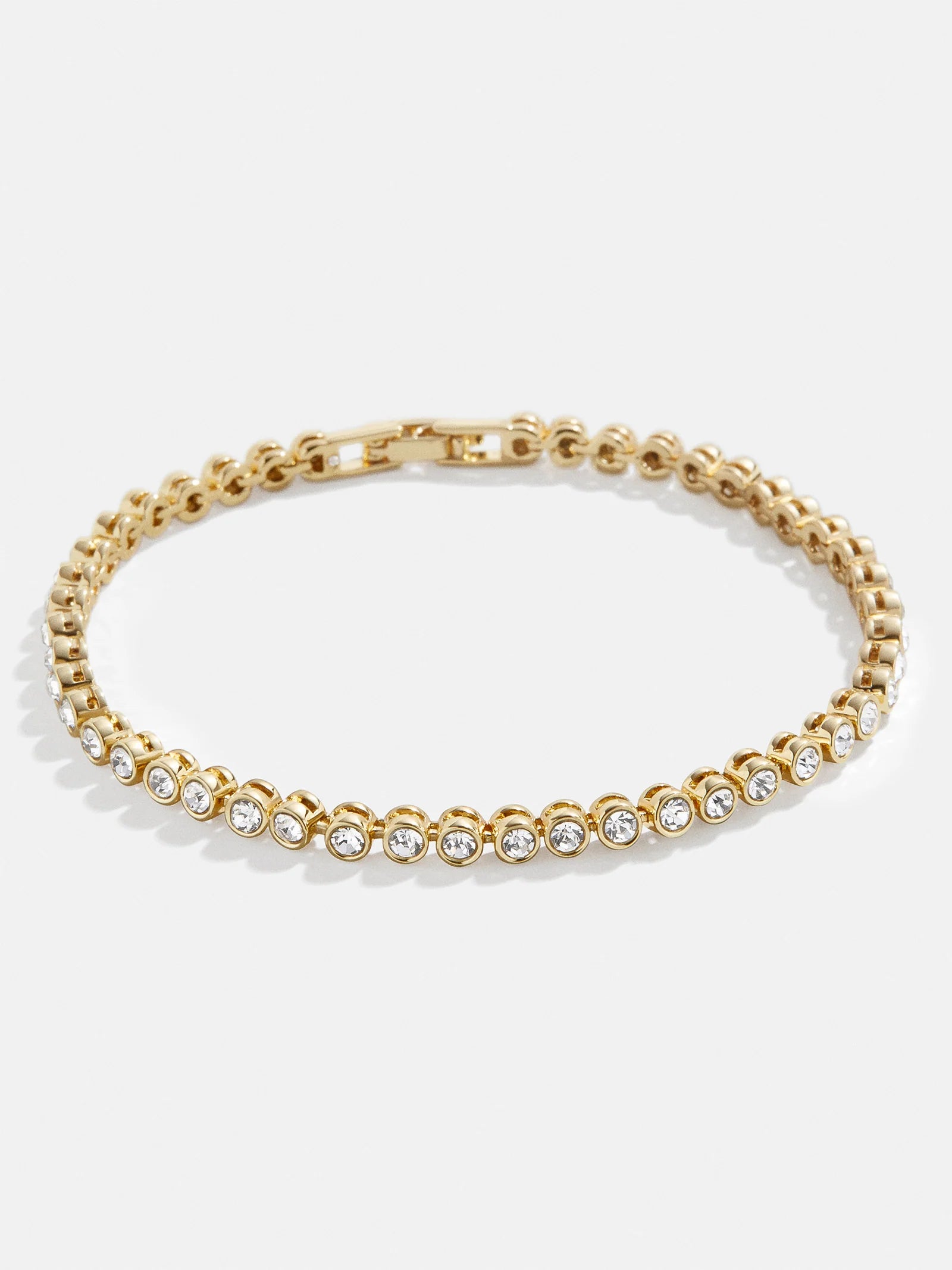 Our Amalie 18K Gold Tennis Bracelet makes for an easy addition to your already-curated wrist stack. This gold and crystal band features a lineup of beautiful bezel stones and stacks perfectly with other bracelet styles. The best part? It's crafted with 18K gold plated sterling silver and shimmering cubic zirconia stones.