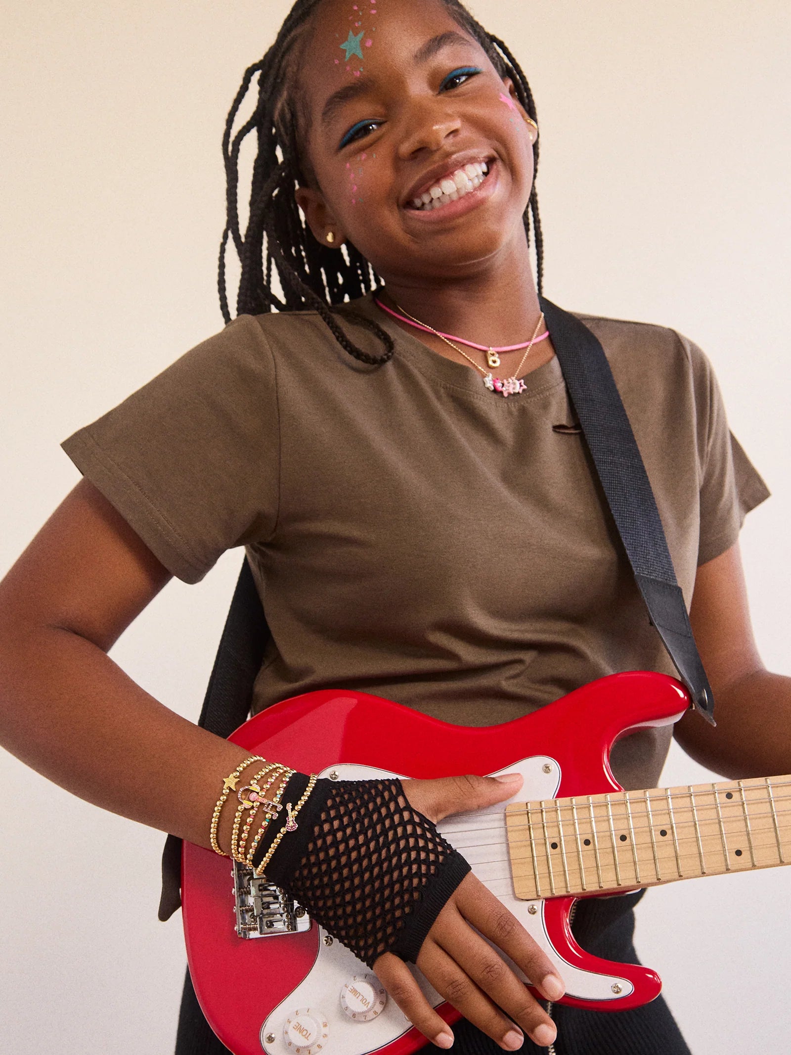 Rock on and finish your outfits with a high note. The Amped Up Kids' Pisa Bracelet Set is complete with 5 stretch bracelets — each designed with a fun music charm. Mix and match, stack 'em up, or share with friends. This bracelet set is gonna be a band class favorite.