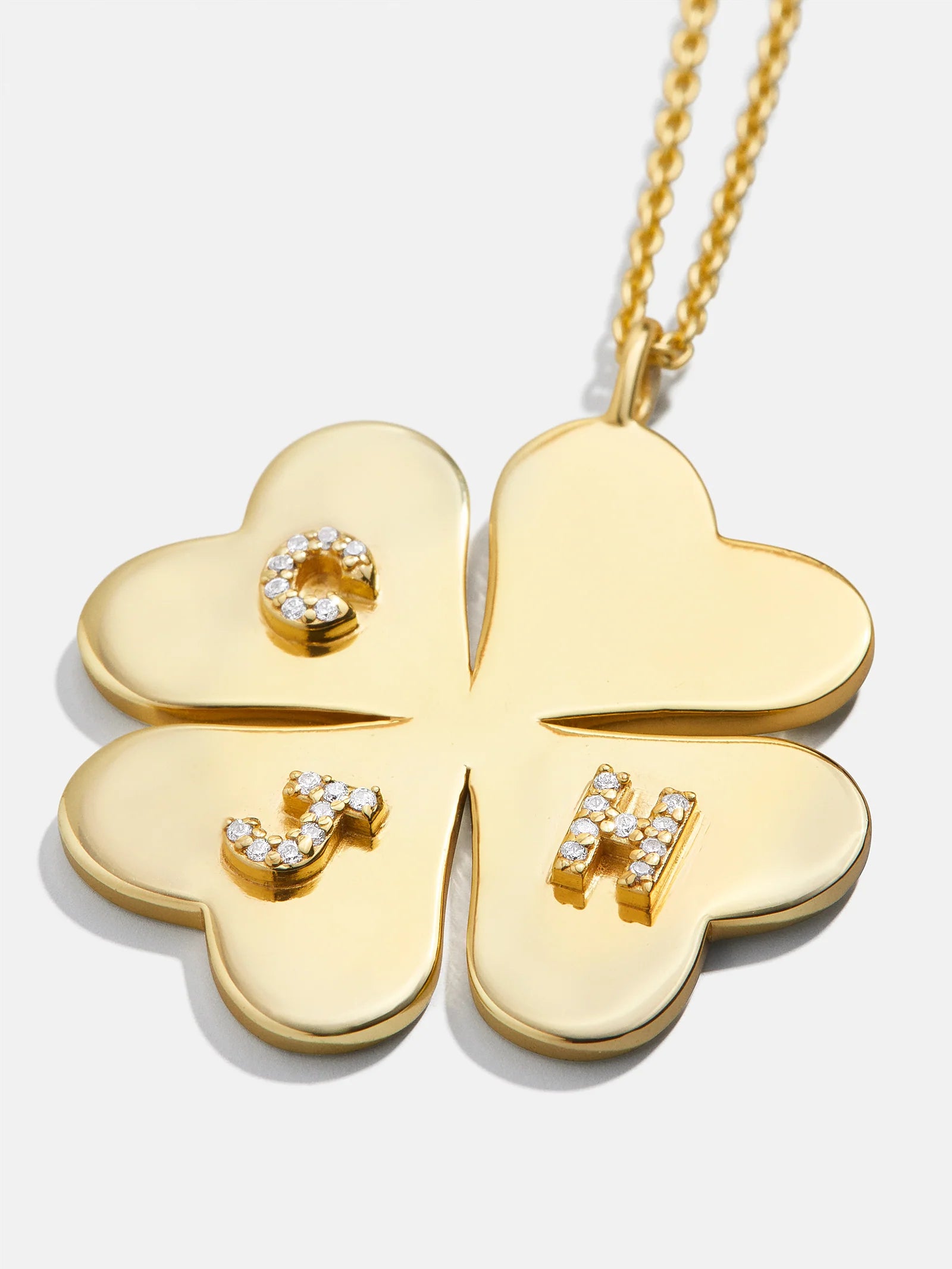 Craft a custom piece to update every stack. The Clover 18K Gold Custom Pendant Necklace allows for the addition of anywhere from 1-4 characters - numbers, letters, or a combination of the two - helping you make this special piece completely your own. Since it's crafted with 18K Gold and Cubic Zirconia stones, this keepsake is bound to last you a lifetime.