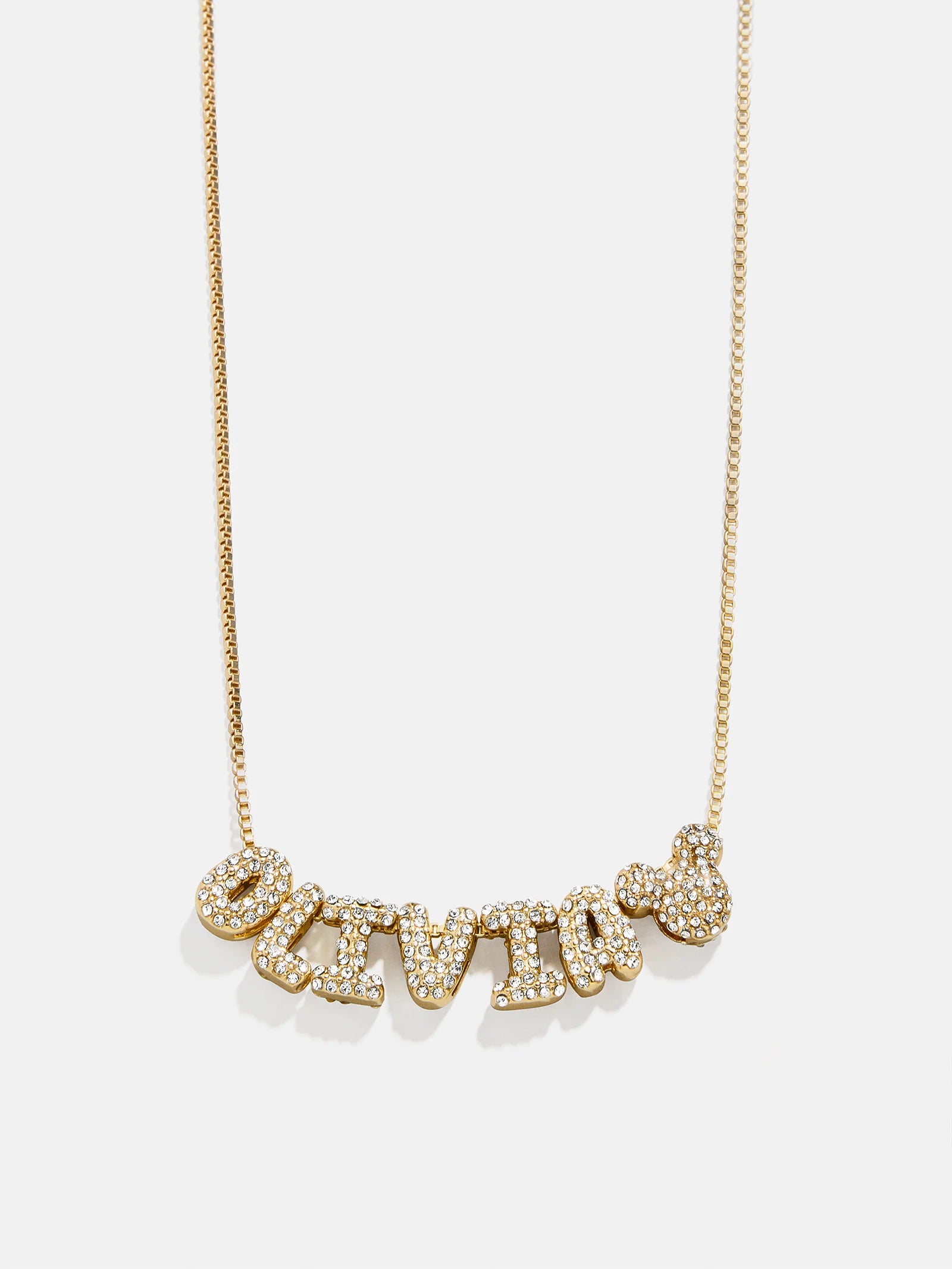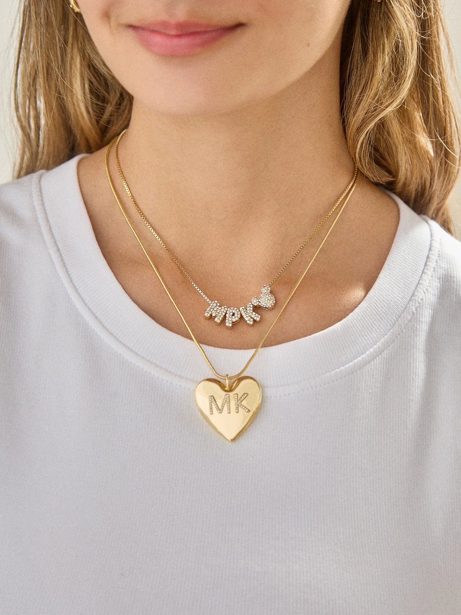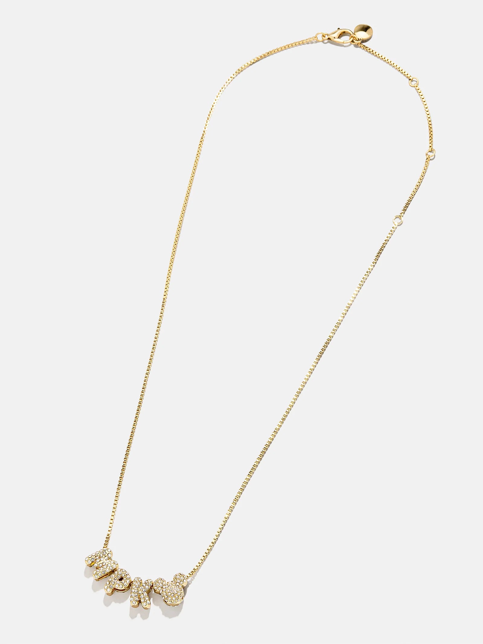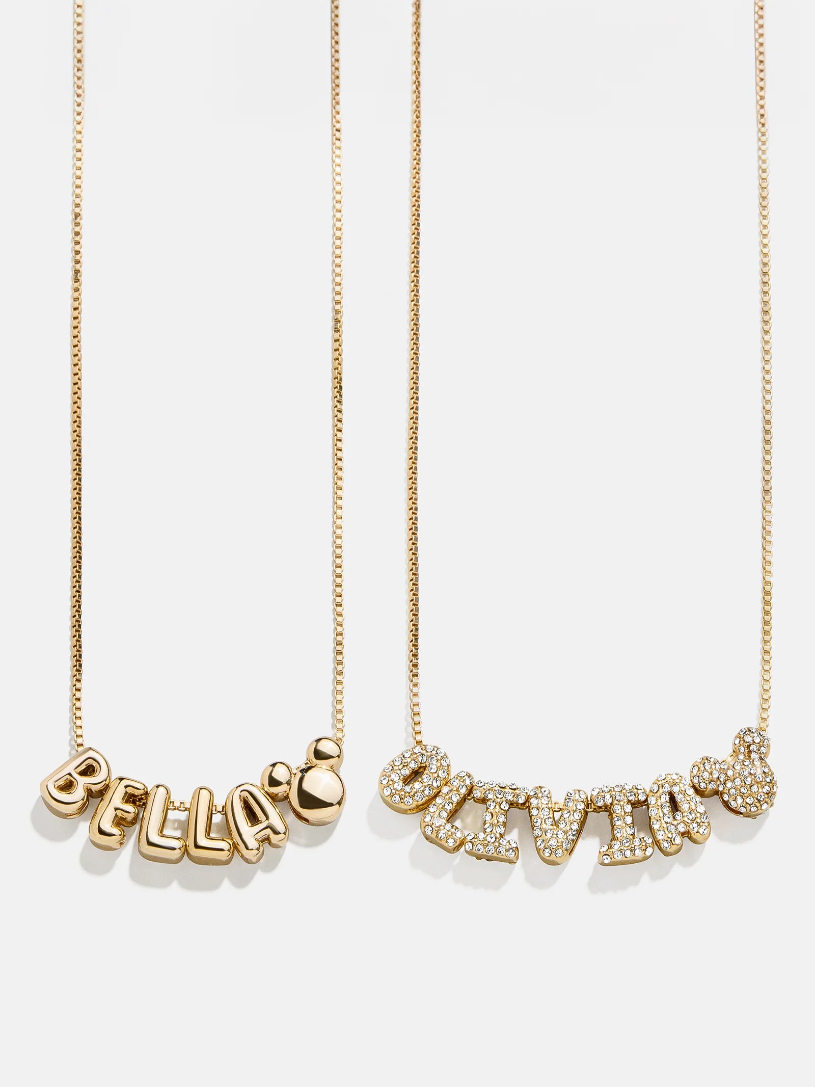 Make a signature statement with the Disney Bubble Letter Custom Necklace. The name or phrase of your choice will be added in a fun, 3D-inspired font, and placed right next to a Mickey Mouse bead. Available in either classic gold coloring or shimmering pavé, this necklace is one you’ll want to wear every single day.
