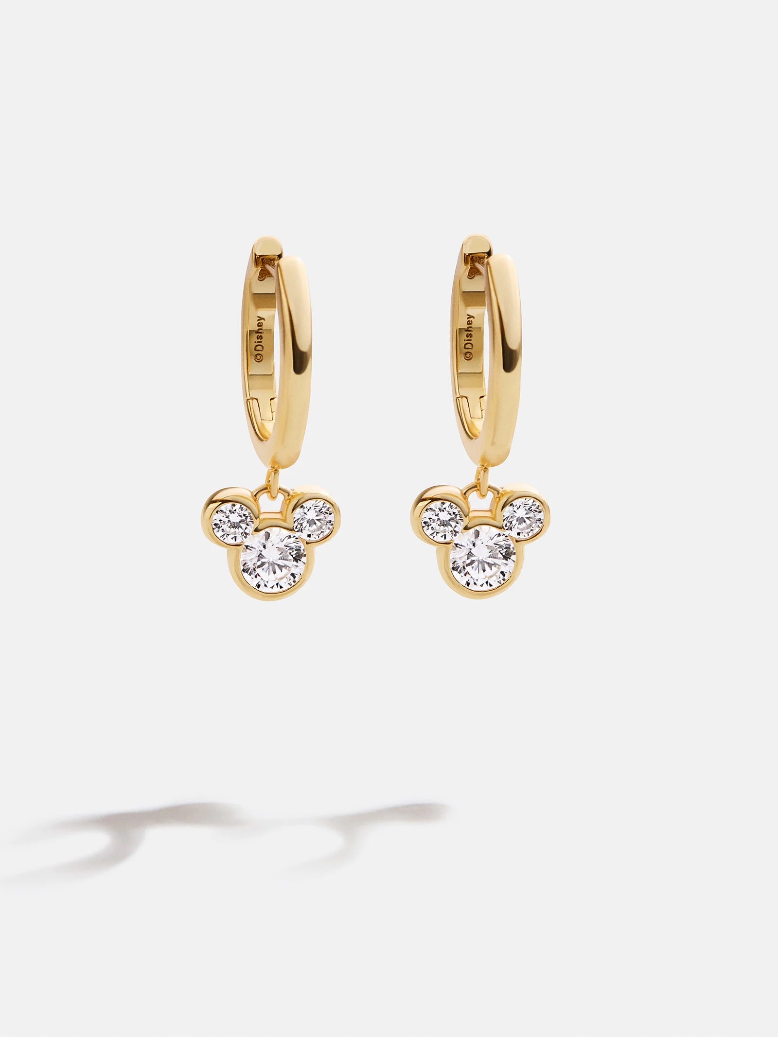 A timeless tribute to Disney, these huggie earrings are keepsake for every fan. Mickey Mouse’s signature silhouette is made up of shimmering cubic zirconia stones, and dangling from an 18k gold plated sterling silver huggie. They’re elegant, dainty, and long-lasting — perfect for lowkey moments and special occasions alike.