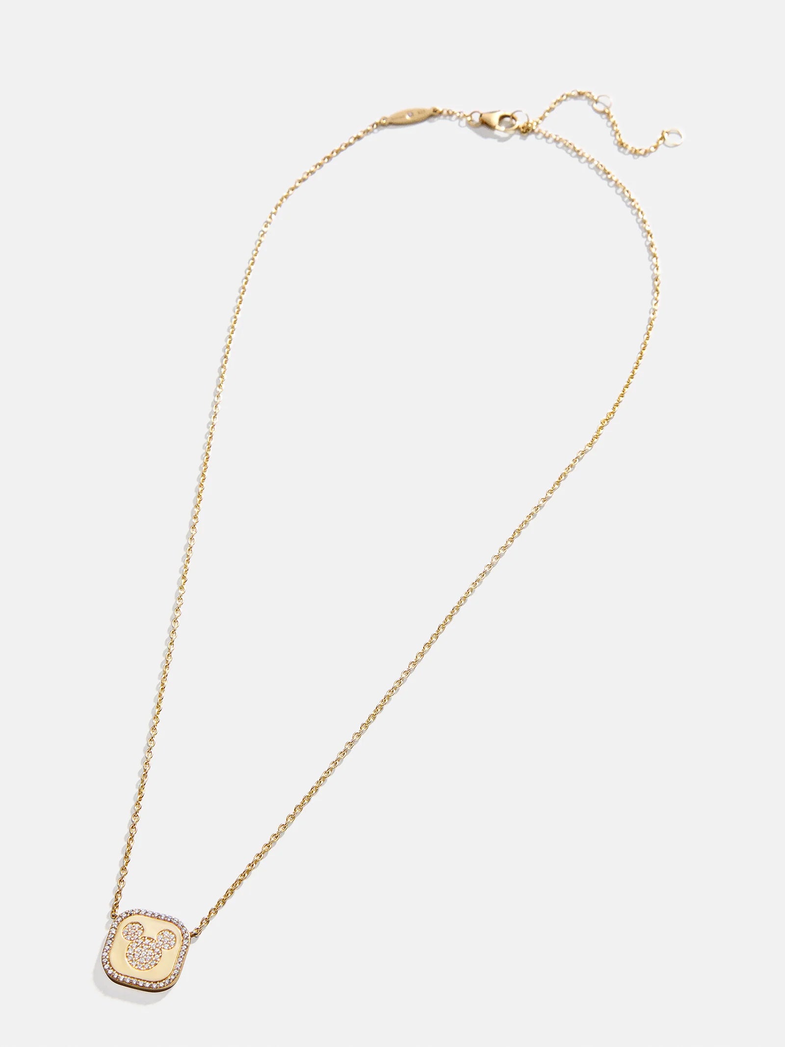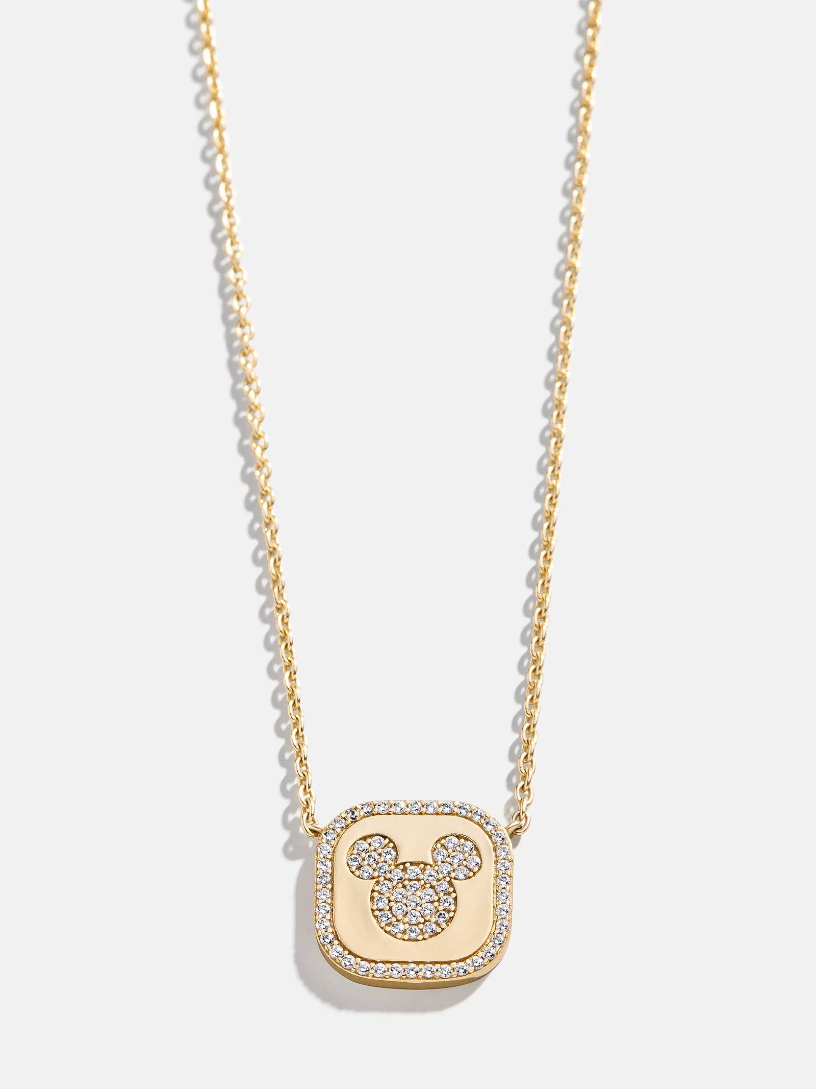 Celebrate your love for Disney’s Mickey Mouse with this stunning necklace. The pendant features shimmering cubic zirconia stones in the shape of Mickey’s signature silhouette. Crafted with 18k gold plated sterling silver, this necklace will last for years of wearing.