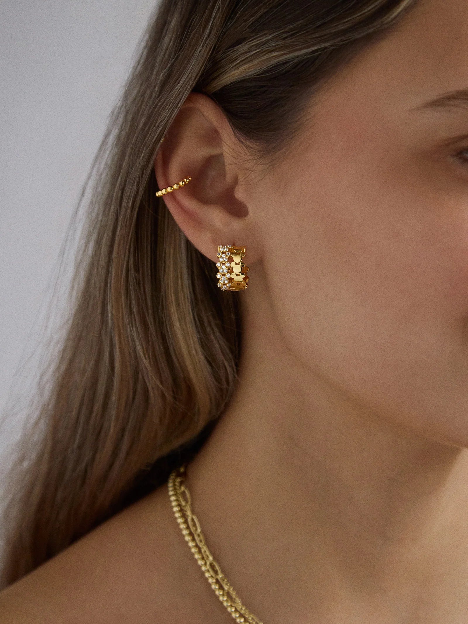 Our classic Mickey Mouse design got a modern remix with these two-tone earrings. Sleek and endlessly wearable, repeating Mickey Mouse silhouettes are featured in both classic gold and shimmering pavé, creating a striking contrast that’s glamorous and cool. Crafted out of 18k gold plated sterling silver, they’re designed to last for years of styling.