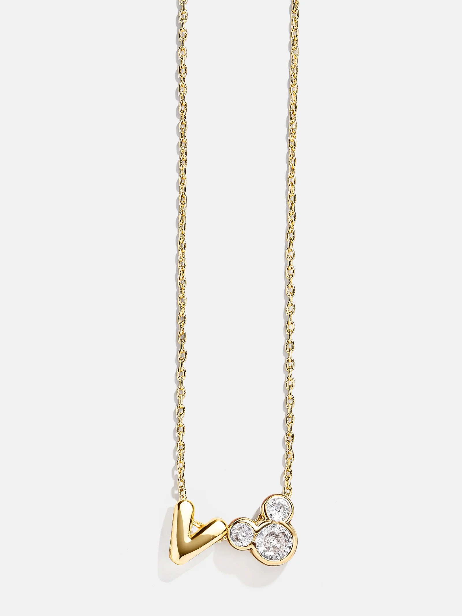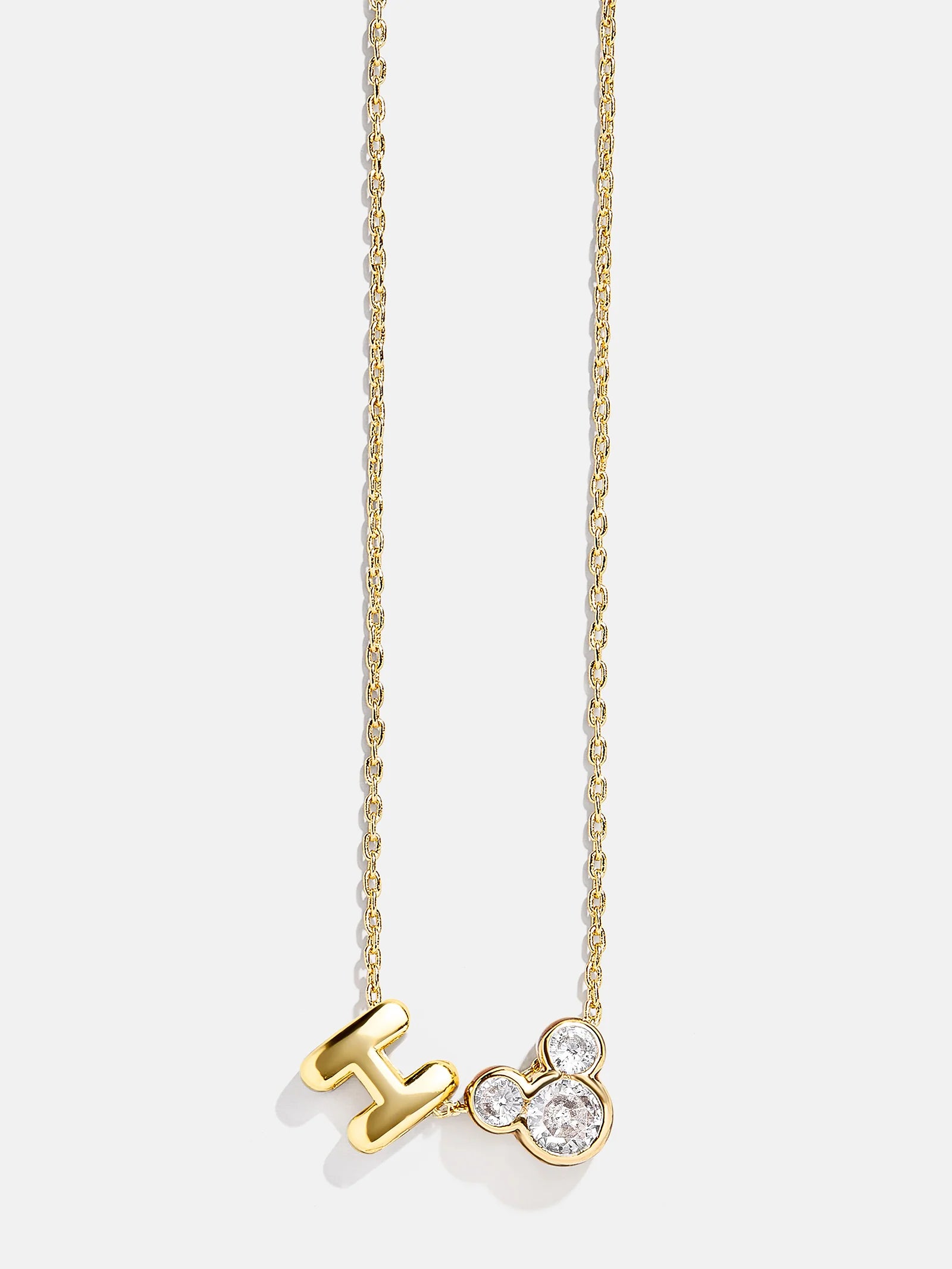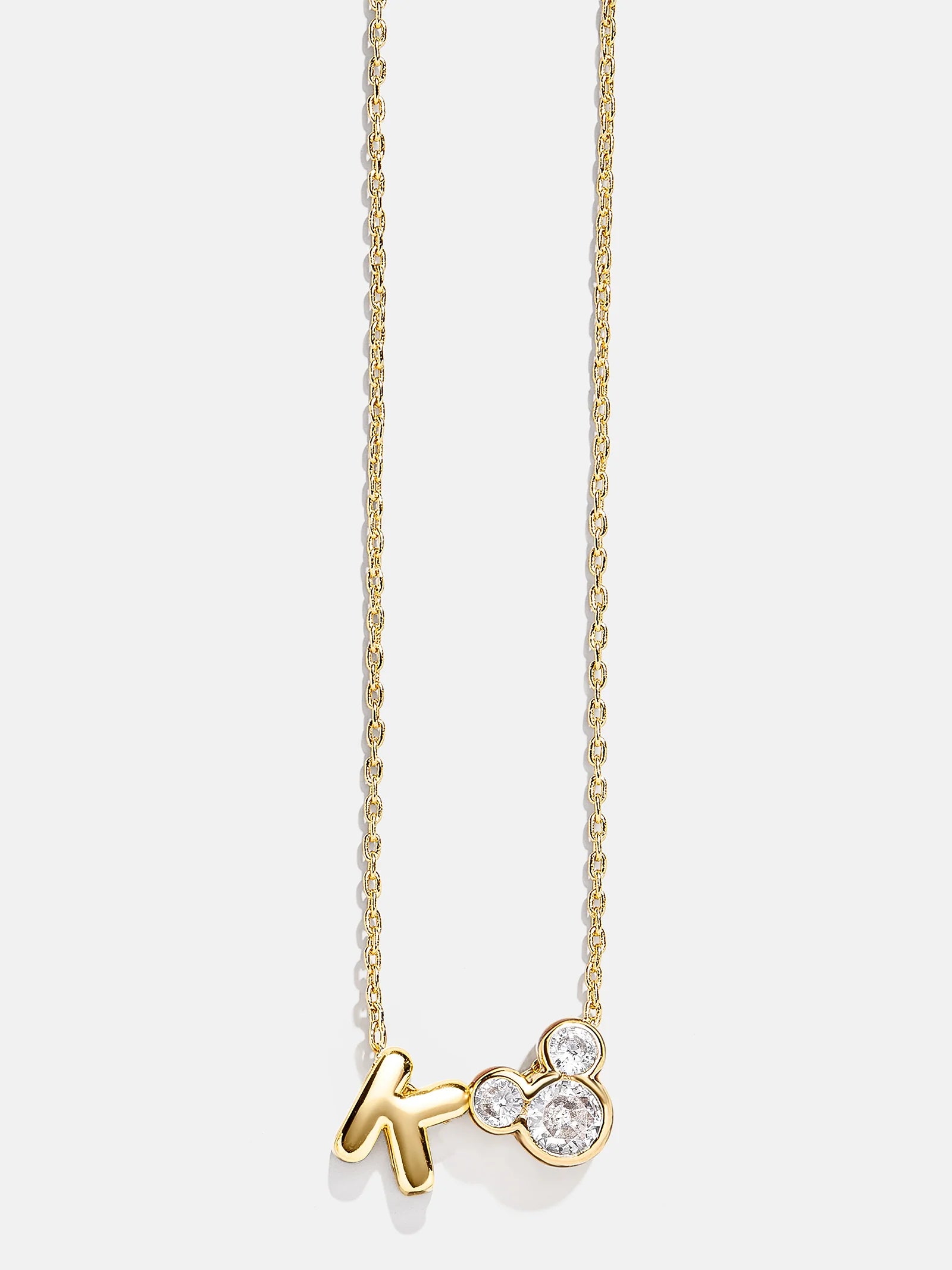 Show off your love for Disney with a signature statement. The Disney Mickey Mouse Initial Necklace features the initial of your choice alongside Mickey's signature silhouette. Elegant and dainty, it's the perfect way to sprinkle Disney magic anywhere you go.