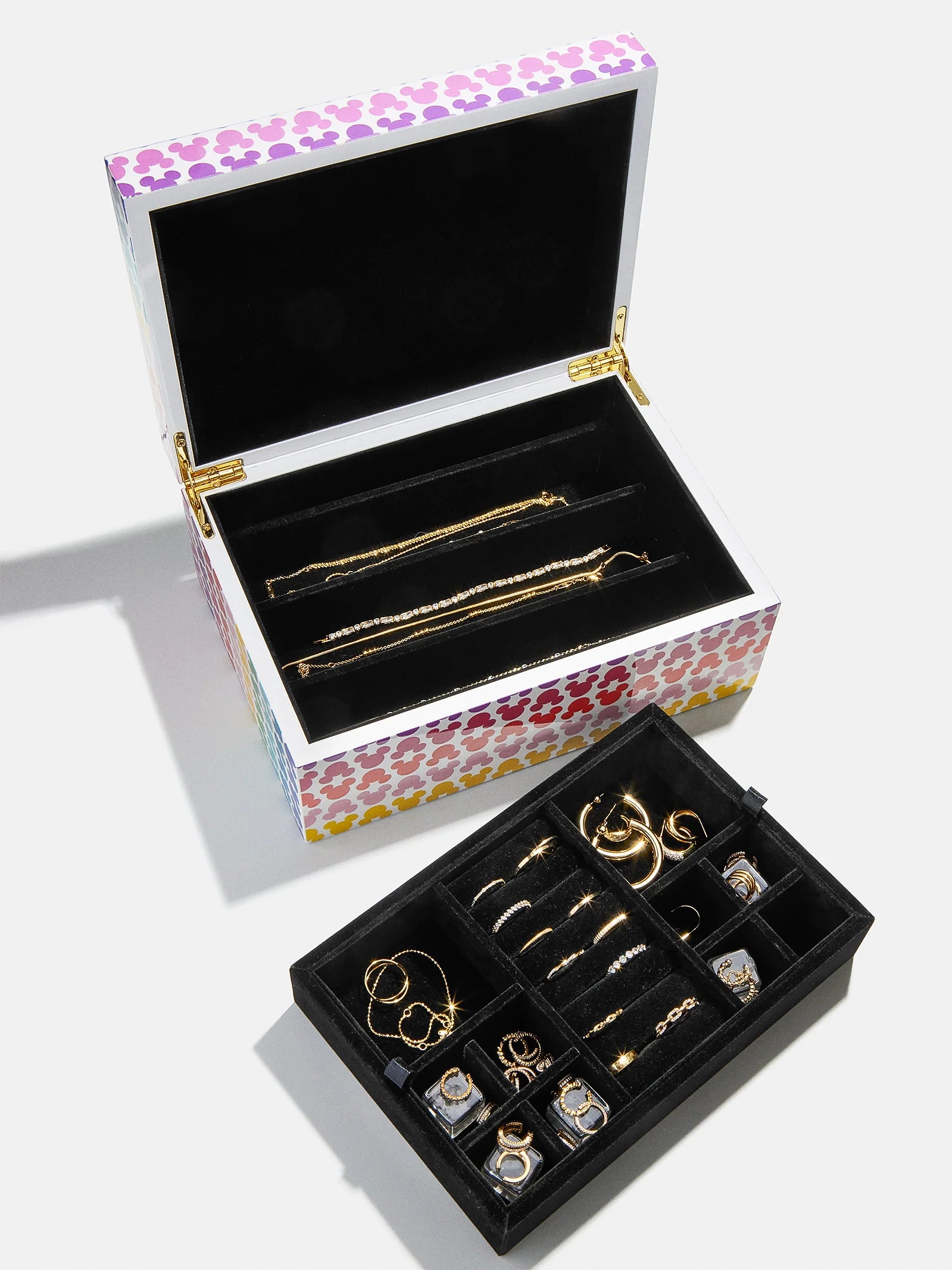 Add a little Disney to your home decor. The Disney Mickey Mouse Jewelry Lacquer Box keeps all of your accessories organized in one place with some added Mickey Mouse flair. Inside, you'll find separate sections that safely hold rings, bracelets, necklaces, and earrings. Fill it with your favorite pieces so you'll never scramble to find your jewelry again.
