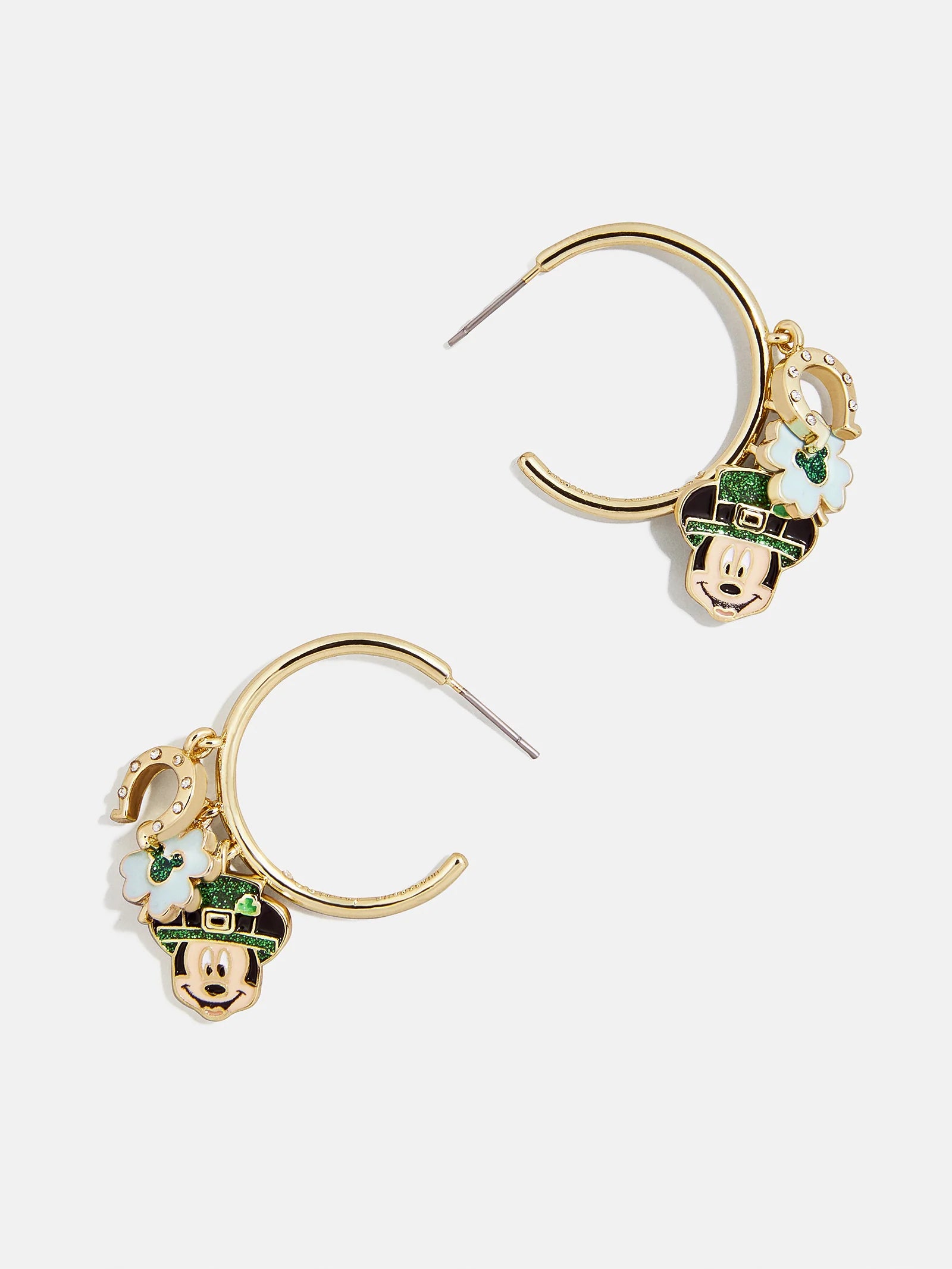 Bring out your lucky side with these Disney hoop earrings. These statement hoops feature Mickey Mouse and St. Patrick’s Day-themed motifs including a four leaf clover and a lucky horseshoe to create earrings so charming, they’d impress a leprechaun. They’re festive and fun conversation-starters, perfect for any Disney fan this holiday.