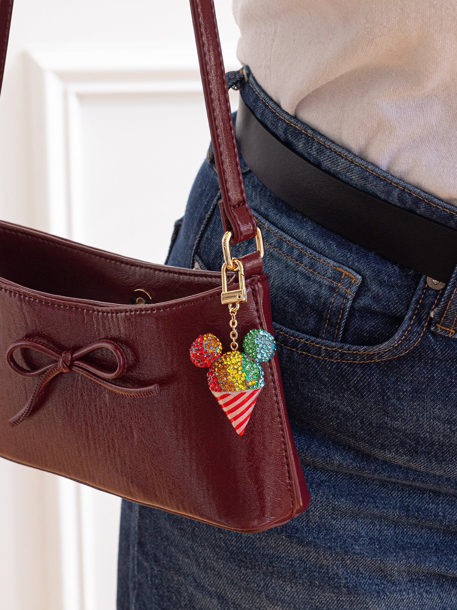 Your favorite Disney treat just became your new favorite accessory! Frosty and fun, this bag charm features a multicolored snow cone in the shape of Mickey’s signature silhouette. It’s an adorable conversation-starter that adds vibrant personality to your look.