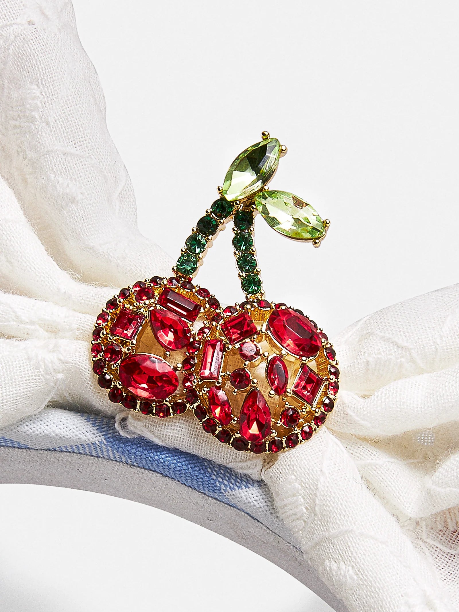Get ready for garden parties with the Disney Minnie Mouse Cherry Ears Headband! Minnie's signature ears get a charming twist with a blue gingham print, playful red pom-pom trim, and a darling eyelet lace bow. A cherry brooch and dazzling red sequined cherries add the perfect pop of color, making this headband a must-have for picnics, barbecues, and other outdoor celebrations.