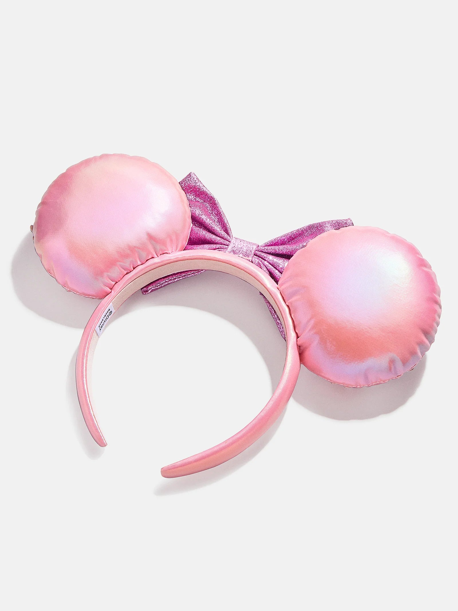 Embrace your inner Minnie Mouse with an oh-so-pretty pink look. These Disney ears are designed in a bright rose shade, and decorated with pink flowers to match. Wear it to brighten up your look and celebrate your love for the iconic mouse.