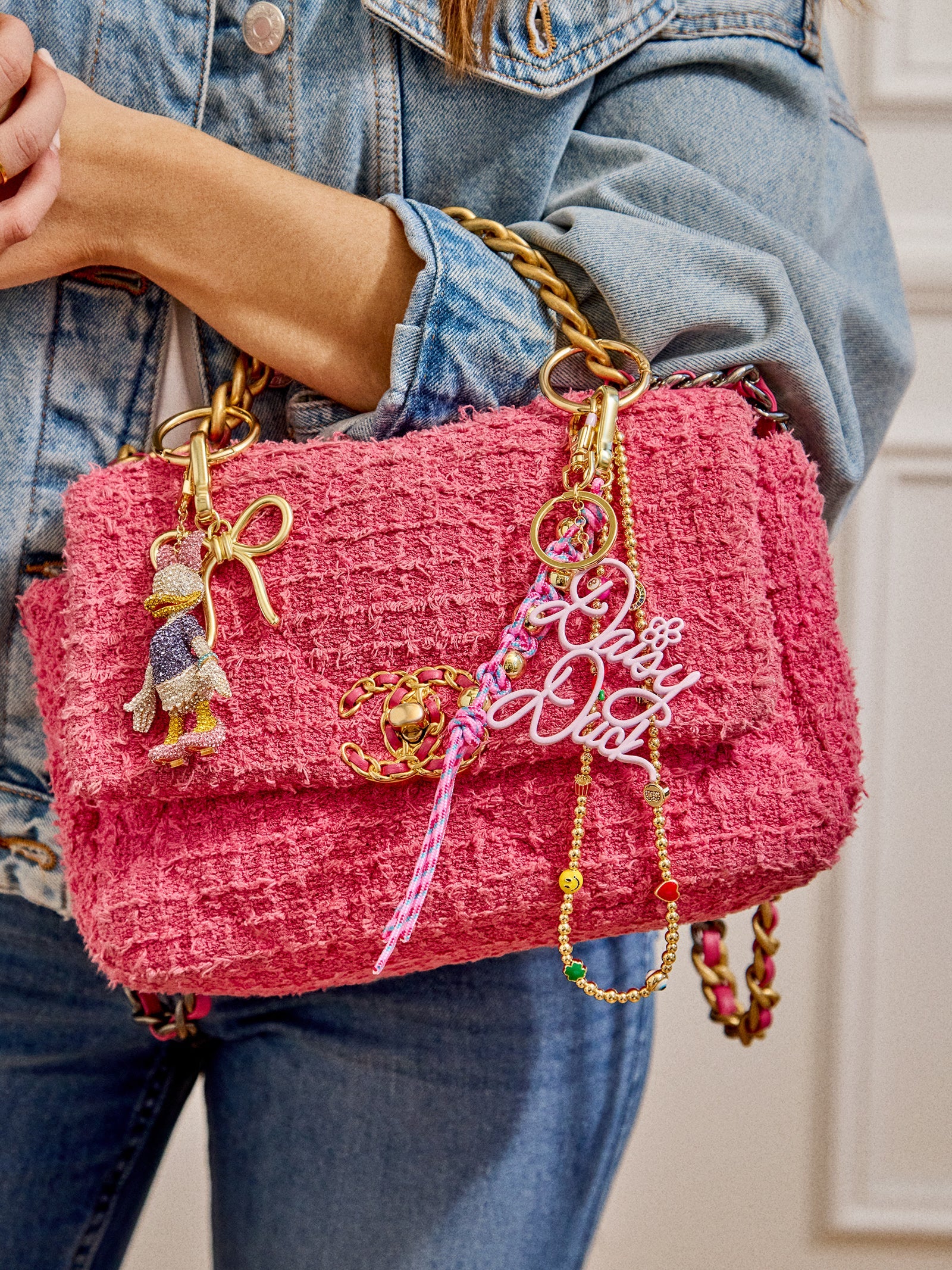 Add a signature statement to your purse with a bag charm that Daisy would sign off on. The Disney Signature Enamel Bag Charm features Daisy Duck's autograph in pastel purple enamel. Super fun, it's a must-have for any Disney fan looking to show off their favorite character.