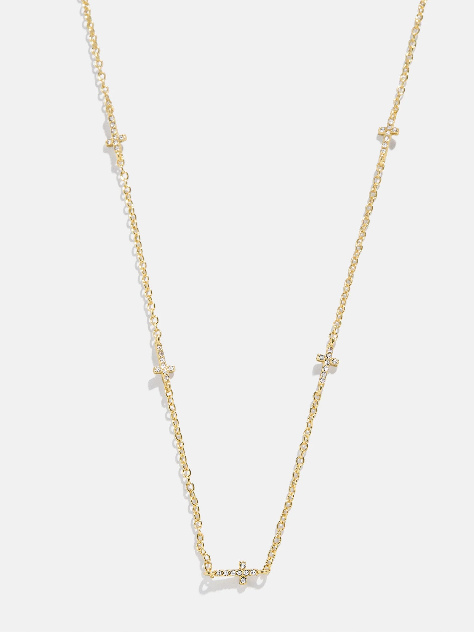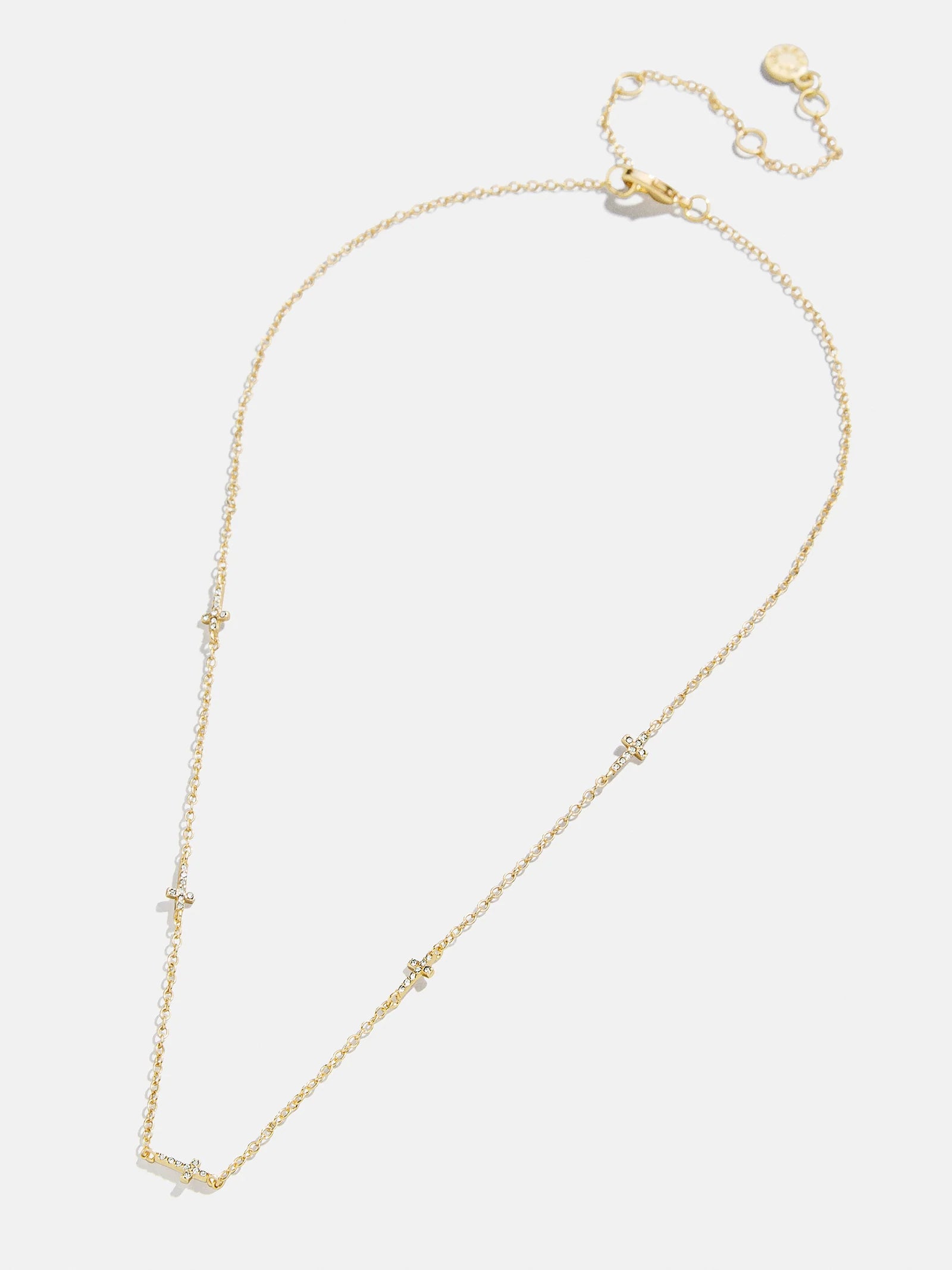 Stay true to you with the Divine & Protected Necklace — featuring the sentimental motif of your choice. Elegantly designed on a gold chain and crafted with shimmering glass stones, this necklace elevates any look. Perfect for your everyday jewelry rotation and special occasions alike, you won't ever want to take this necklace off.