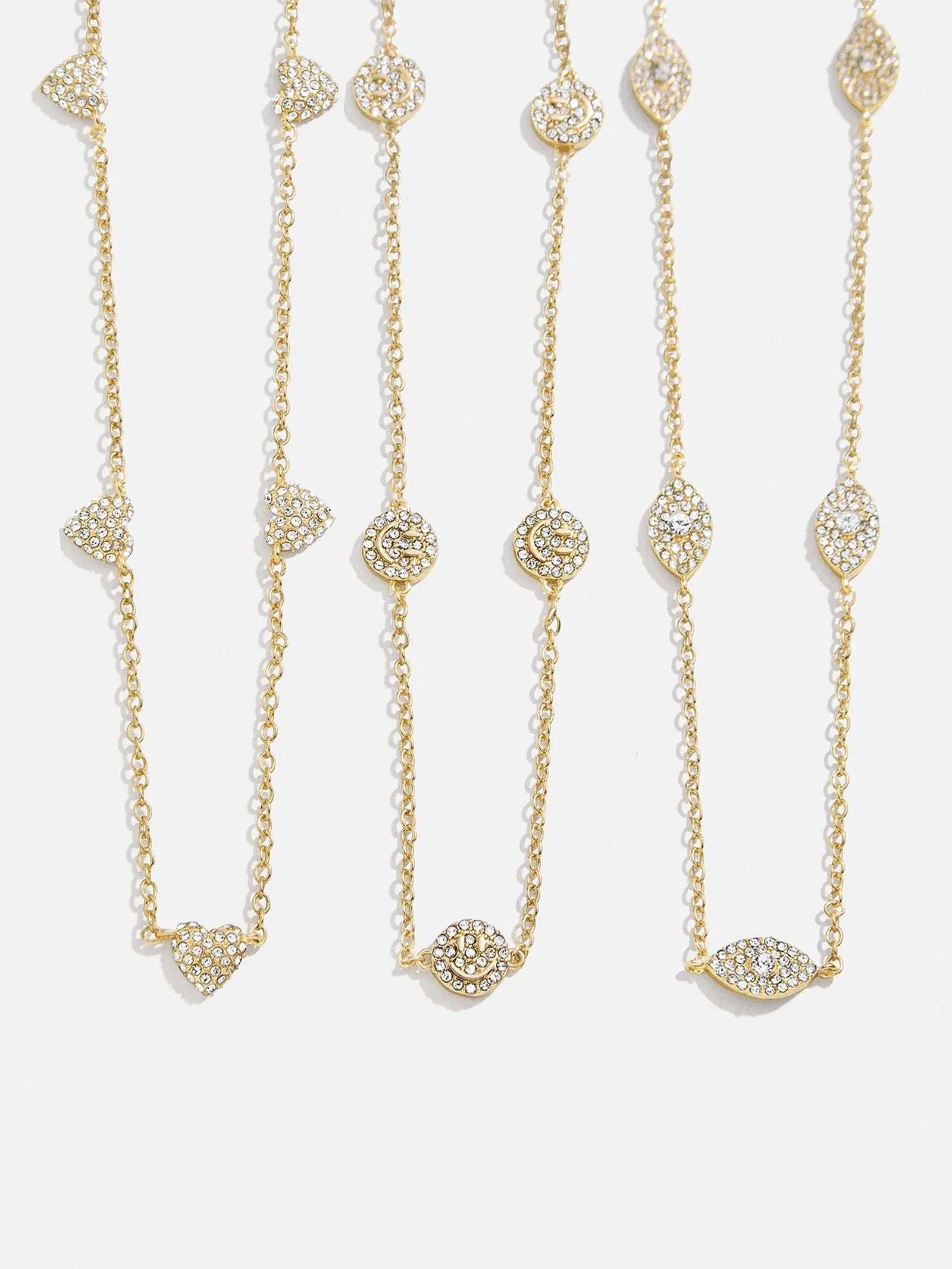 Stay true to you with the Divine & Protected Necklace — featuring the sentimental motif of your choice. Elegantly designed on a gold chain and crafted with shimmering glass stones, this necklace elevates any look. Perfect for your everyday jewelry rotation and special occasions alike, you won't ever want to take this necklace off.