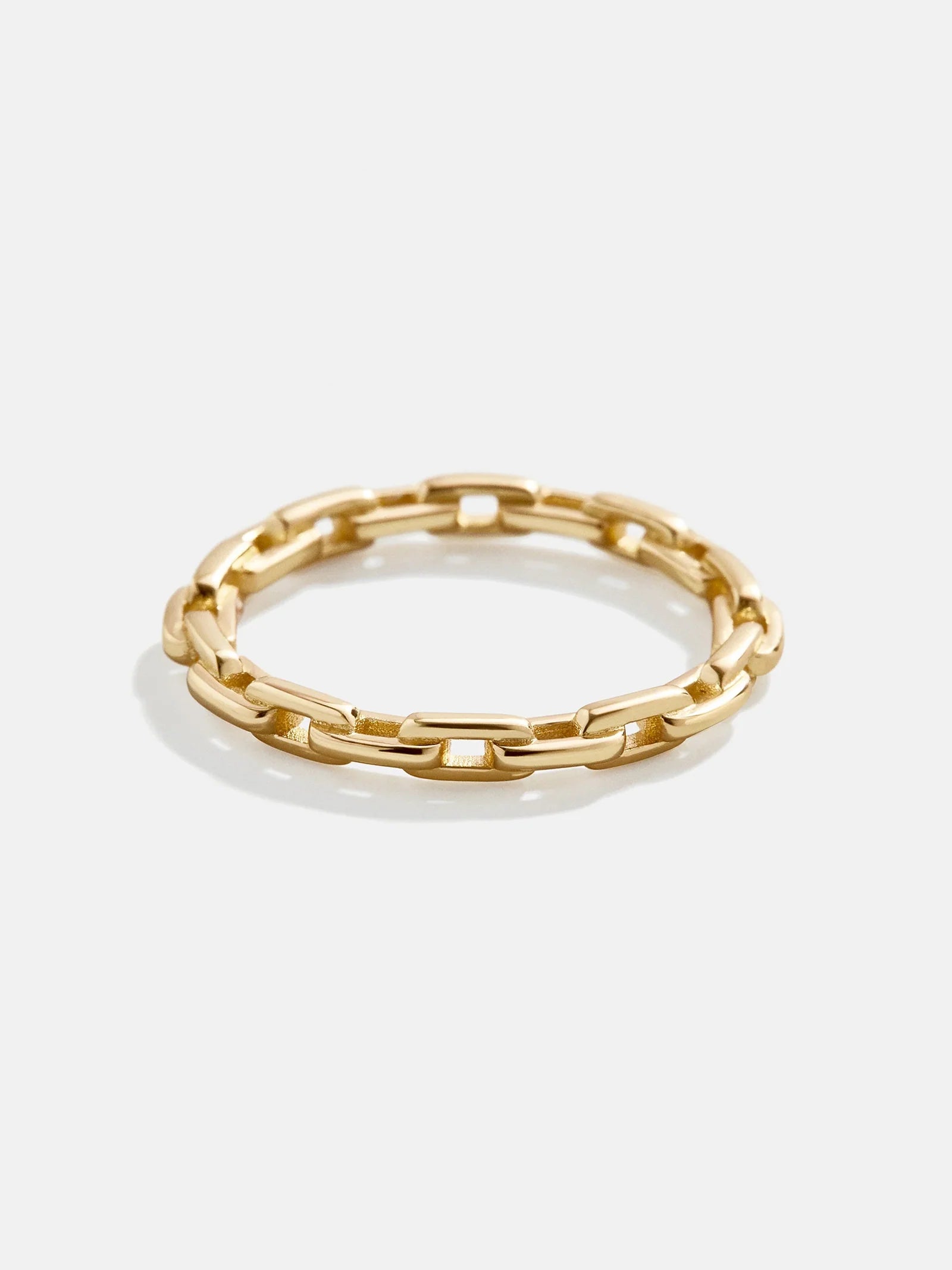 You asked, we listened. Our Hera Ring has now been crafted in a luxe 18K Gold version. This gold band, featuring tiny paperclip links, makes for the perfect stacking style.