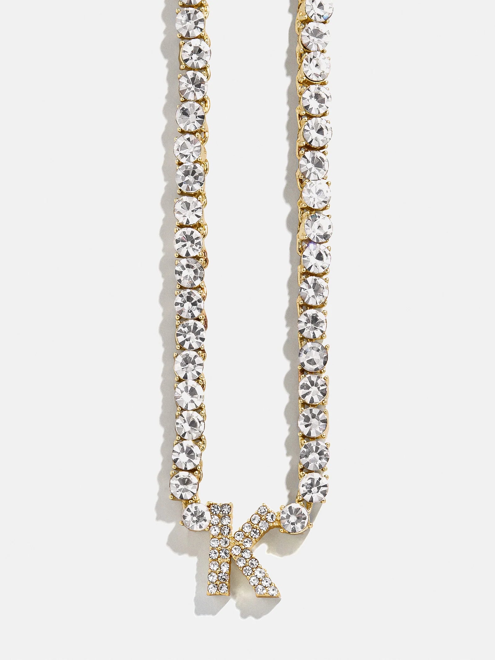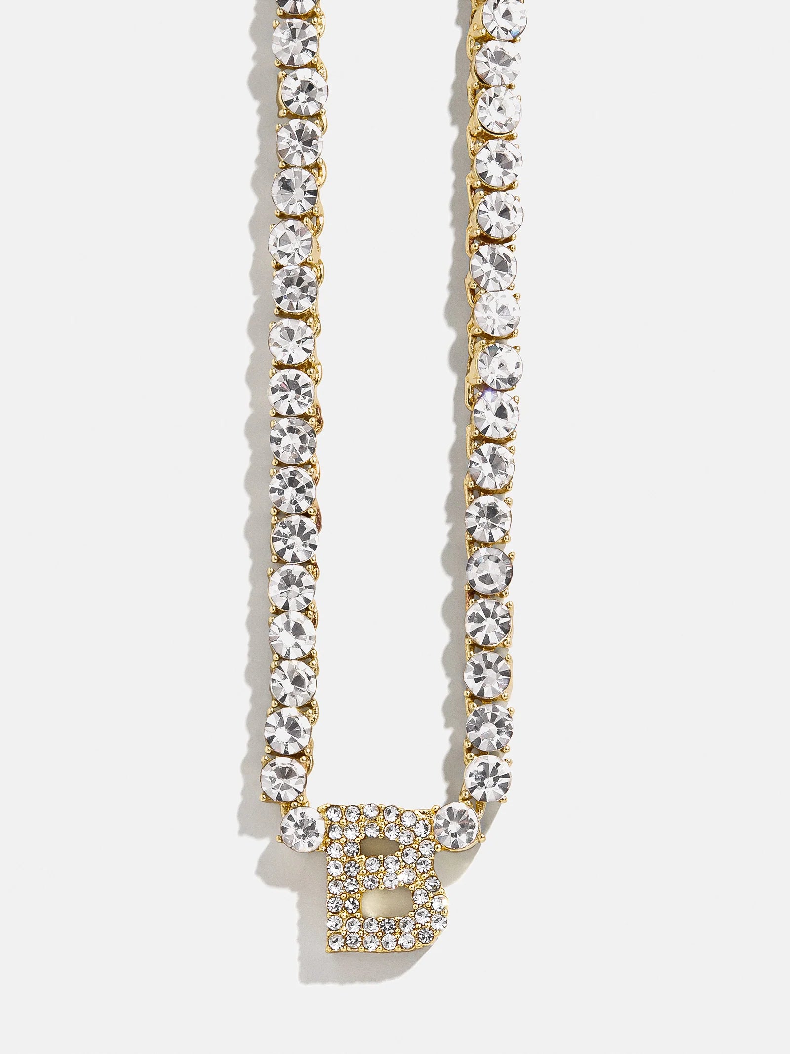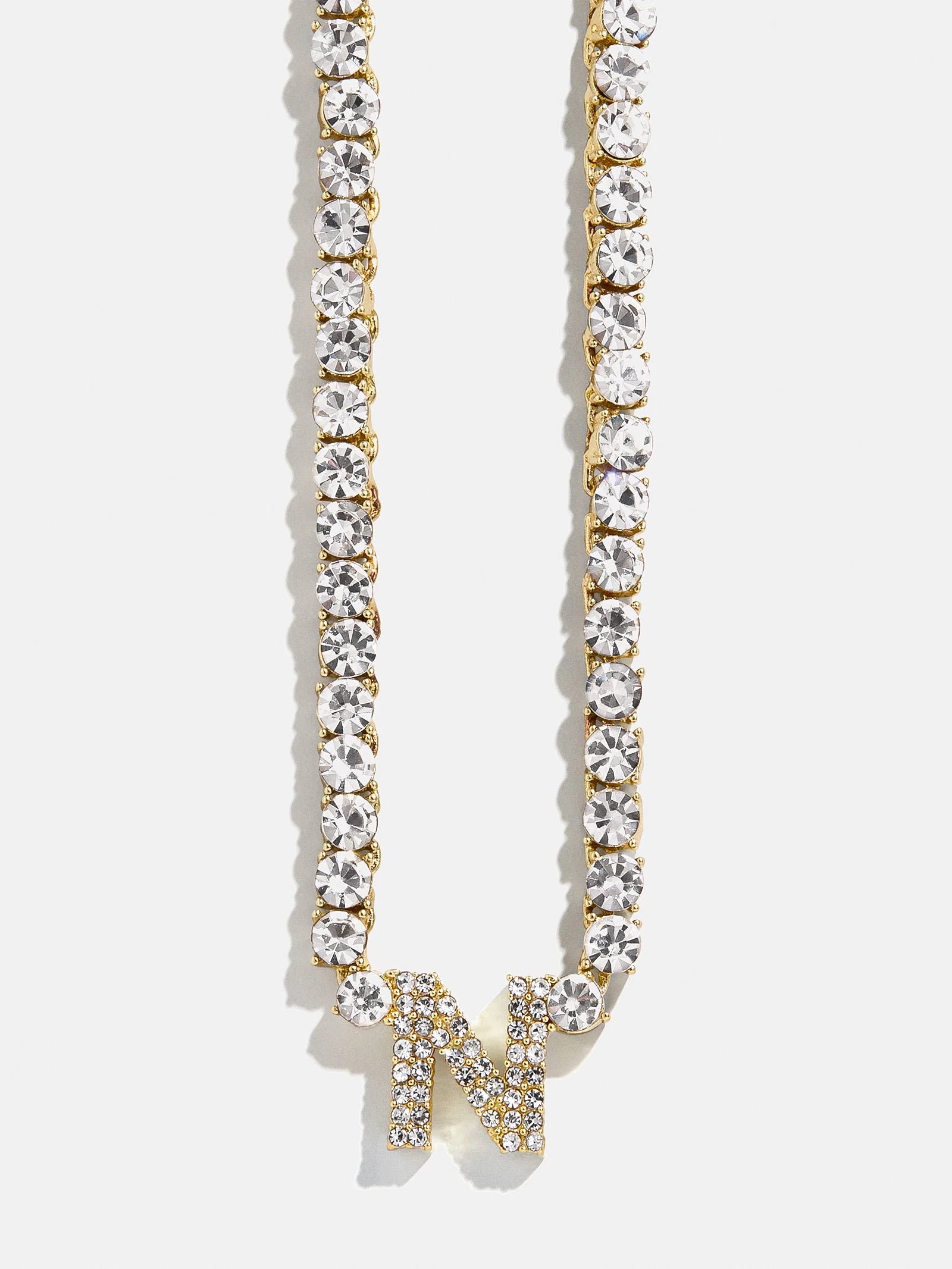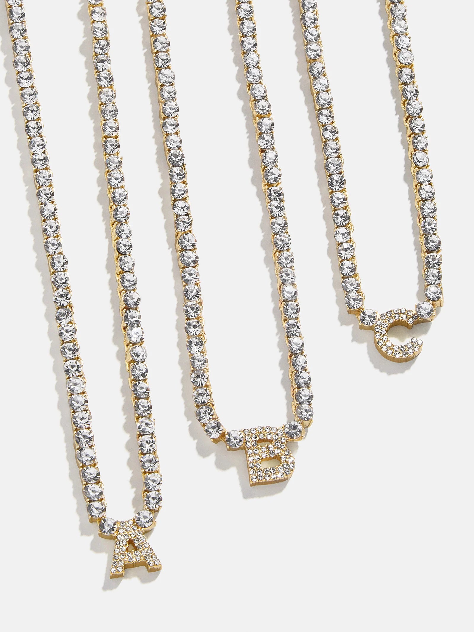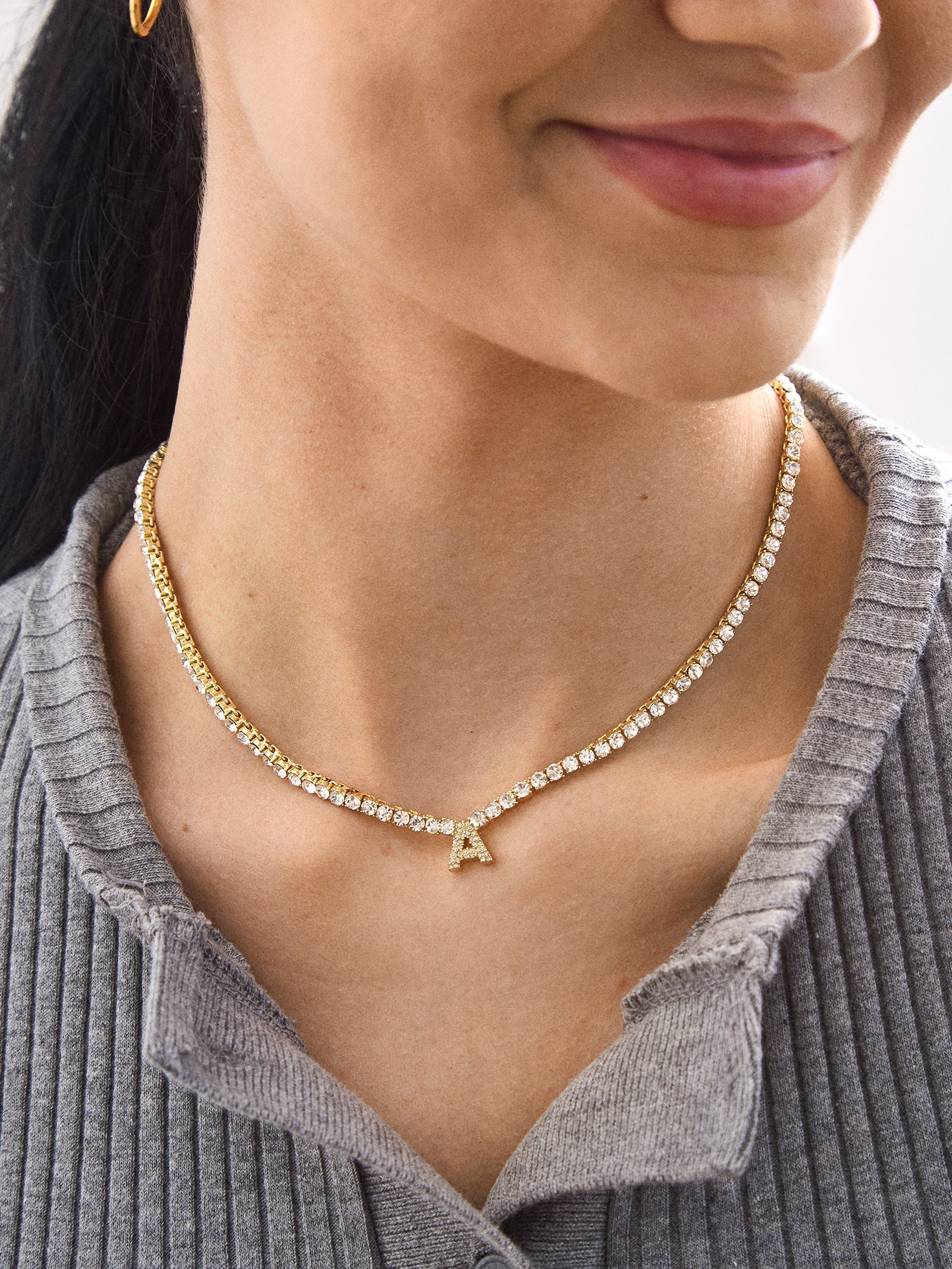One letter can say so much, especially in our classic custom initial tennis necklace. This Initial Tennis Necklace features the letter of your choice, finished off with an adjustable chain, this necklace is perfect on its own for a minimalist look or is a great addition to any layered stack.