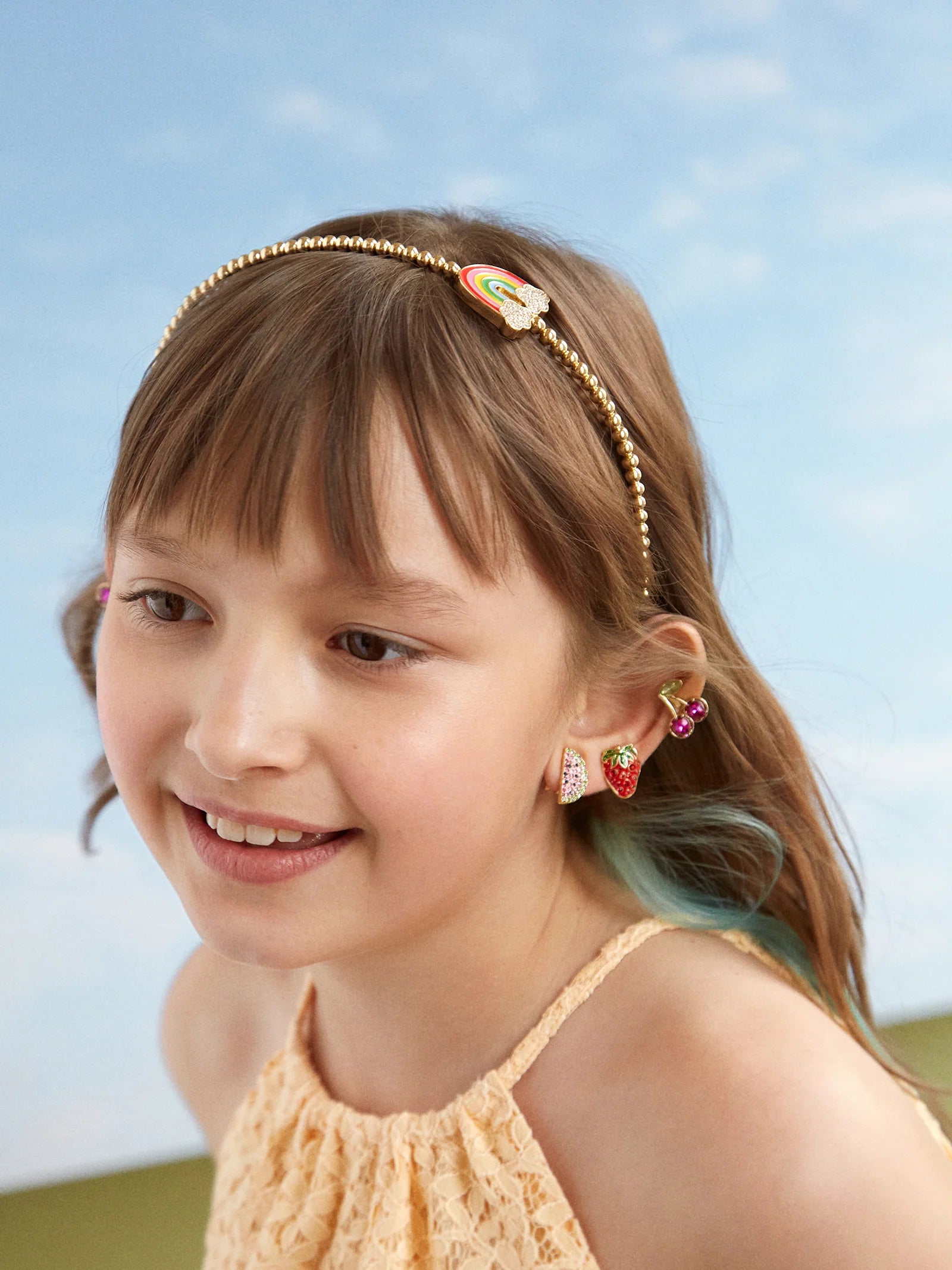 Add a little happiness to your little one's crown with the Kids' Motif Headband. A thin headband crafted with gold spheres features the motif of your choice slightly to the side. Choose the one your child will love most, and watch them wear it over and over again.