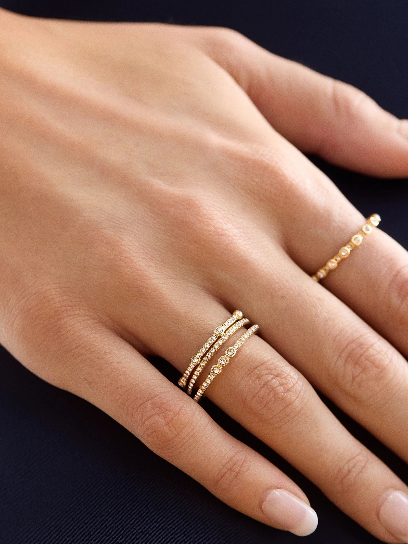 Step up your ring stacks with the Maggie Ring Set. Complete with four gold rings — each decorated with a unique cluster of glass stones — this ring set makes for versatile everyday wearing. With endless opportunities to mix and match, you’ll be reaching for these rings for ages.
