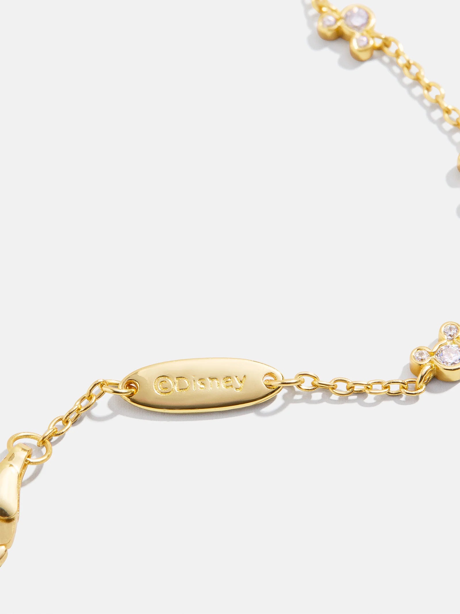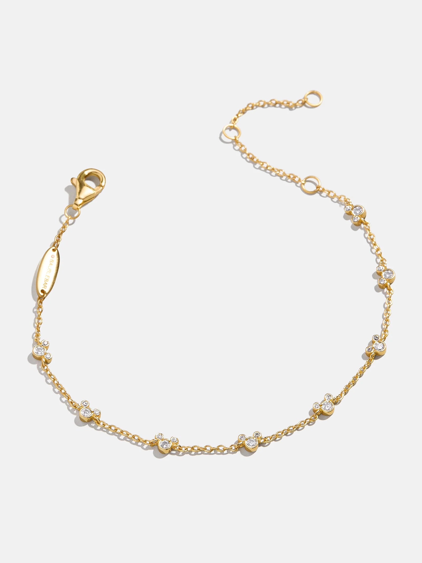 Sprinkle some Disney magic into your everyday jewelry rotation with the Mickey Mouse Disney 18K Gold Plated Sterling Silver Bracelet. This dainty and delicate bracelet features precious Mickey charms, beautifully crafted out of 18K gold plated sterling silver to ensure sleek, stylish and versatile styling for years. Wear alone or pair with others — this Disney bracelet looks magical with anything.