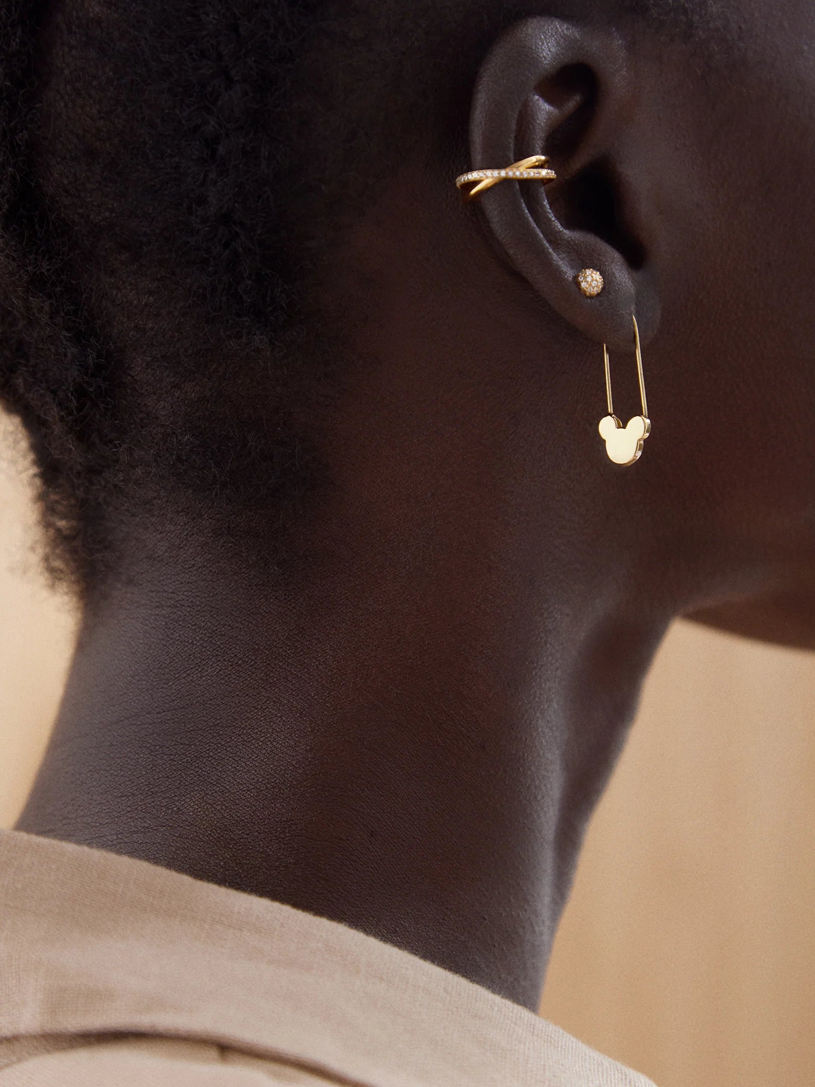 Our Mickey Mouse Pin Earrings take a classic silhouette and offer a Disney spin. Simply thread through your ears and use the Mickey Mouse outline closure for secure wear - all day, every day. Plus, they're crafted with 18K gold plated sterling silver.