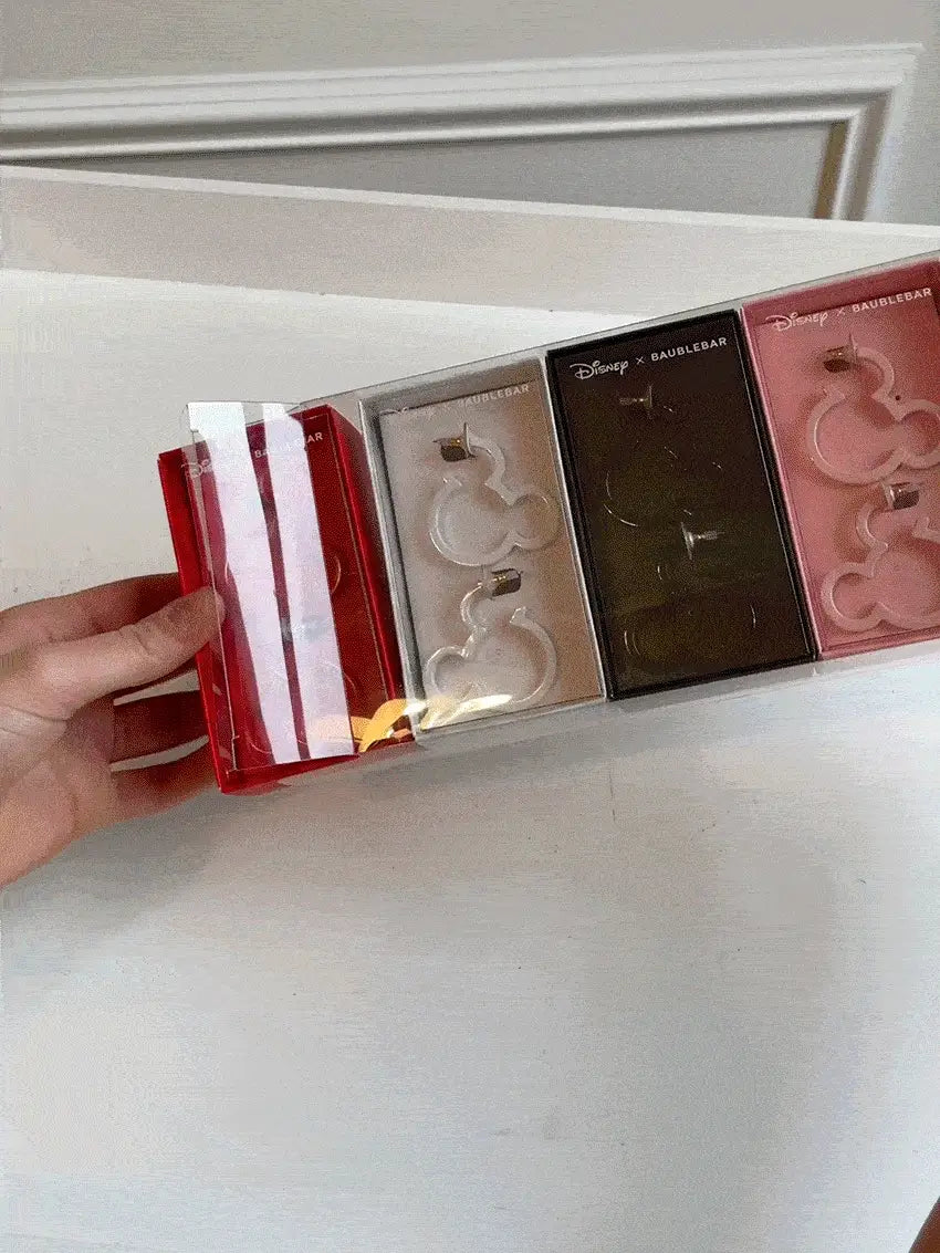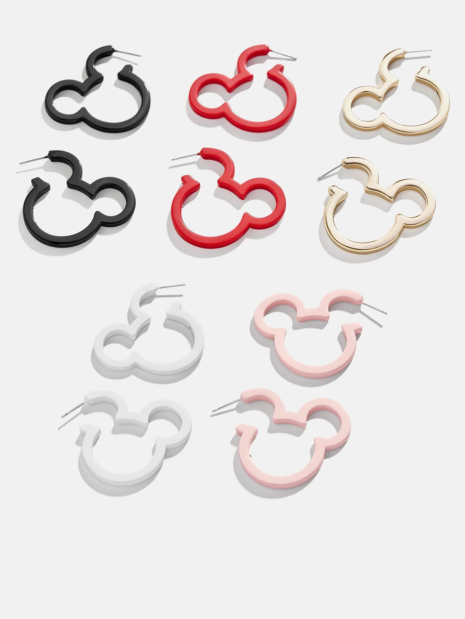 Give Disney fans the best gift ever with the Mickey Mouse Disney Hoop Earrings Set. This set comes complete with five of our best-selling Mickey Mouse outline hoop earrings, each in luxe colors. Choose to give them all to one recipient, or split them apart and give one to each of your friends. Not to mention, each comes in a luxe, matching box, meaning it's ready-to-gift.