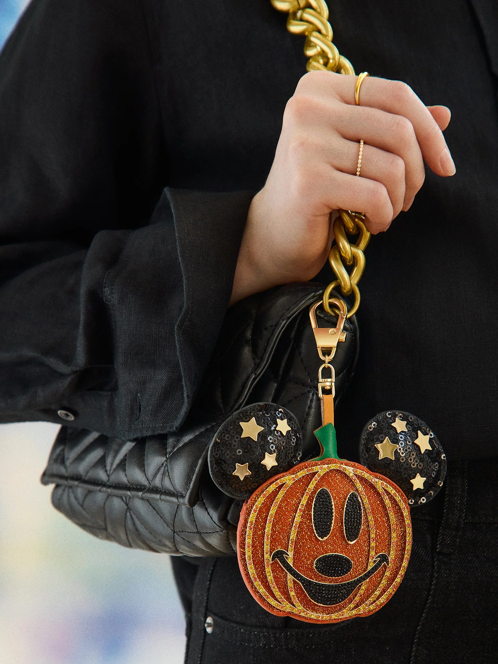 Celebrate Halloween with the pick of the patch. The Mickey Mouse Disney Pumpkin Puff Bag Charm is a lightweight and fluffy accessory that can easily be clipped onto any bag of your choosing. Designed with Mickey's sweet face on a pumpkin, this bag charm brings the Disney magic and Halloween excitement.