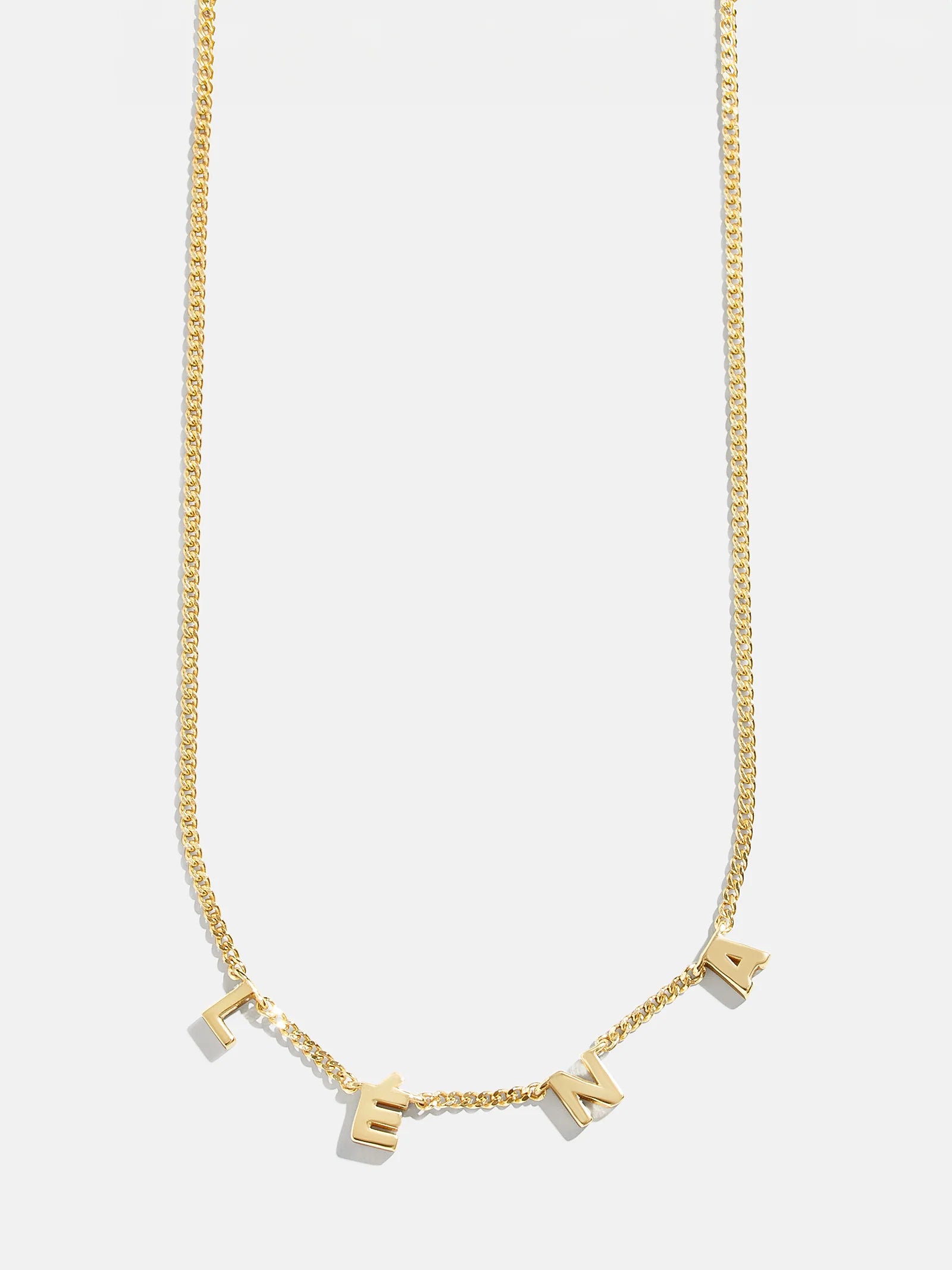We took one of our favorite custom styles and turned it into a necklace. The Mini 18K Gold Spaced Letter Custom Name Necklace fits up to seven letters of your choice and features elegant negative space in between each character. It's also crafted with 18K Gold, so you'll get to wear it for years to come.