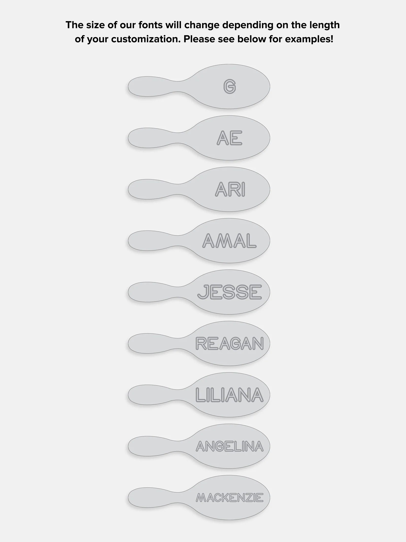 ABOUT OUR CUSTOM HAIR BRUSHES: Our collection of custom hair brushes make your everyday routine just a little more extra - because why not? Inspired by our best-selling custom phone cases, each is crafted with a sturdy, substantial, and water resistant acetate base. Every letter is also made with durable acetate and hand-cut to your specifications. The raised nature of the letters creates a fun, 3D effect. Finally, each of the bristles is made from nylon and silicone, reducing static and/or tangles. Fun fact: each brush is crafted in a dust-free room, ensuring that your piece will be absolutely perfect and free of any flaws.
