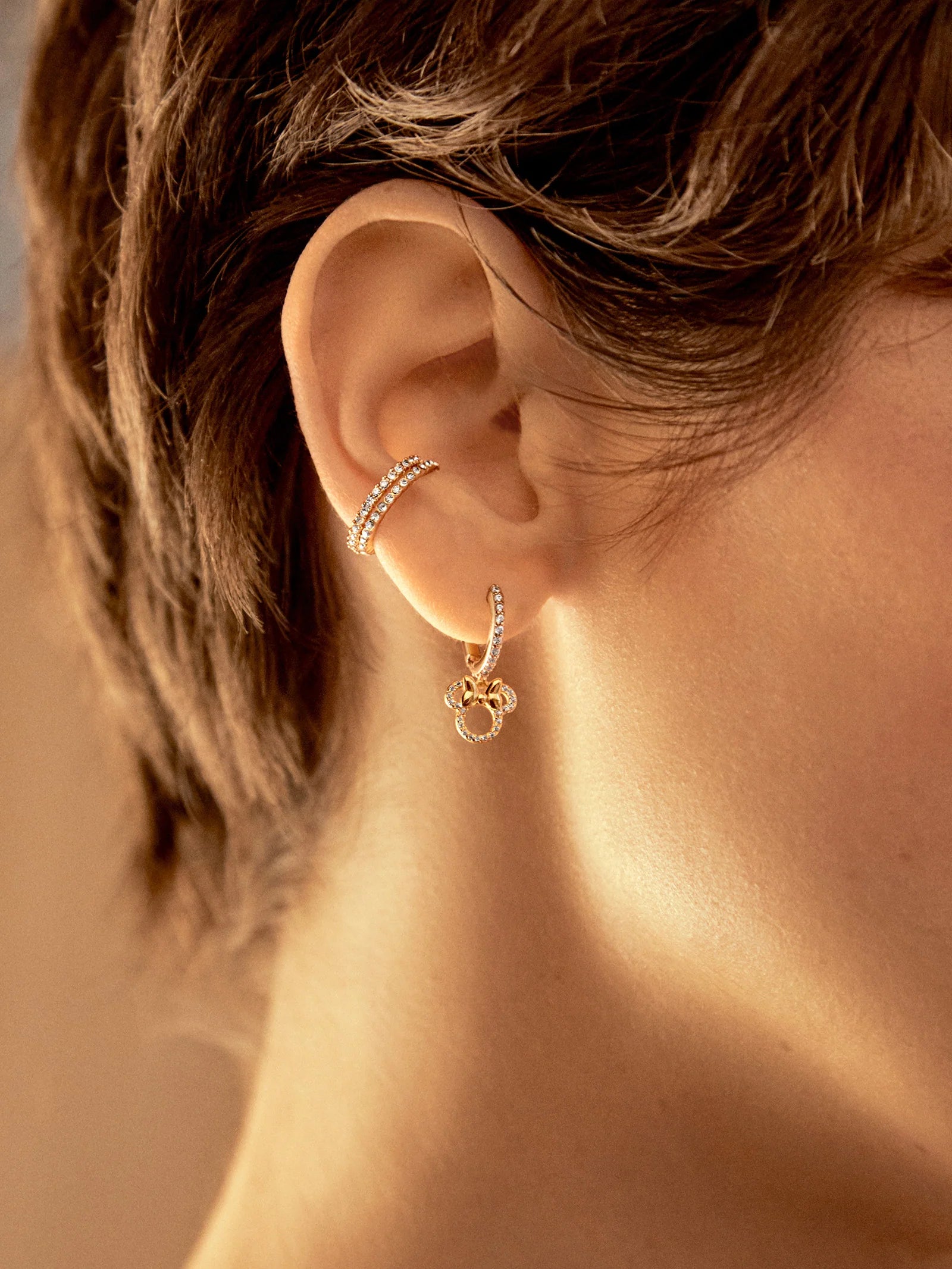 Are you a fan of Minnie Mouse? The Minnie Mouse Disney 18K Gold Plated Sterling Silver Huggie Charm Earrings are an effortless way to add a dose of Disney to your ear stack. These huggie hoop earrings feature Cubic Zirconia stones and a little Minnie Mouse charm. Wear again and again and prepare for plenty of compliments.