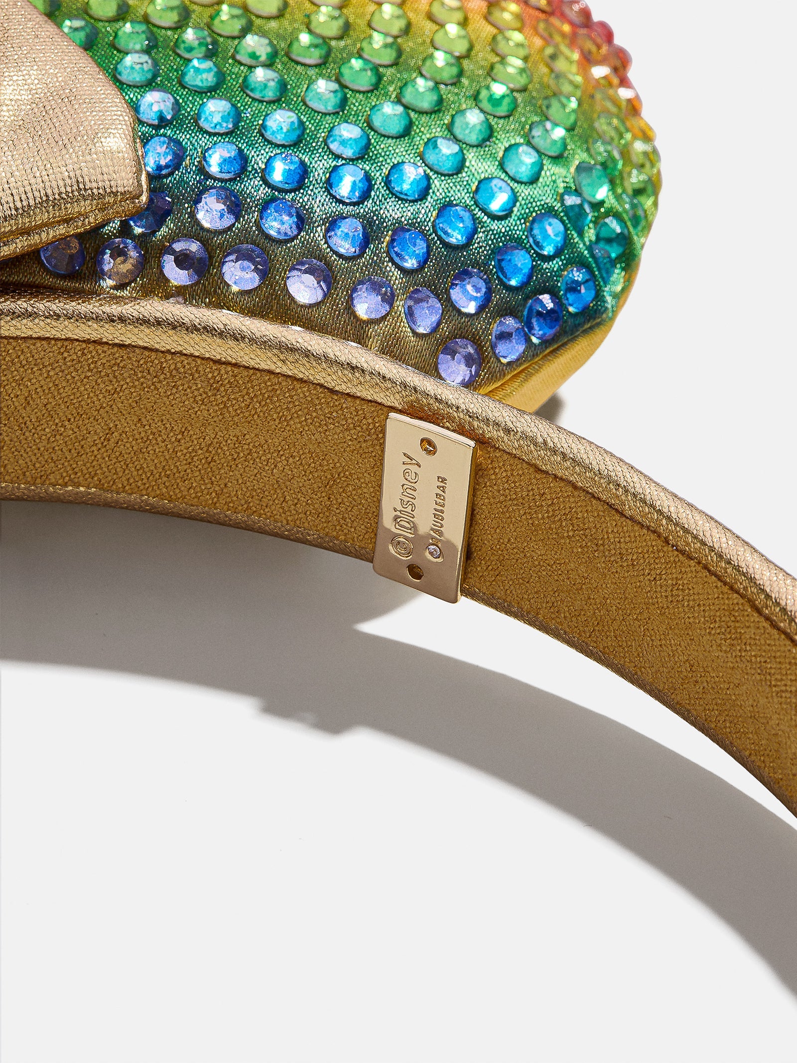 Make a statement and shine bright with the Minnie Mouse Rainbow Ears Headband. Featuring dazzling rainbow beads and a sparkling gold bow, these ears are perfect for adding a pop of Disney magic to any look. Perfect for park adventures or everyday styling, wear them and let your inner rainbow shine.