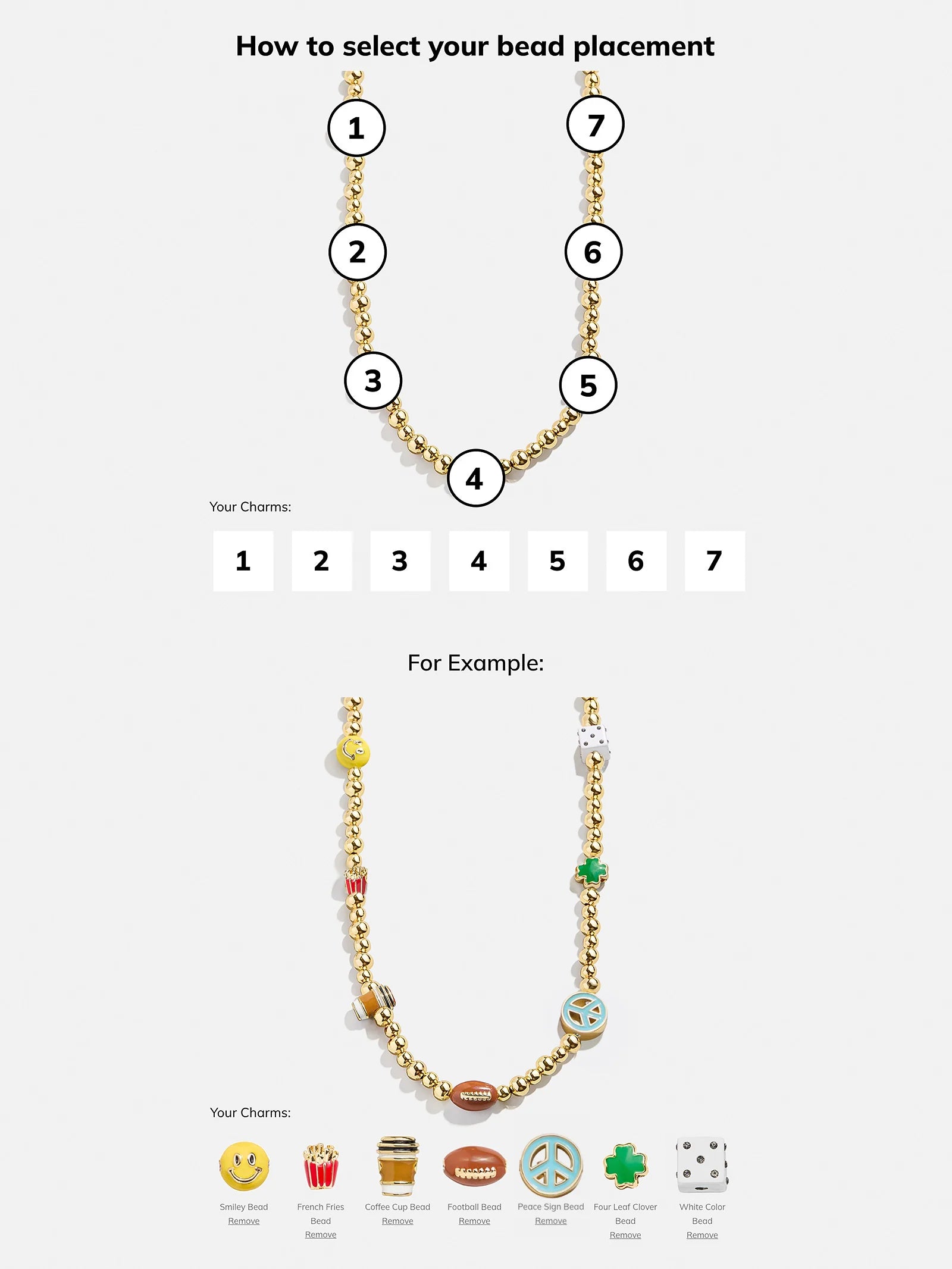 Personalize your jewelry set with the Pisa Custom Charm Necklace. Choose 7 of your favorite cute charms — anything from initials and birthstones to fun colors and emojis — to hang alongside classic pisa beads. This custom charm necklace makes for a perfect signature statement, so get creative!