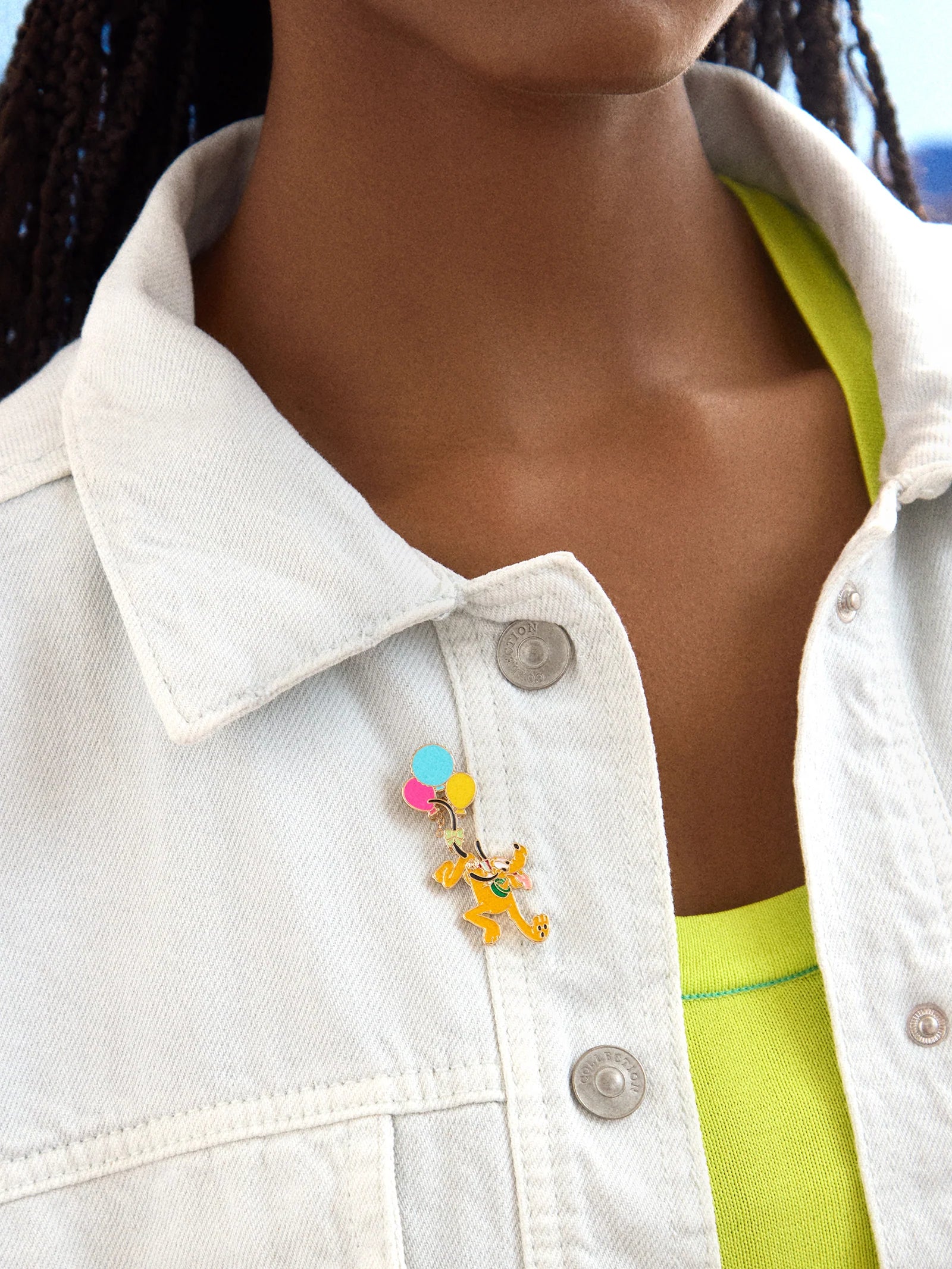 Up, Up, and Pluto! Take your pin game to the next level with the Pluto Disney Celebration Pin. Featuring Pluto joyfully floating with balloons, this pin is the perfect way to add a touch of whimsy to any outfit. Easily pin it onto any jacket, bag, hat, and let Pluto lift your spirits and your style to new heights.