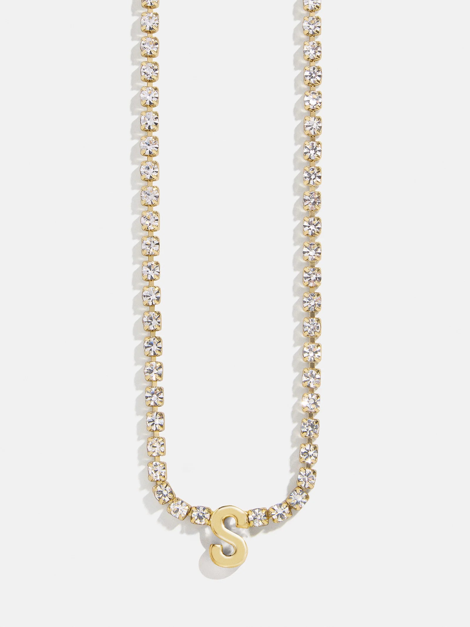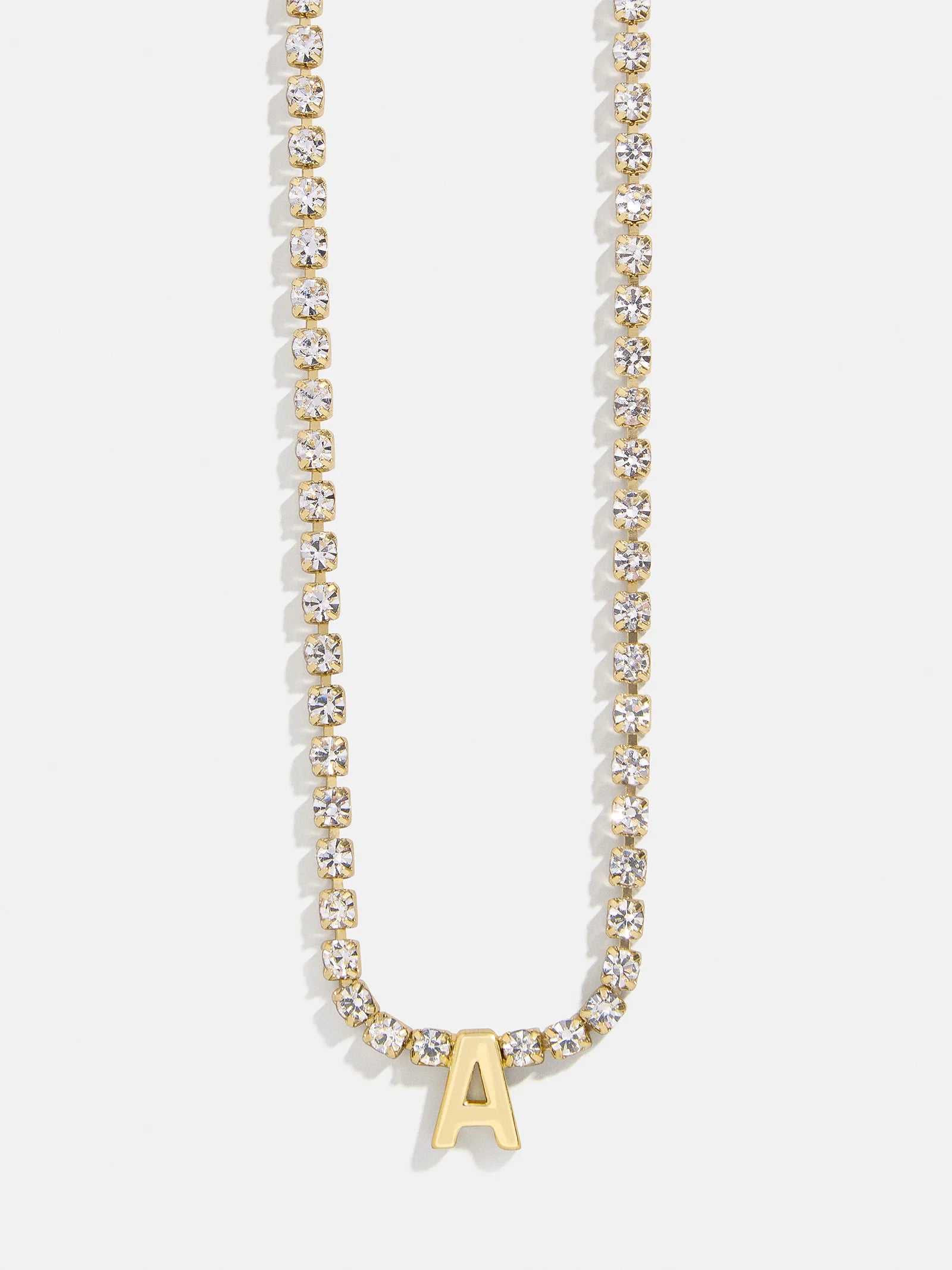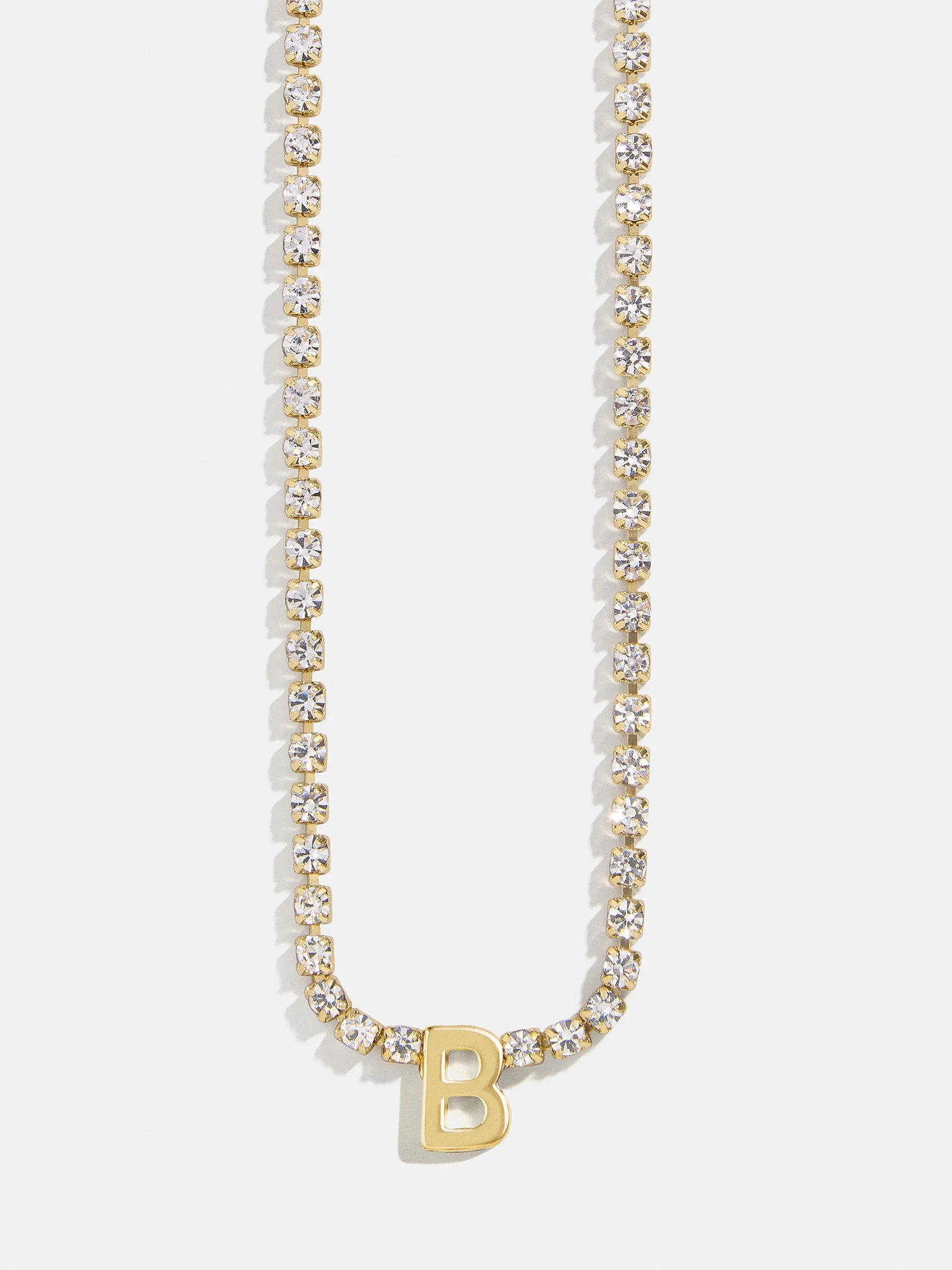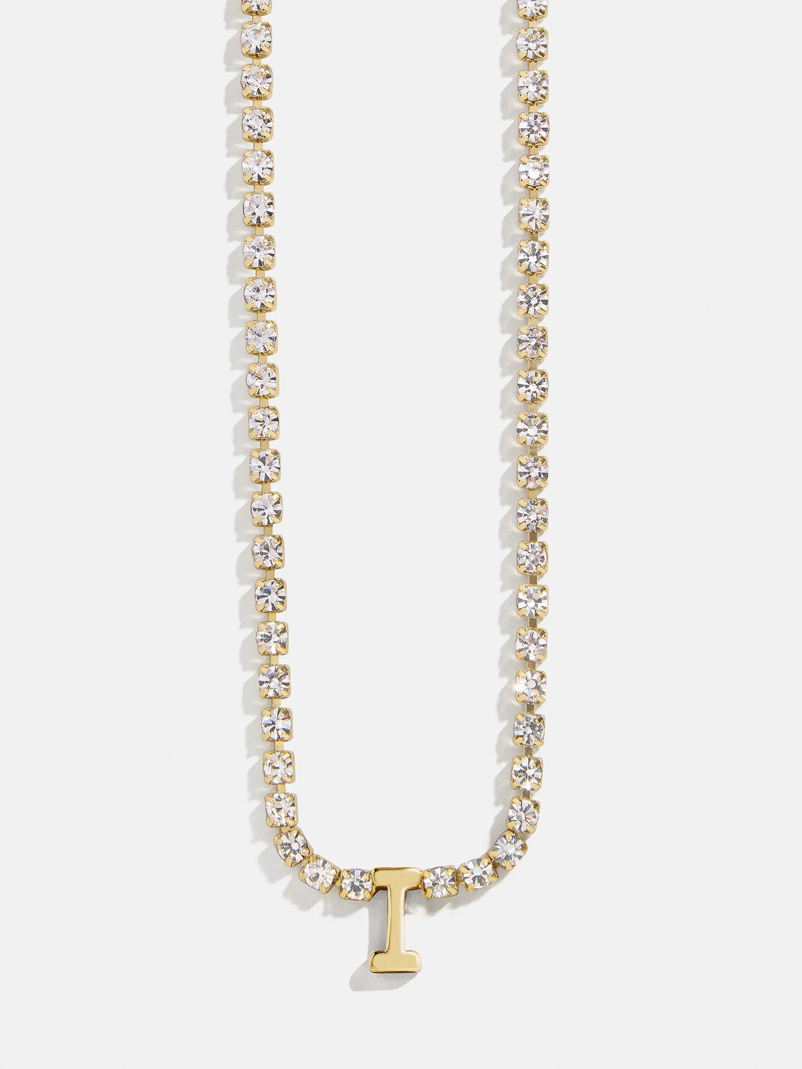 One letter can say so much, especially in our Ruth Initial Tennis Necklace. This necklace features the letter of your choice, finished off with an adjustable chain, this necklace is perfect on its own for a minimalist look or is a great addition to any layered stack.