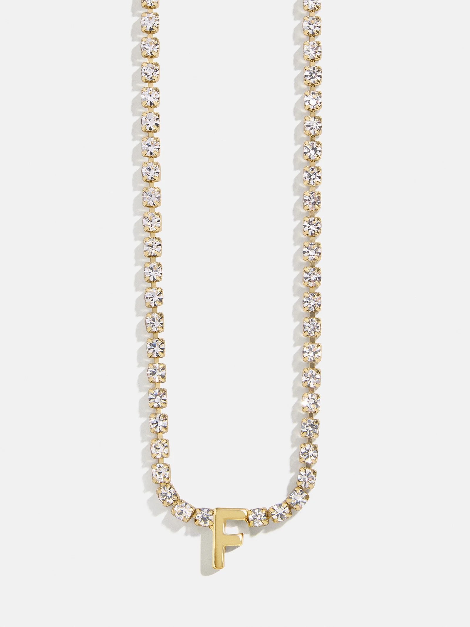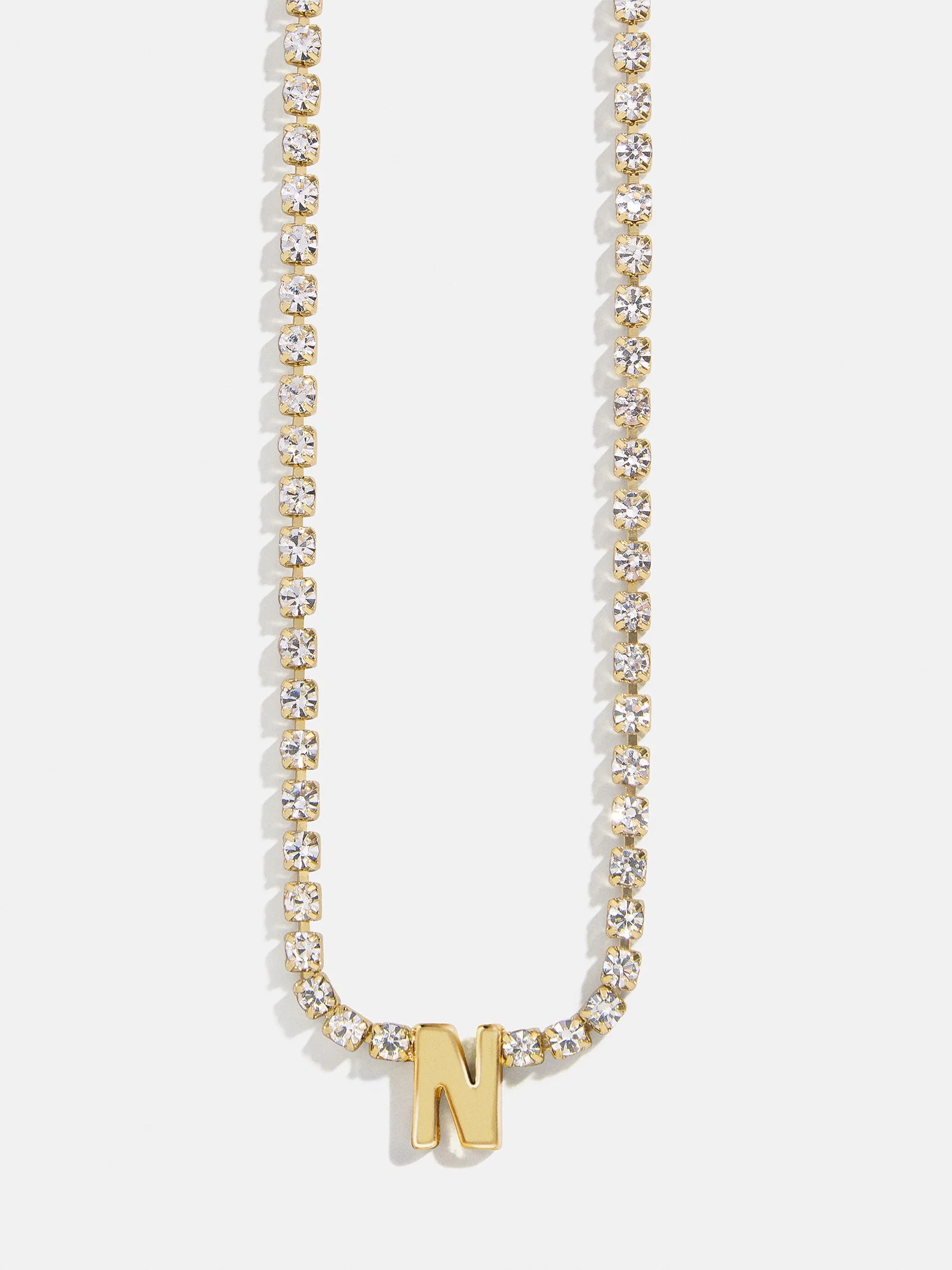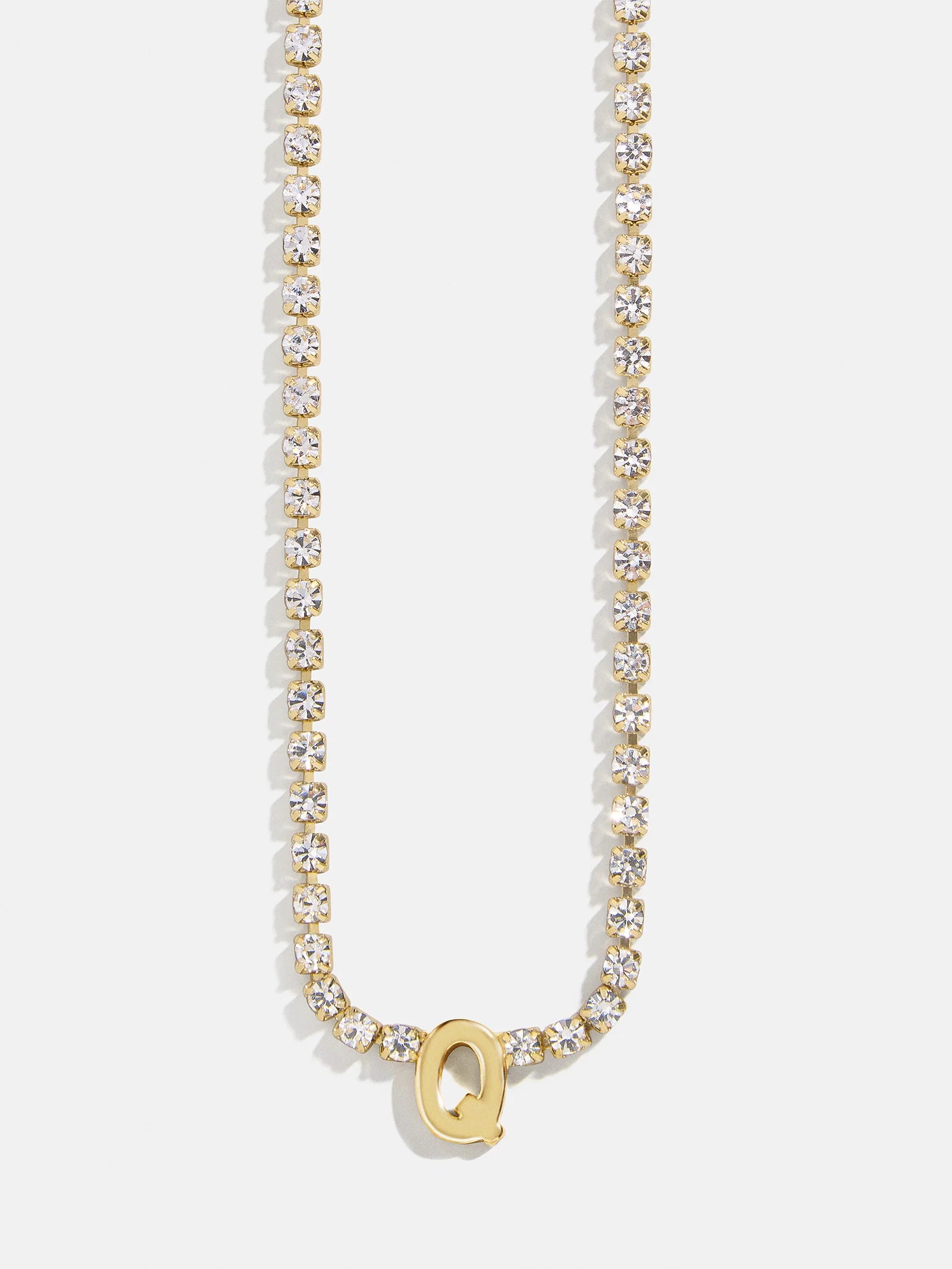One letter can say so much, especially in our Ruth Initial Tennis Necklace. This necklace features the letter of your choice, finished off with an adjustable chain, this necklace is perfect on its own for a minimalist look or is a great addition to any layered stack.