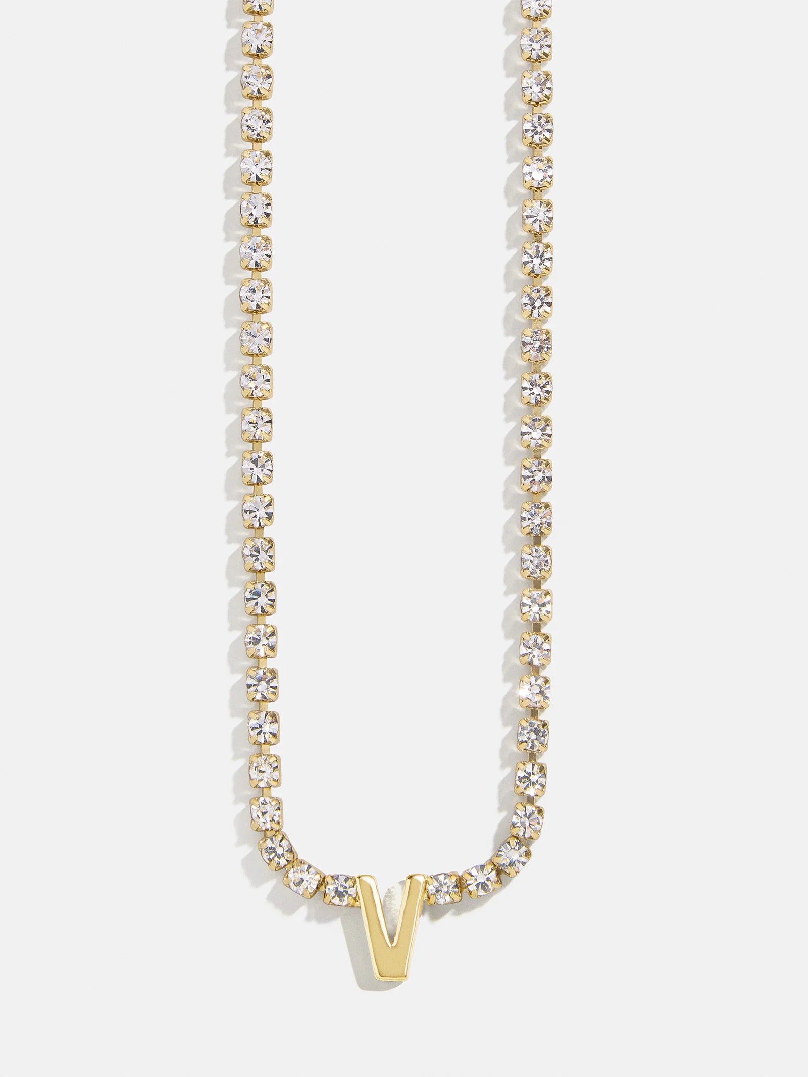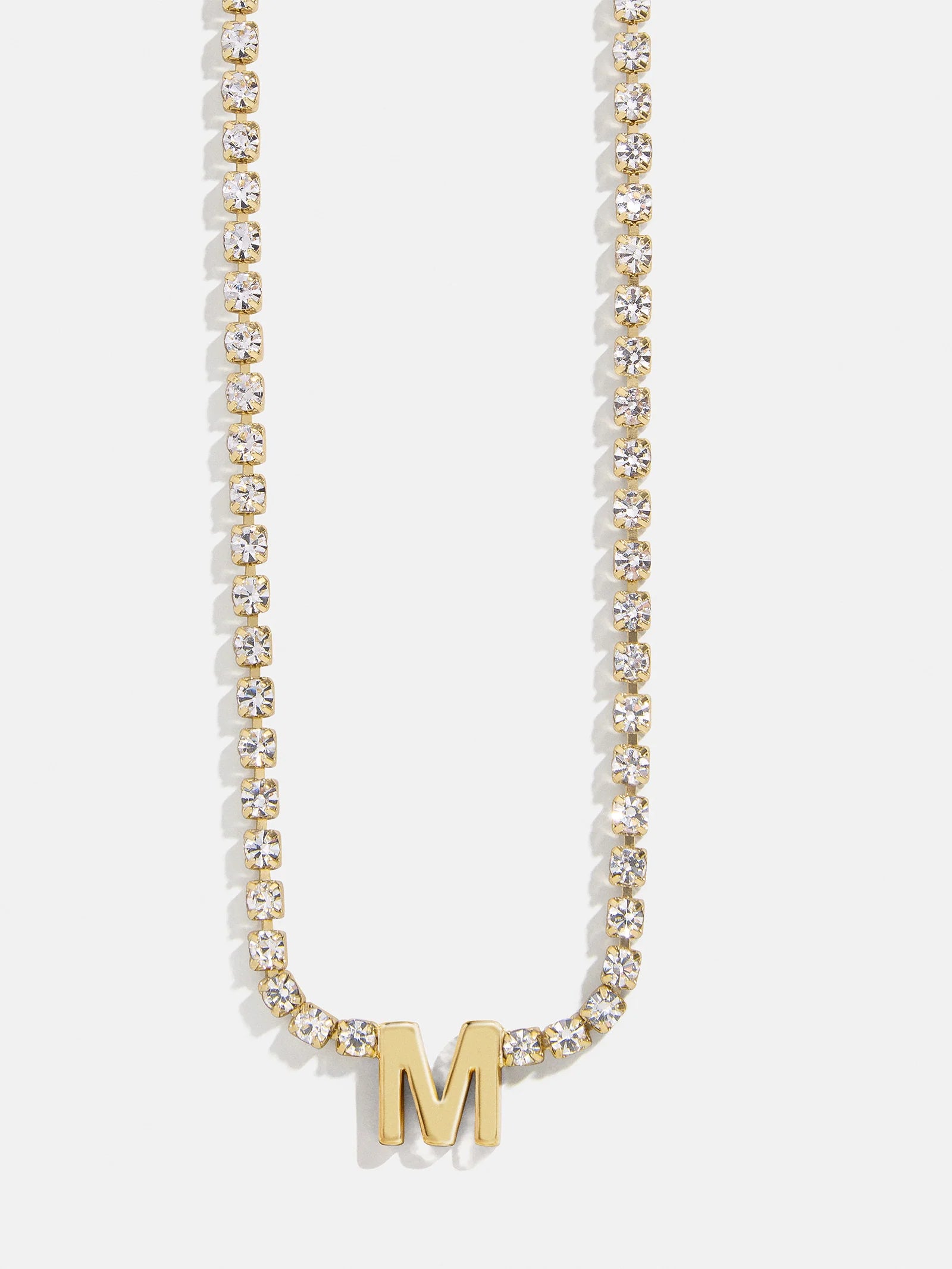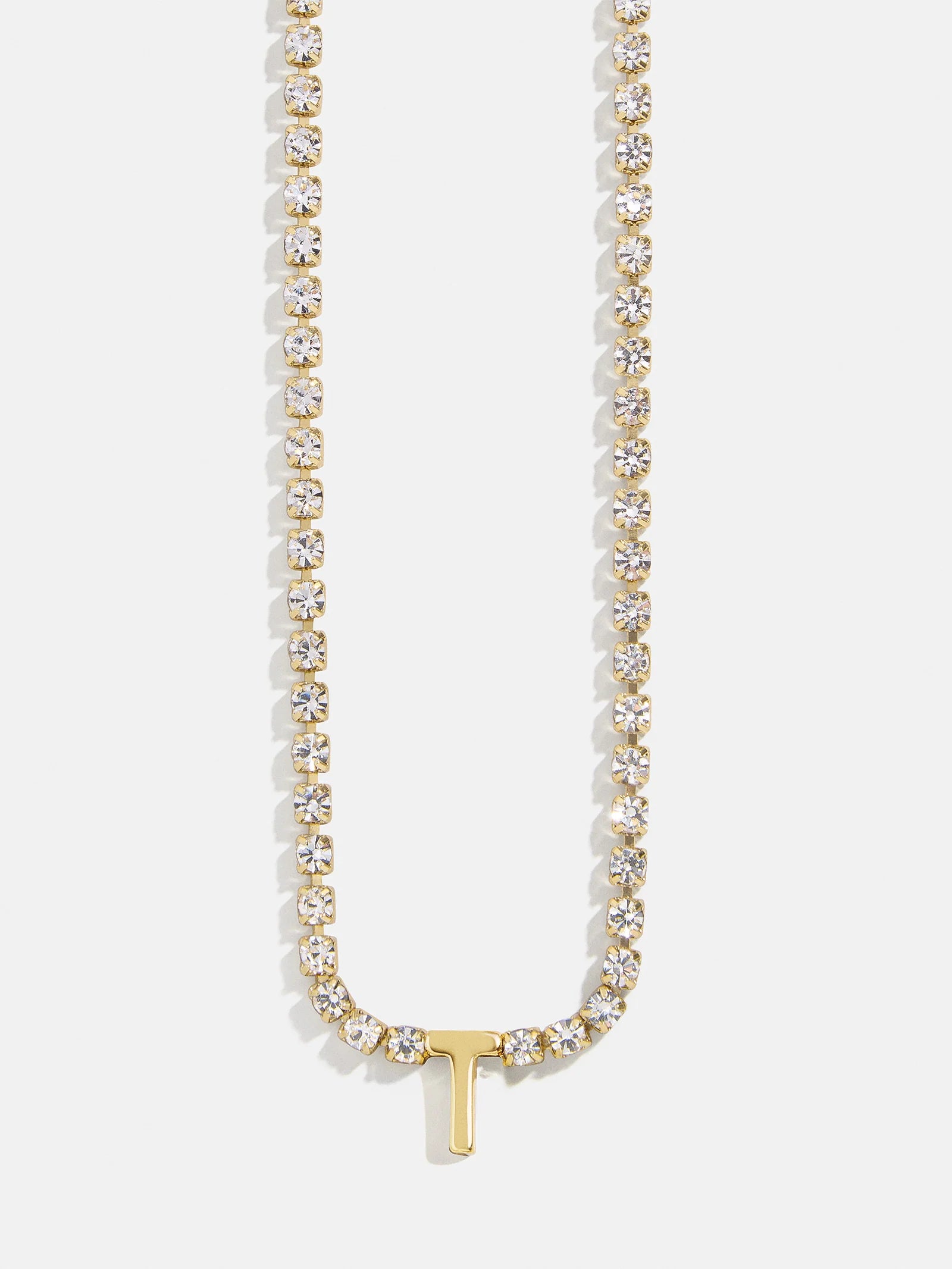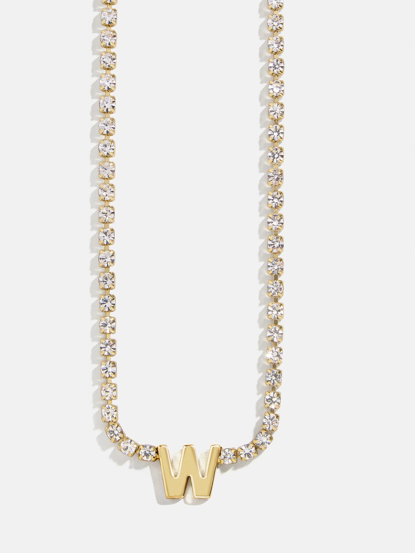 One letter can say so much, especially in our Ruth Initial Tennis Necklace. This necklace features the letter of your choice, finished off with an adjustable chain, this necklace is perfect on its own for a minimalist look or is a great addition to any layered stack.