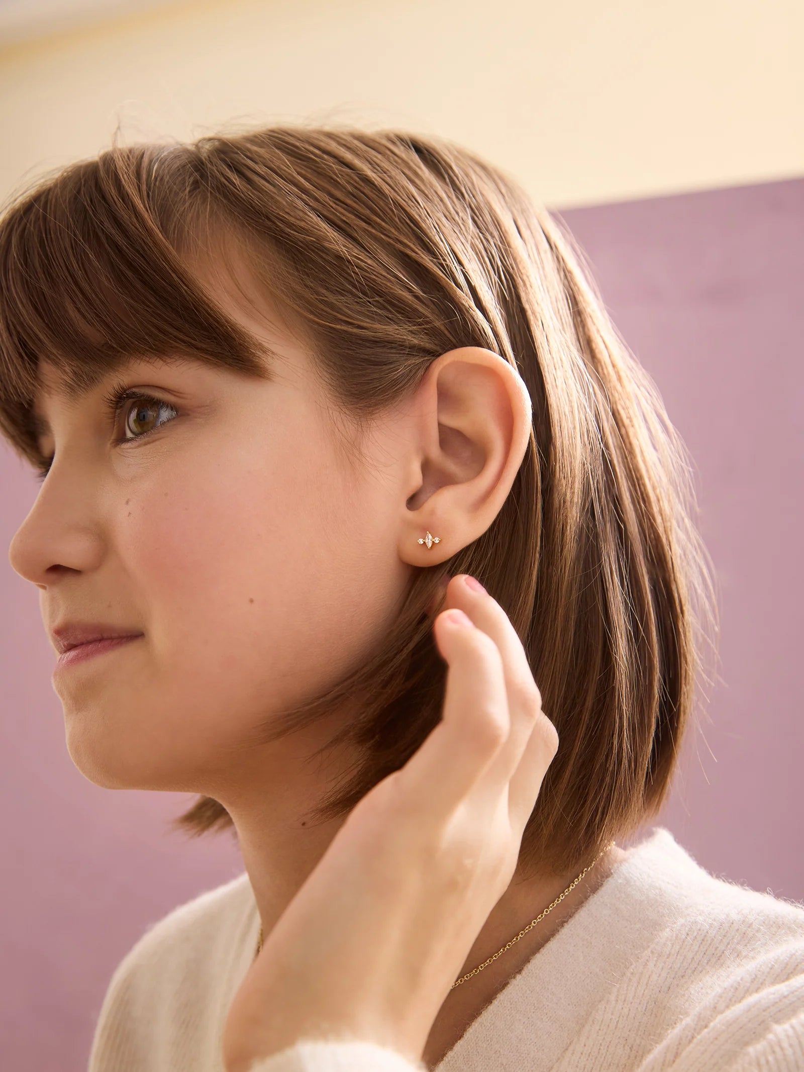 Dainty and delicate, the Serene 18K Gold Kids' Earrings feature a mix of clear shimmering cubic zirconia stones. They’re lightweight and timeless, perfect for everyday wear or special occasions alike. Crafted with 18K Gold, they’re designed to shine bright for years to come.