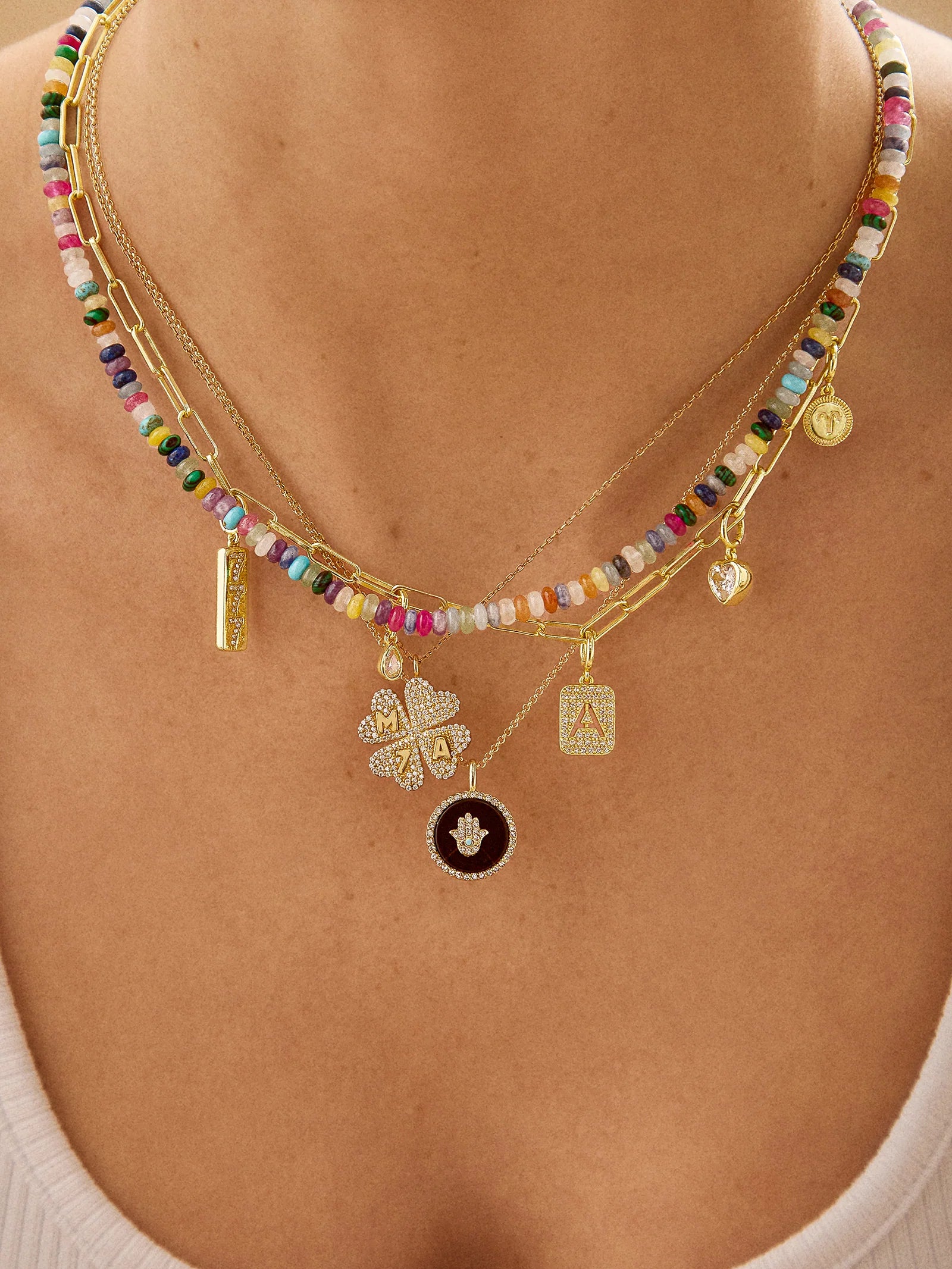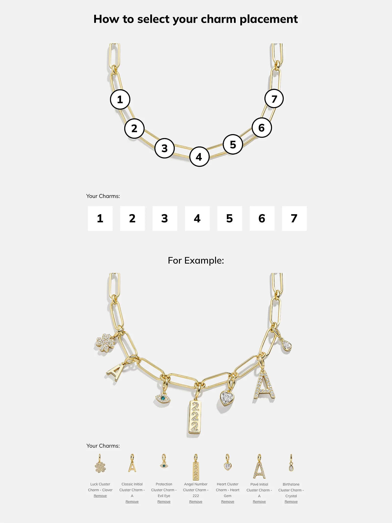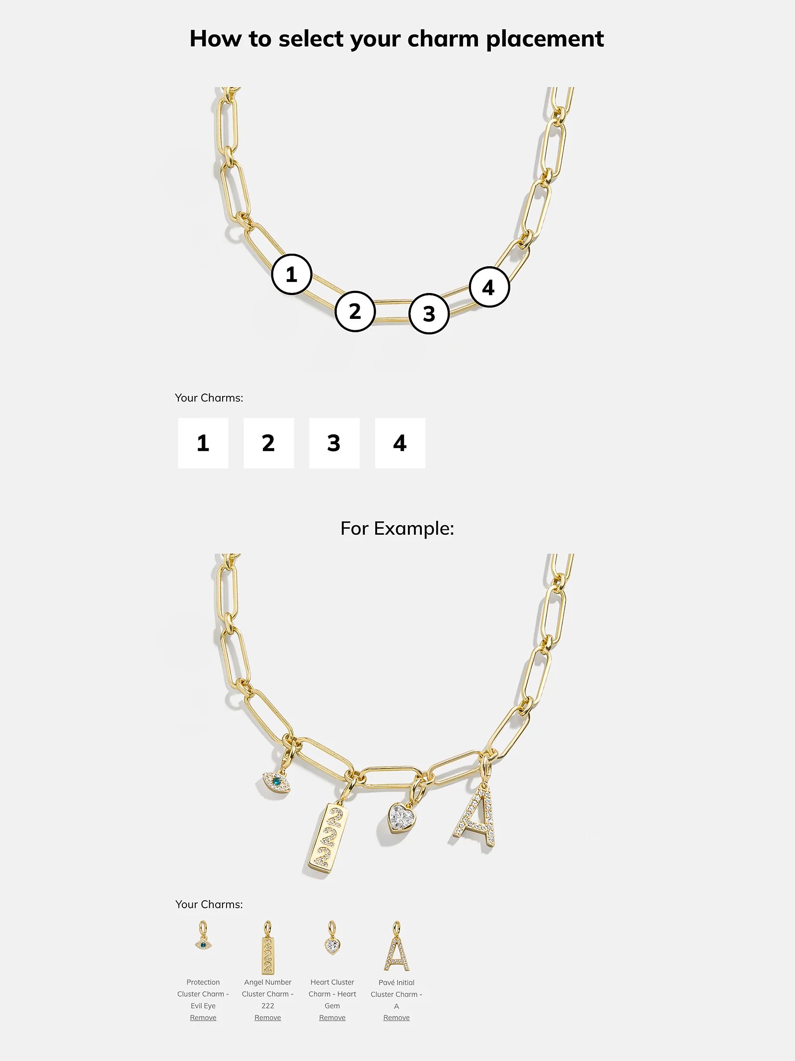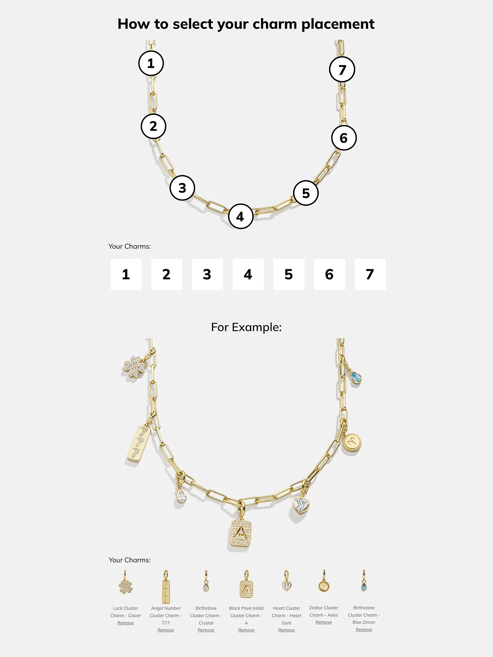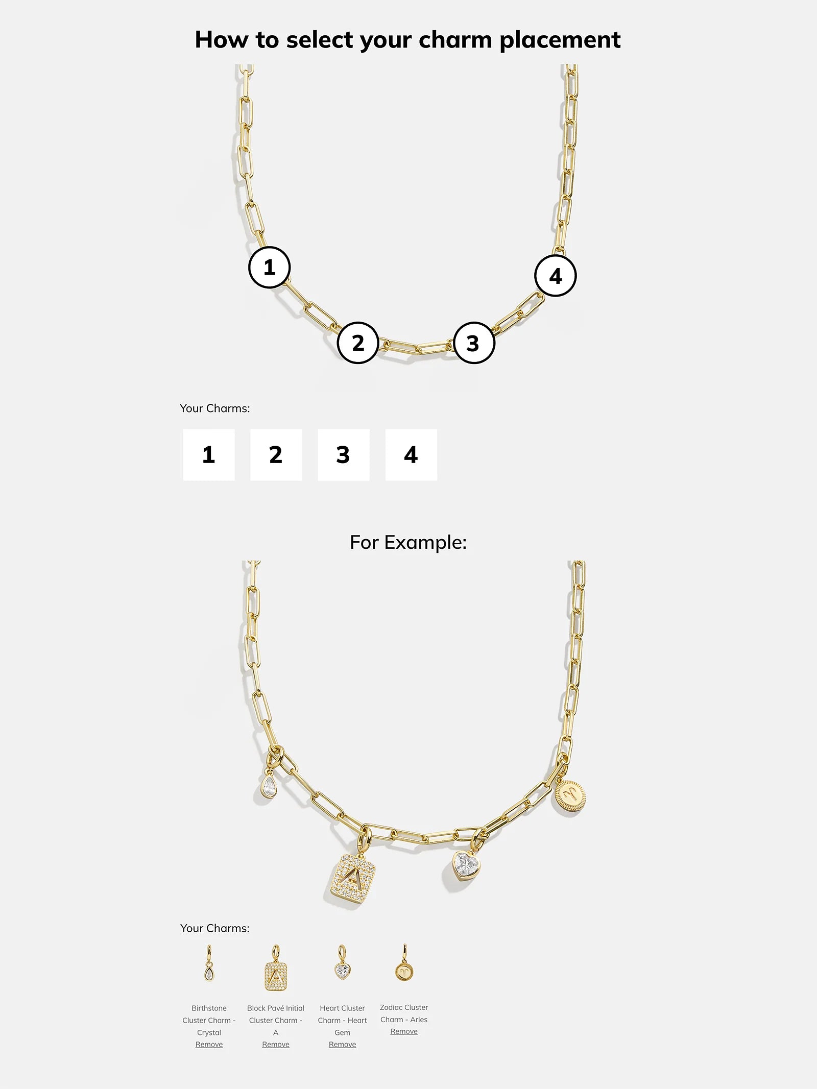 Personalize your necklace layers with the Spaced Custom Charm Necklace. Choose between a classic gold-colored chain, a Hera chain, or a paperclip chain. Then, pick 5 cute charms of your choice, in the order that you'd like. Made just for you, this necklace will be an everyday must-have.