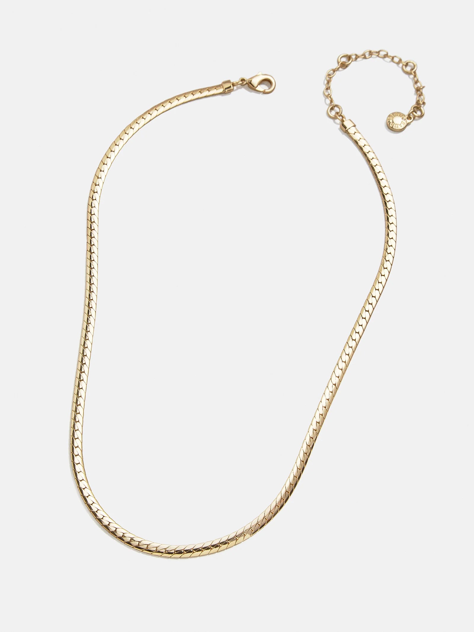 This gold snake chain necklace is an essential in your wardrobe for every single season. The Stevie Necklace is a thinner silhouette, making it a little more subtle than most other snake chain layers. Although beautiful on its own, it also looks lovely paired with a chic pendant.