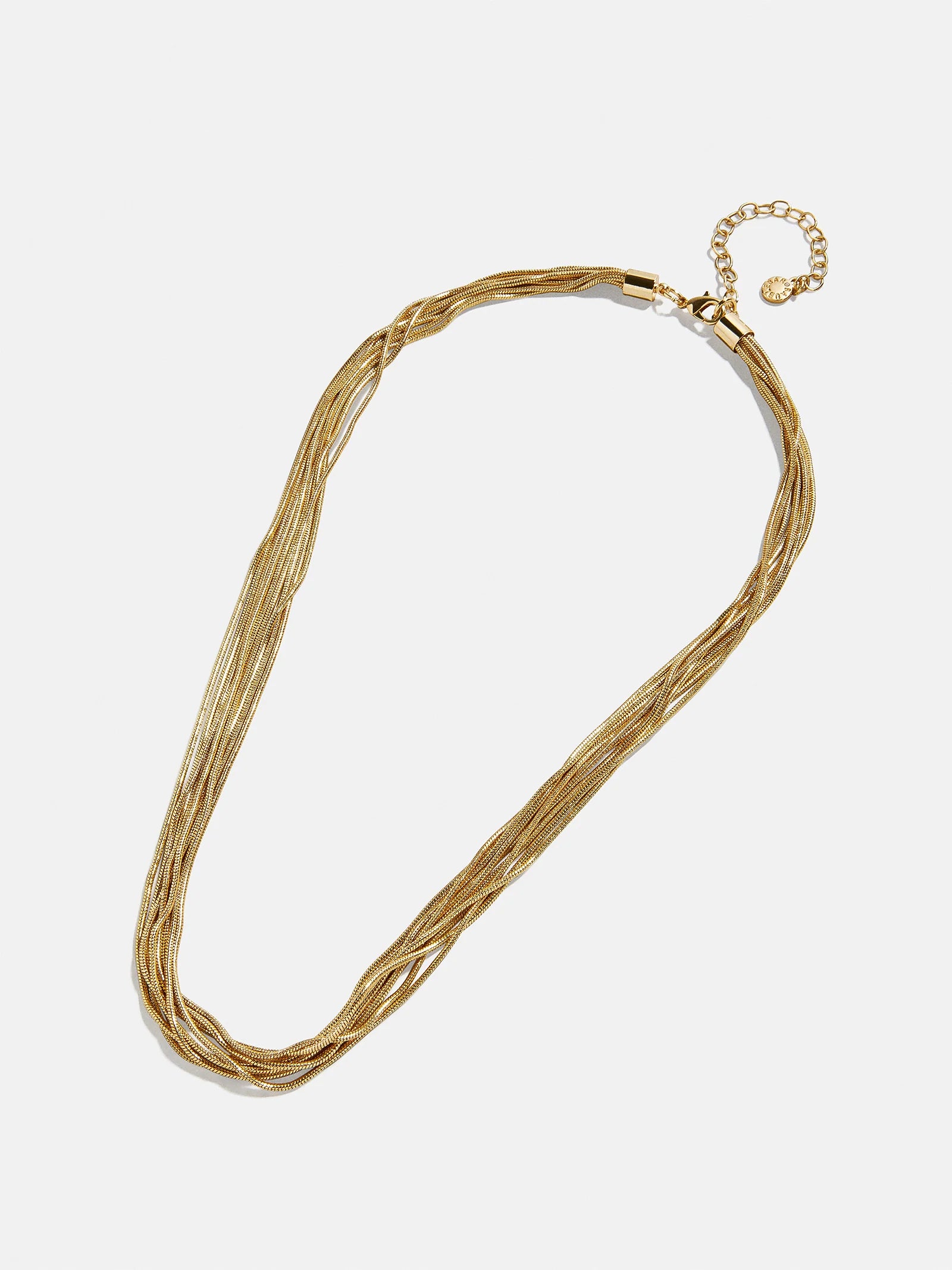 Instantly elevate your look with an automatic necklace stack. The Vanessa Necklace is designed with layers of dainty gold chains, attached with one simple clasp. Wear it solo as a standout piece, or pair it with other accessories to create a chunky statement.
