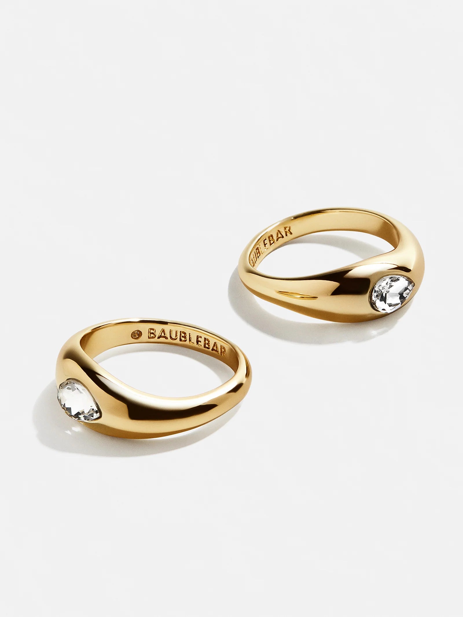 Fill up your ring stack with the Vanessa Ring Set. Chunky and cool, these two rings standout with their chic center stones. Wear the rings solo for a sleek touch or pair them together for a bold impact.