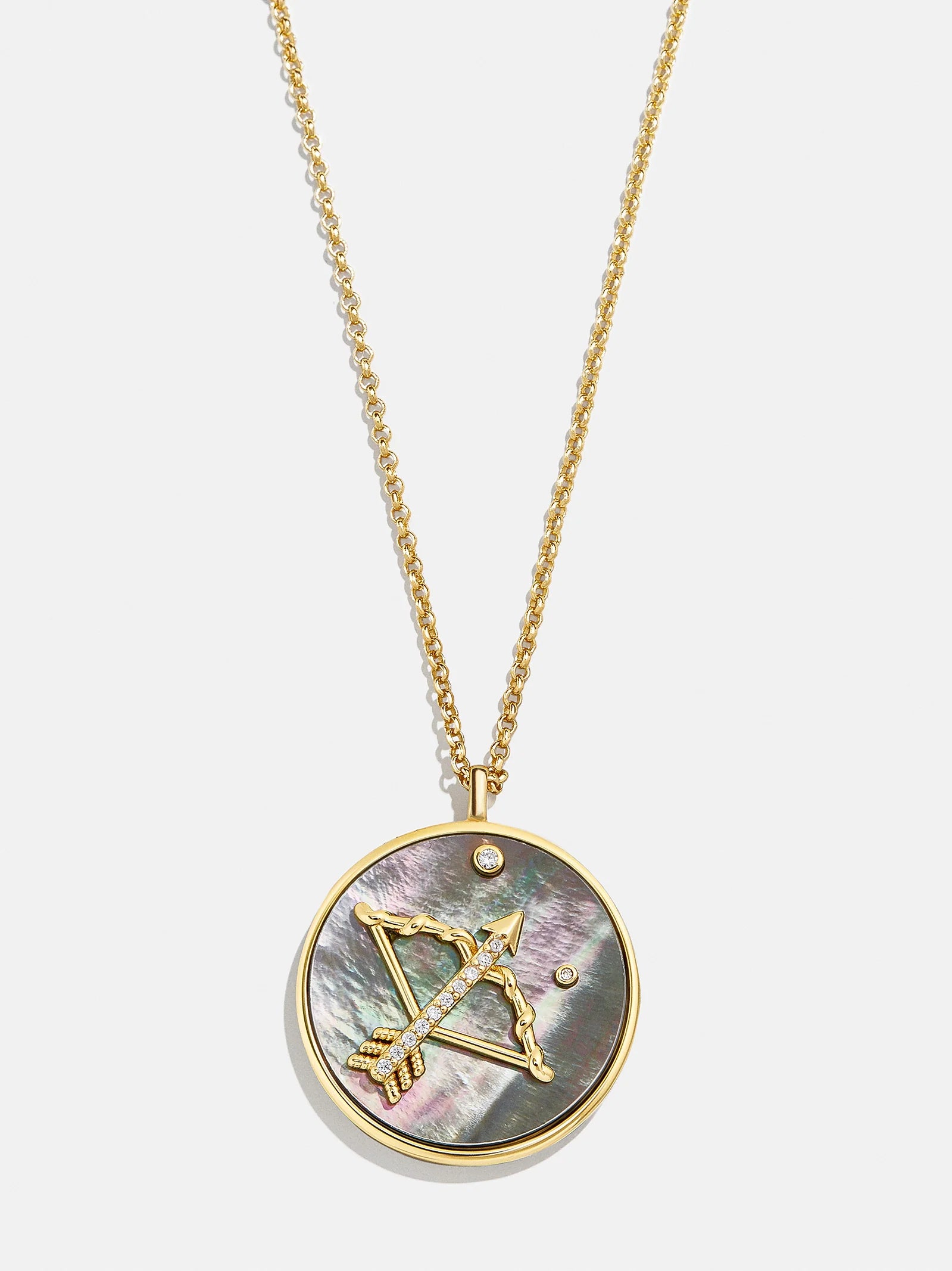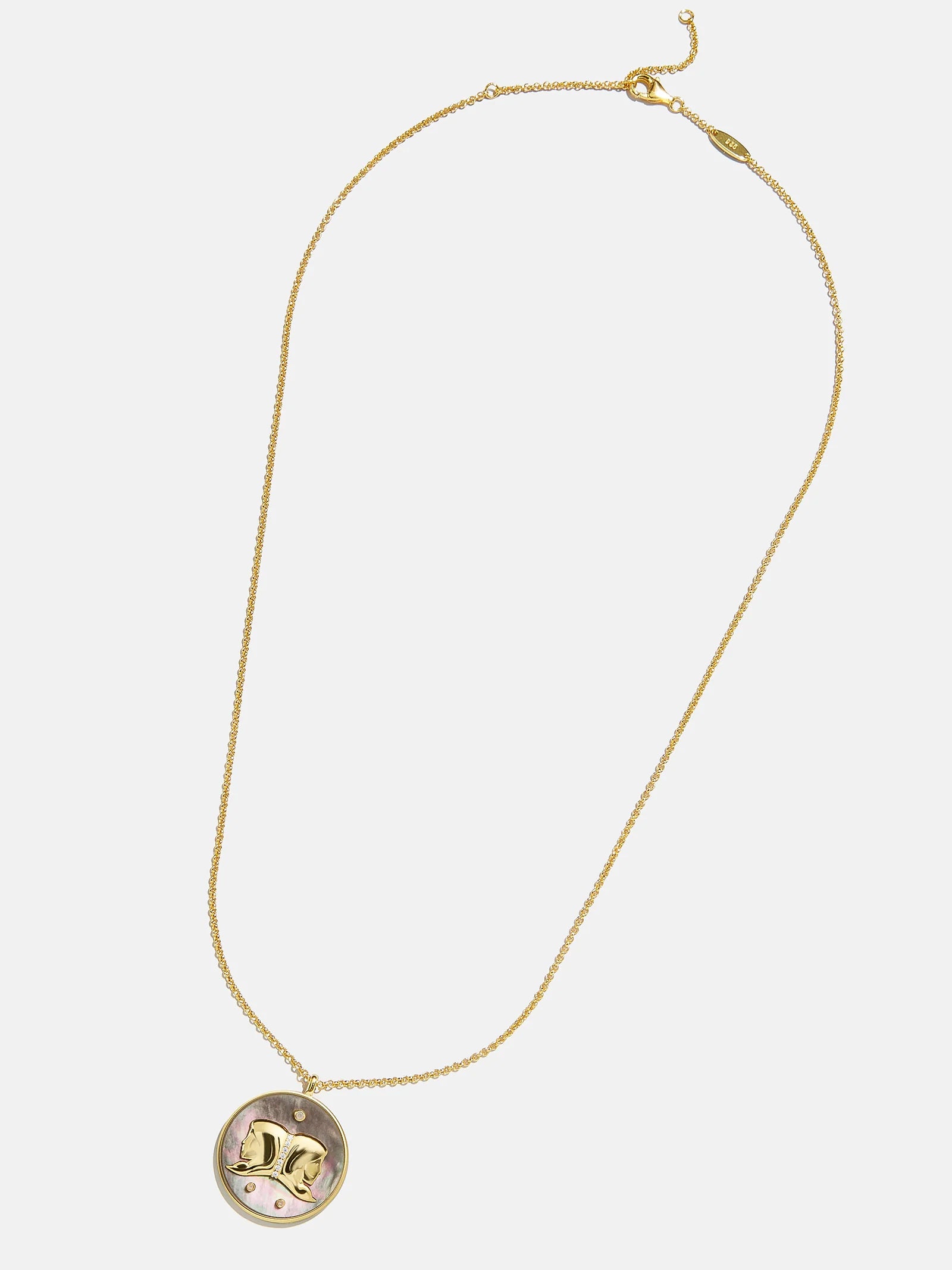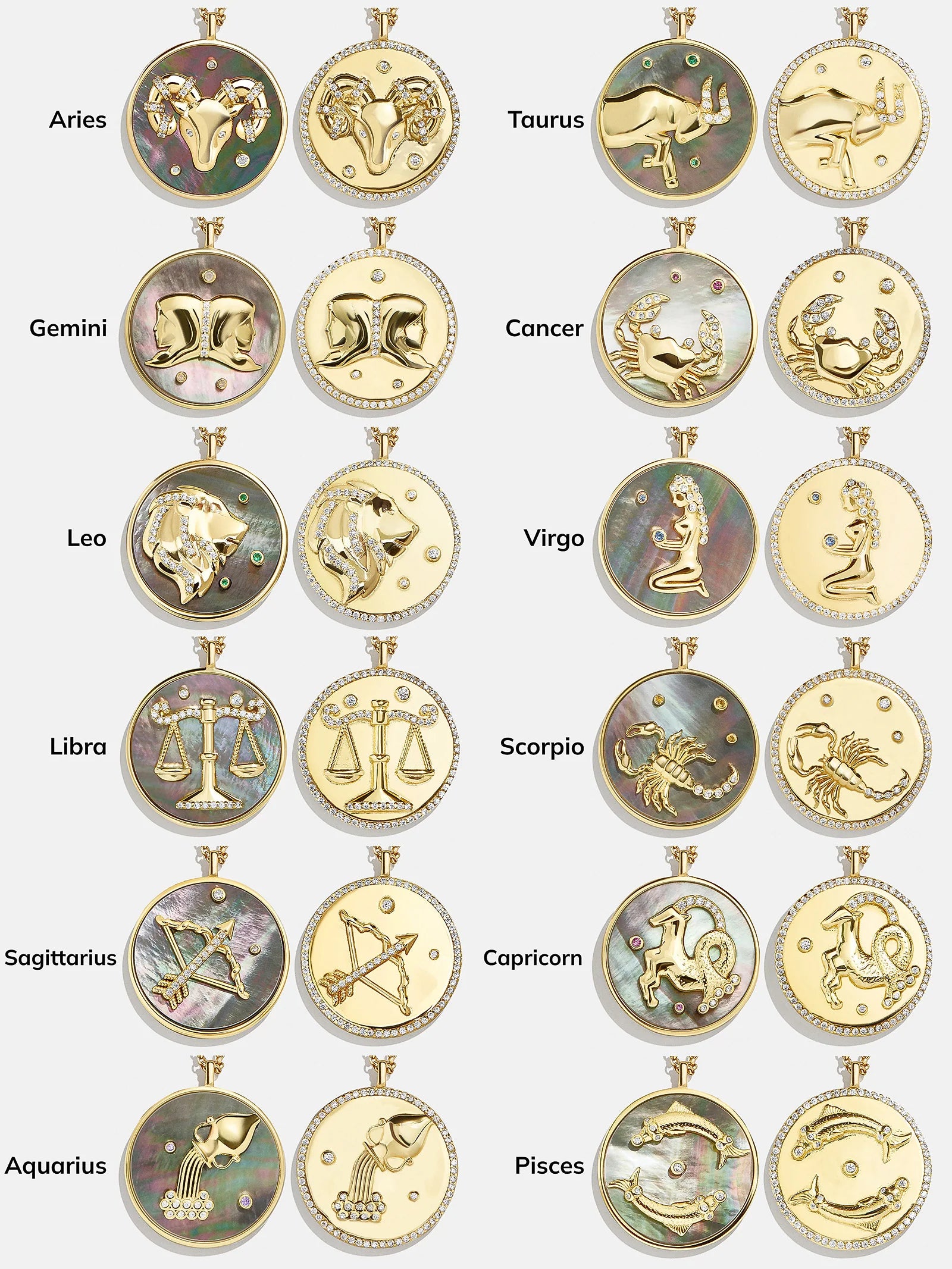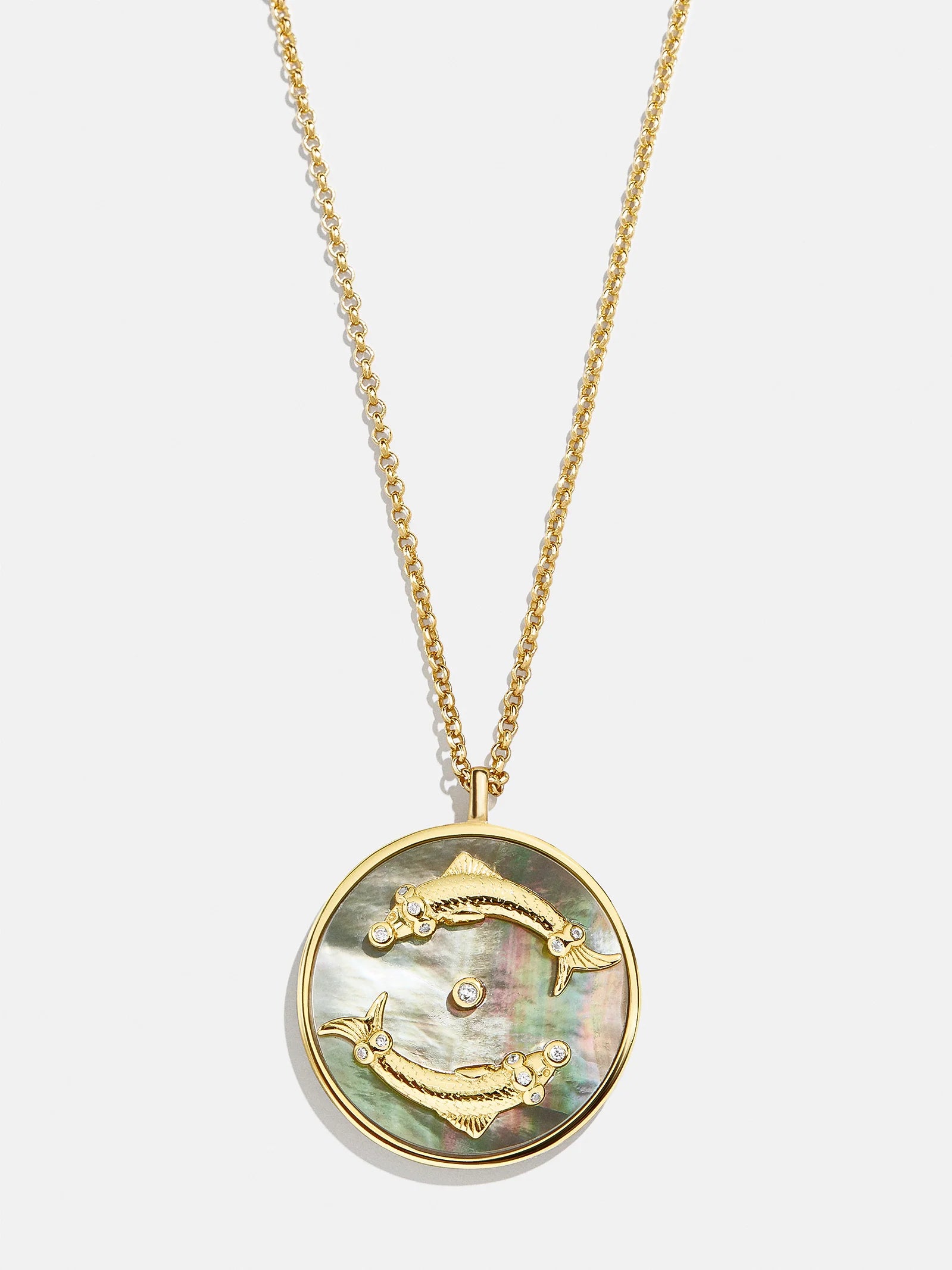This is your sign. Our collection of reversible zodiac medallion necklaces will be by your side through every solar return, Mercury retrograde, and lunar eclipse. Each pendant is crafted with 18K Gold and luxe Cubic Zirconia stones. One side features gorgeous mother of pearl with gem accents, while the other is gold with a pretty pavé border. Opt to add your sun, moon, or rising sign (or all three!) to your stack for layers that will guarantee good energy.